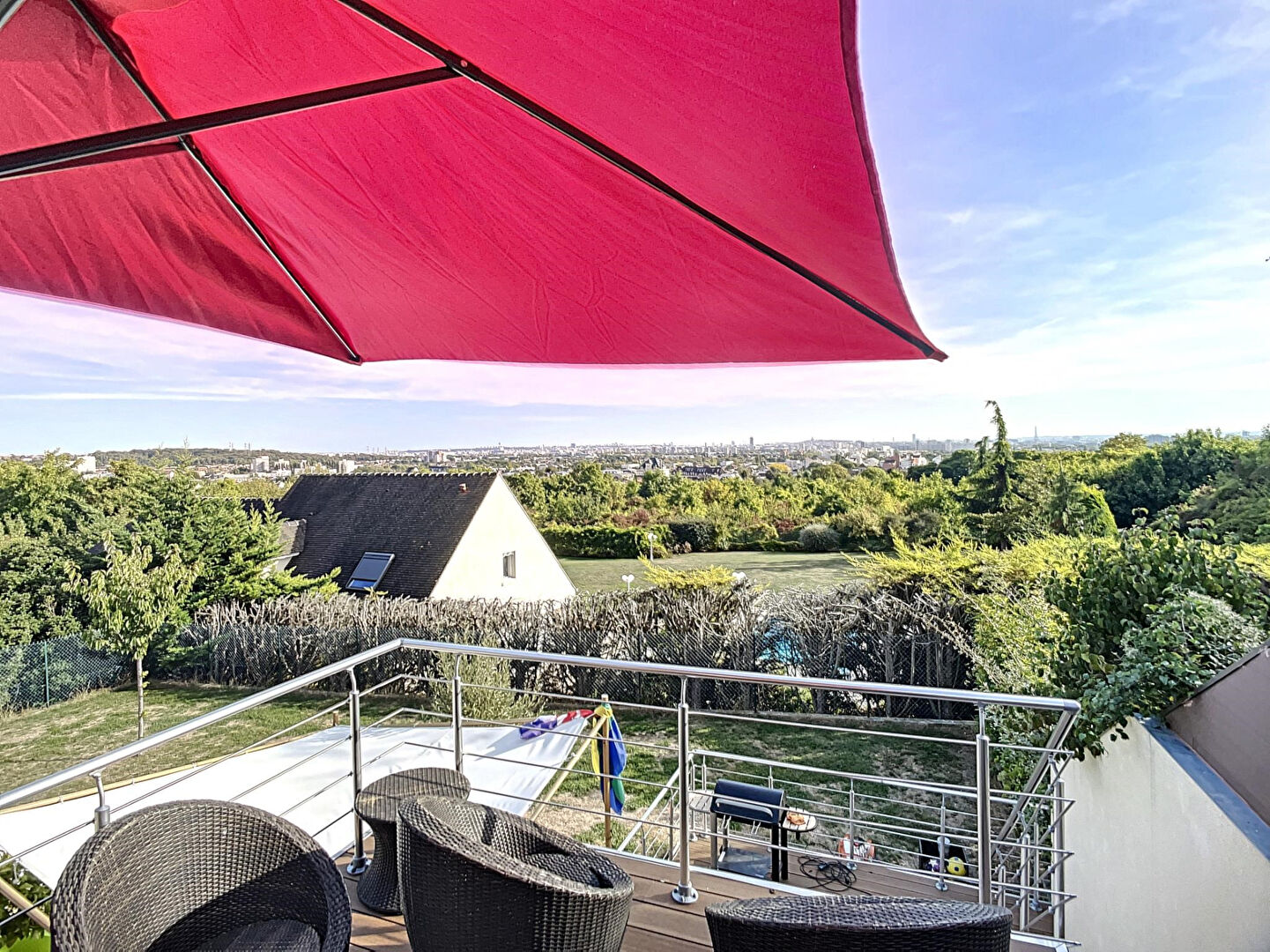 Offrez-vous une vie avec vue imprenable sur Paris dans cette spacieuse maison familiale de 183 m², alliant confort et volumes généreux. Au rez-de-chaussée, vous découvrirez : Une entrée et un dégagement accueillants Un vaste séjour lumineux donnant sur terrasse Une cuisine américaine équipée Une buanderie pratique Deux chambres, une salle d'eau et un WC A l'étage, profitez de : Un palier desservant trois grandes chambres Deux salles de bains, un dressing et un WC Complètent ce bien : un garage, une cave et une dépendance. Idéale pour les familles en quête d'espace, de lumière et d'un environnement privilégié sur les coteaux de Deuil, cette maison entièrement rénovée vous séduira par ses volumes généreux et sa vue exceptionnelle.