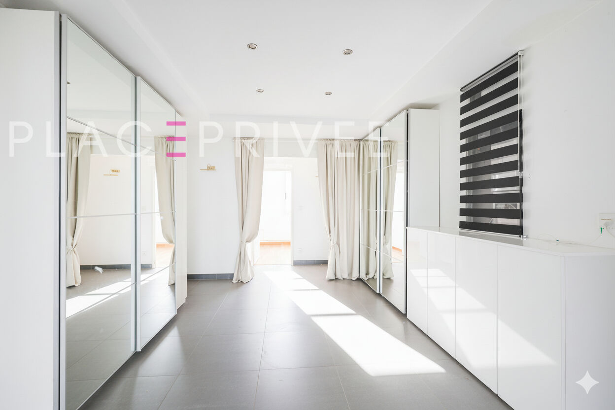 Nancy Boulevard Jean-Jaurès, Résidence Perspective Vend appartement T4 rénové avec terrasse en rooftop, 3 chambres, parking en sous-sol. Au 11ème et dernier étage d'une résidence sécurisée du boulevard Jean-Jaurès, cet appartement rénové de 96 m² développe une atmosphère nette et contemporaine, prolongée à l'étage supérieur par une terrasse privative, non attenante, aménagée comme un véritable espace de vie extérieur. La proximité du tram et des commerces du quartier renforce le confort urbain de l'adresse. L'espace de réception réunit séjour et cuisine ouverte pour un ensemble cohérent de 51 m². La cuisine, entièrement repensée, se distingue par ses façades blanches laquées, son long plan de travail épuré, son îlot central généreux et sa table attenante en acier. L'électroménager est intégré en colonne, et la hotte suspendue structure visuellement l'espace. La lumière pénètre largement par les baies vitrées, adoucissant les lignes strictes de cet intérieur contemporain. Le couloir distribue trois chambres d'un volume équilibré, dont deux d'une surface supérieure à 12 m². Leur parquet en bois contraste avec le carrelage gris de la pièce de vie, apportant une tonalité plus chaleureuse à l'espace nuit. La salle d'eau rénovée associe une douche vitrée, un meuble double vasque en bois clair et des mosaïques bleu vif qui animent le mur et rythment la pièce. A l'étage, la terrasse privative d'environ 45 m² a été soigneusement agencée : un salon extérieur complet avec canapé, fauteuils et table basse en bois invite clairement à s'y installer ; les pots de terre cuite alignés le long du garde-corps ainsi que les bacs végétalisés renforcent la présence du vert et structurent les différents usages. Le revêtement en lames composite foncées donne une continuité visuelle et une assise confortable à l'ensemble. La vue dégagée sur les toits, la ville et son clocher crée un horizon profond, accentuant la sensation de hauteur et l'esprit de belvédère urbain. Climatisation réversible. Parking en sous-sol et cave. Jardin collectif en pied de résidence. Charges mensuelles : 295 euros, incluant chauffage, ascenseur, gardien et frais de copropriété. Une exclusivité Place Privée. Les informations sur les risques auxquels ce bien est exposé sont disponibles sur le site Géorisques : www.georisques.gouv.fr Copropriété de 152 lots.