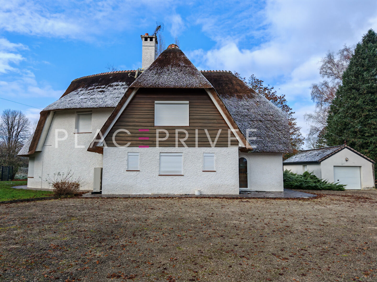 A Châteauvillain, vend cette demeure coiffée d'un toit de chaume d'origine prenant place au coeur d'un vaste terrain clos et arboré d'environ 4 823 m². L'architecture est singulière, rare dans la région, et confère à la maison une identité forte. La toiture, remarquable, est réputée pour ses qualités isolantes et contribue au confort général du lieu. Le rez-de-chaussée s'ouvre sur un large espace de vie dont la première impression est celle du volume. De grandes ouvertures à petits carreaux rythment la pièce et offrent une vue sur le jardin. L'escalier soigneusement travaillé, structure un des côtés de la pièce. L'ensemble présente une atmosphère traditionnelle, renforcée par une cheminée en pierre à large foyer et par des éléments anciens visibles ici et là, notamment des rangements muraux intégrés. La cuisine, fonctionnelle et séparée, pourra être repensée selon les attentes des futurs occupants. A ce niveau se trouvent également une chambre avec salle d'eau privative, une pièce d'eau avec WC ainsi qu'une chaufferie. L'étage accueille un bureau pouvant servir de chambre, ainsi que trois autres chambres, chacune disposant de son propre point d'eau. Les volumes y sont confortables et les espaces restent modulables. Une mise à niveau sera nécessaire pour redonner à ces pièces tout leur potentiel et leur cohérence esthétique. La maison bénéficie d'un double vitrage, de volets électriques et d'une pompe à chaleur récente installée il y a deux ans. A l'extérieur, la propriété profite d'un jardin arboré entièrement clos. Un garage indépendant permet d'accueillir un véhicule et plusieurs en extérieur et se situe à proximité immédiate de la maison. Le secteur offre un environnement naturel appréciable, à proximité immédiate du centre de Châteauvillain, connu pour son parc national et ses espaces boisés. Chaumont se situe à environ 20 minutes en voiture, facilitant l'accès aux services, commerces et infrastructures. Nancy se trouve à deux heures, offrant un lien direct avec un bassin urbain plus large tout en préservant ici un cadre de vie nettement plus rural et préservé. Cette situation permet d'envisager autant un usage résidentiel qu'une maison secondaire ou un relais familial. Les informations sur les risques auxquels ce bien est exposé sont disponibles sur le site Géorisques : www.georisques.gouv.fr (6.50 % honoraires TTC à la charge de l'acquéreur.)