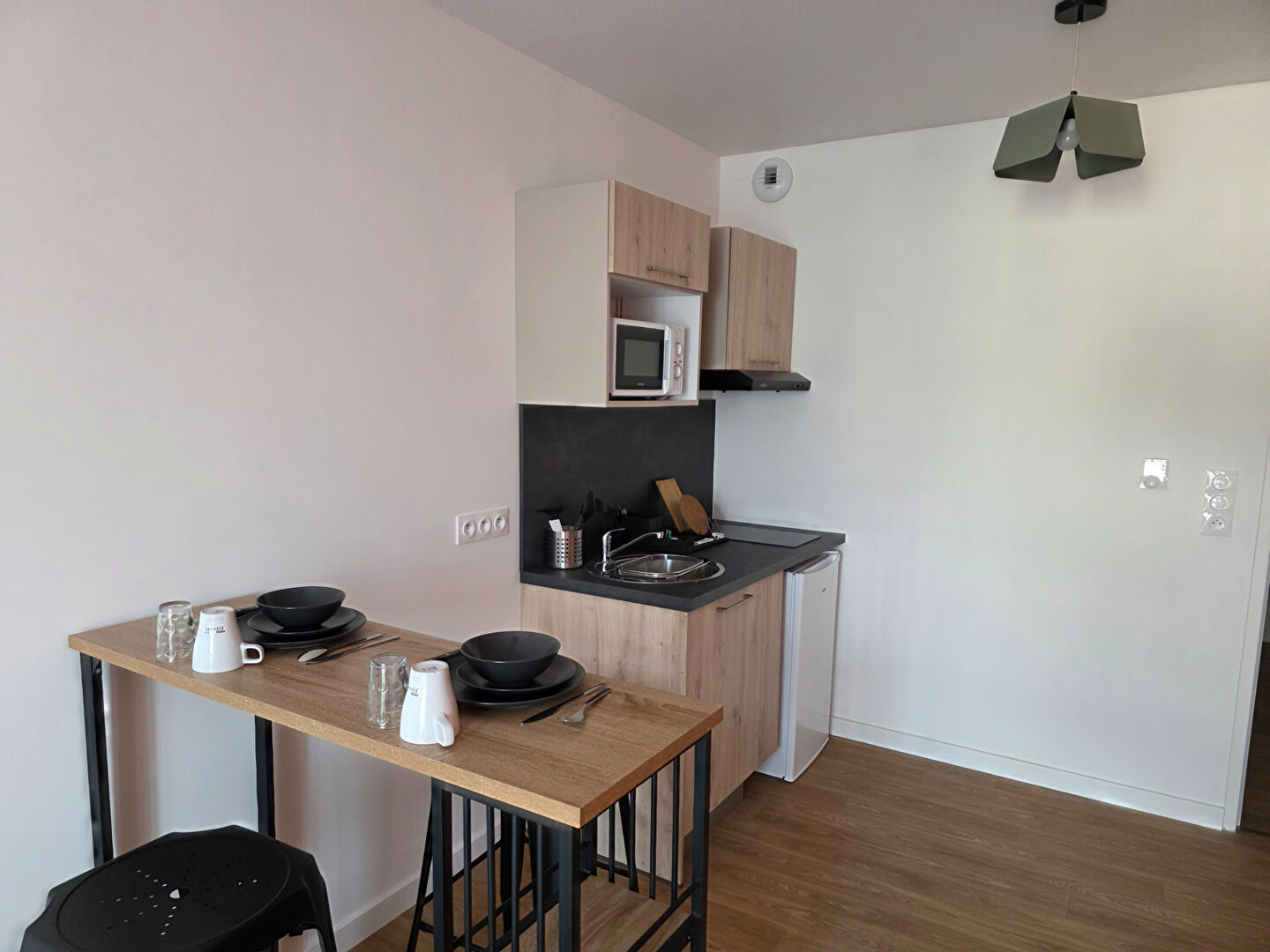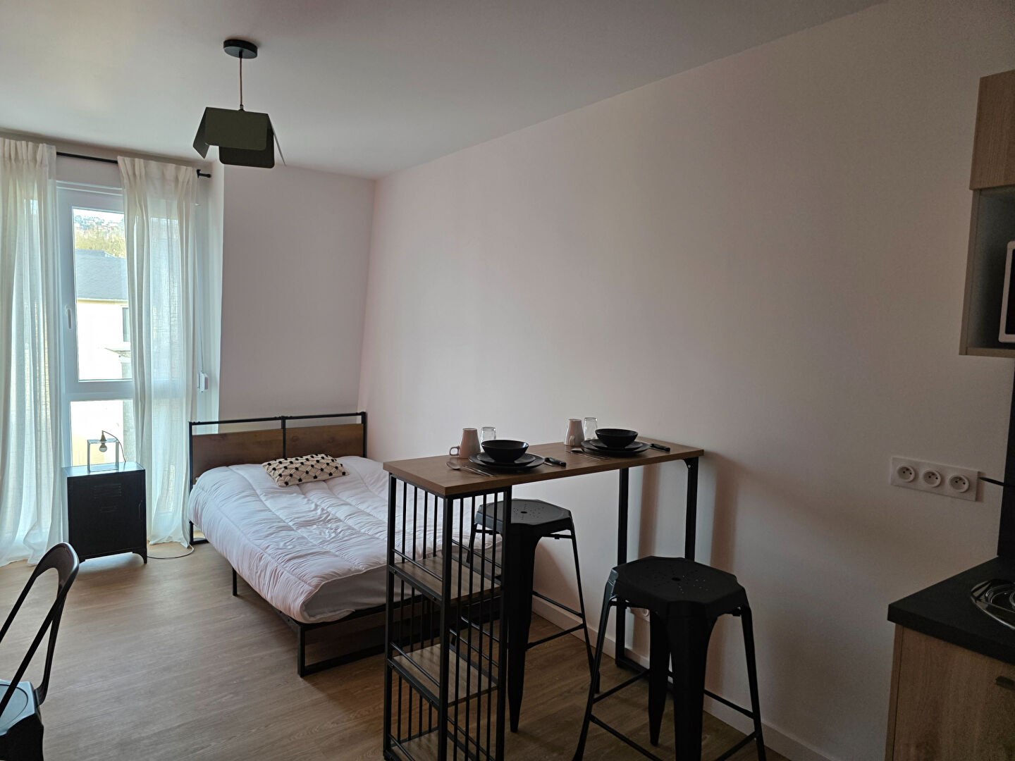 Au pied du CHU de Rouen, au croisement de la rue Eau de Robec et de la rue romulus, au sein d'une résidence "suitétude" neuve avec ascenseur, spacieux studio meublé comprenant : Une entrée avec placard de rangement, une pièce principale avec table à manger, bureau, lit et table de chevet, une cuisine ouverte aménagée et équipée et une salle de douche avec W.C. Disponible de suite