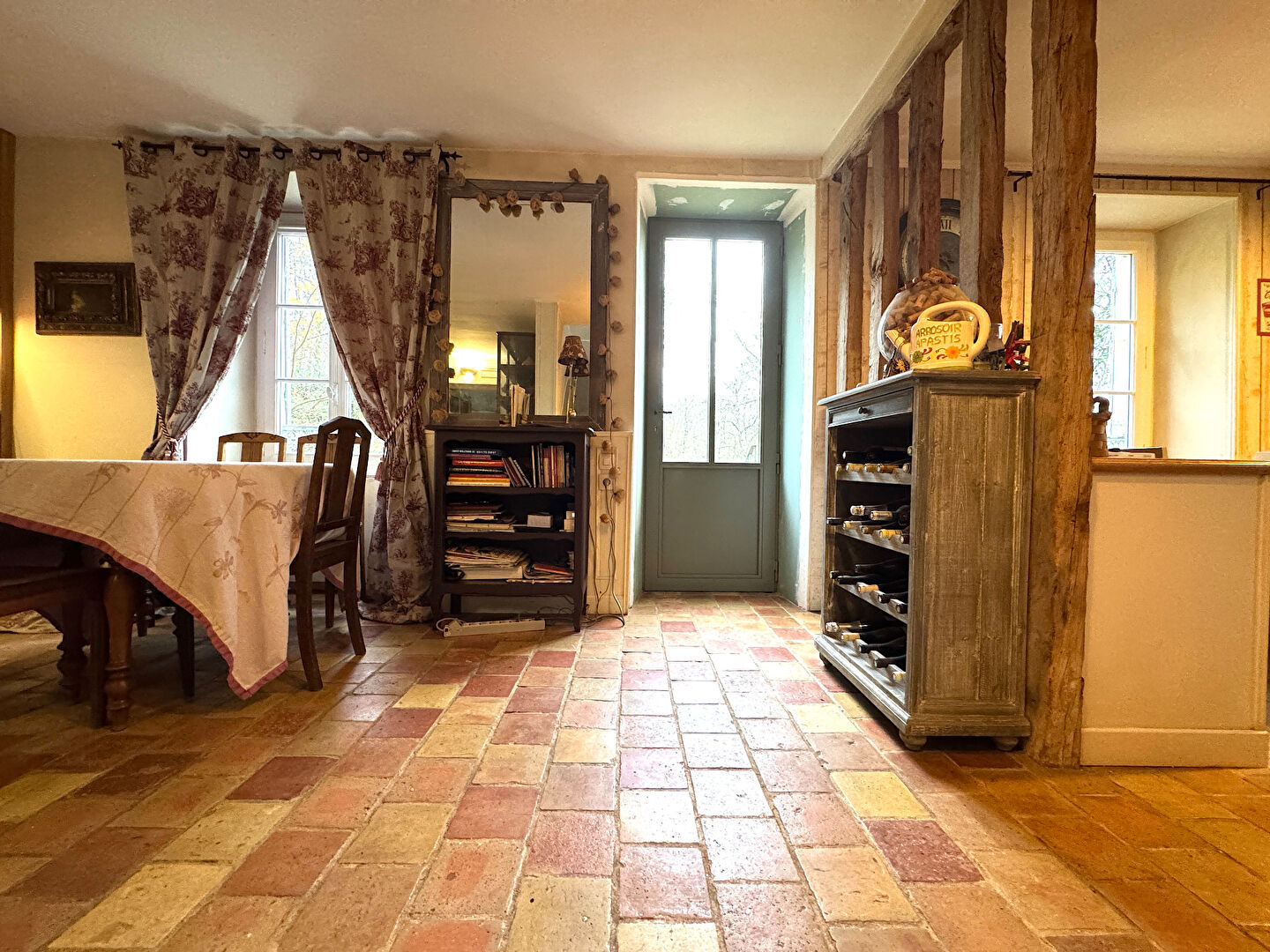 A 6' de Montfort l 'Amaury , très beau corps de ferme entièrement rénové avec beaucoup de goût et de raffinement sur un joli terrain de 1319m2 sans vis à vis , en bordure de Forêt . La décoration soignée et les matériaux authentiques ( poutres , cheminée et tomettes) ornent cette lingère et donnent une ambiance cosy et cocooning . Séjour avec parquet , boiseries et poêle , donnant sur terrasse et jardin exposés S-O-Petit salon bibliothèque avec tomettes, cheminée et parquet S-O sur terrasse - Grande cuisine aménagée "Family Room" avec tomettes et poêle , sur terrasse et jardin -Chambre avec salle d'eau. L'étage est desservi par deux escaliers : un qui donne sur une spacieuse suite parentale baignée de lumière et le deuxième donnant sur deux chambres et une salle de bains . Deux caves voûtées en pierres - Beaucoup de charme - A voir . REF : 2778 (5.00 % honoraires TTC à la charge de l'acquéreur.)