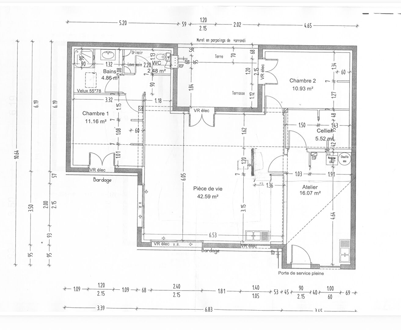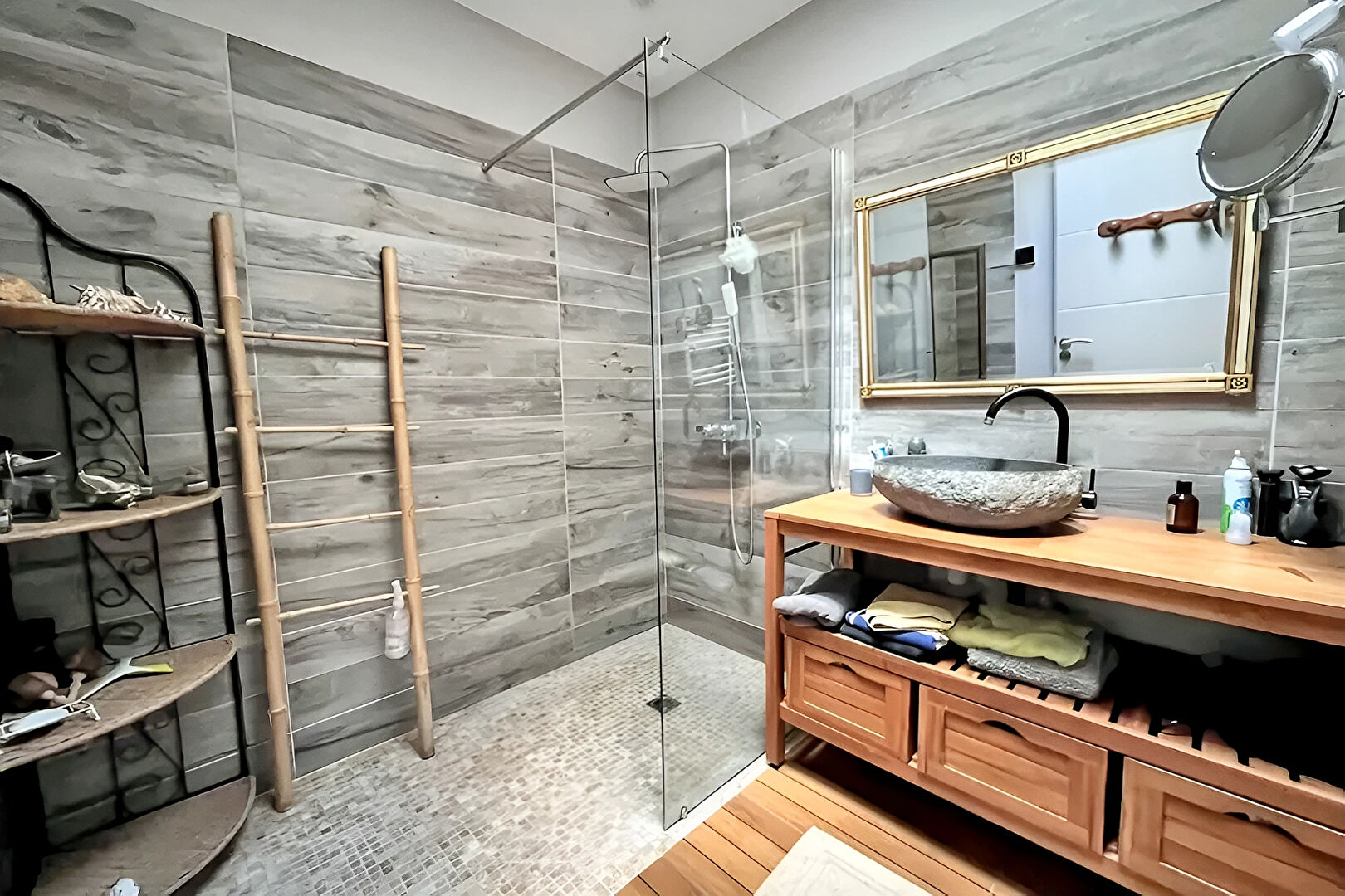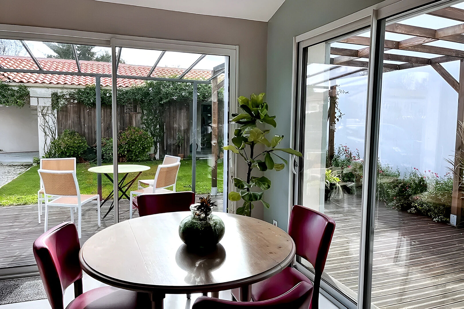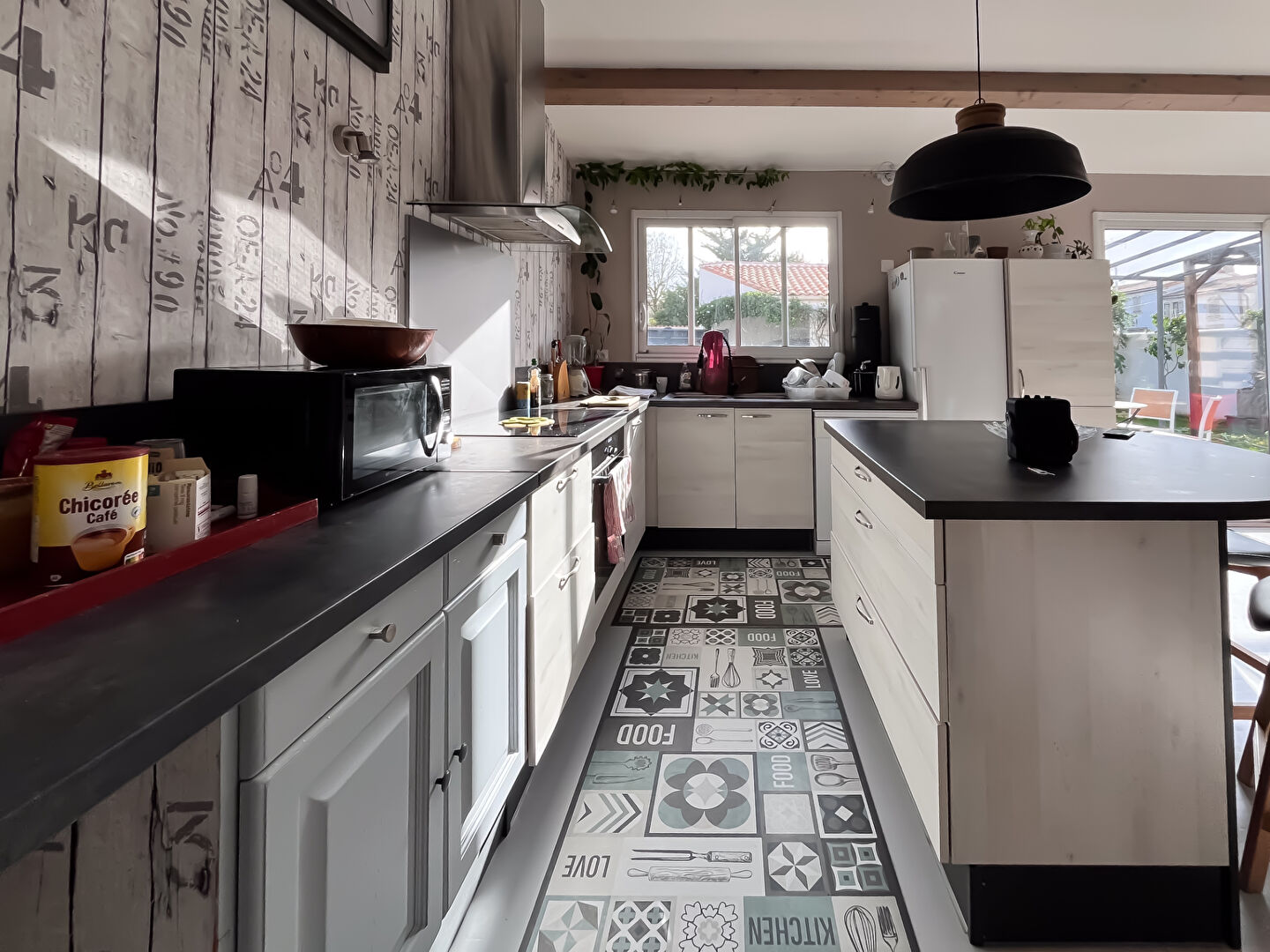 EXCLUSIVITE BLOWSENS Commune de SAINTE-SOULLE - 10 minutes de l'entree de LA ROCHELLE Modernité, Originalité, Confort, Luminosité MAISON contemporaine de plain-pieds à usage d'habitation d'environ 93m2 comprenant entrée, piece de vie cathédrale lumineuse de 42 m2, 2 chambres avec baie vitrées dont une suite parentale ( possibilité 3 chambres si aménagement de l'atelier attenant de 16 m2), celliers salle de bains, WC. Poele a bois - chauffe eau thermodynamique - chauffage electrique Patio 13 m2, terrasse et garage/atelier non attenant d'environ 21 m2 Terrain piscinable