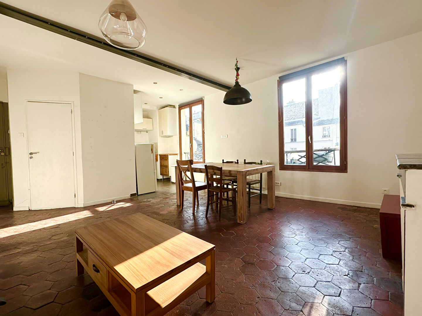 PARIS 18ème / Marx Dormoy - Rue de Torcy Un duplex plein de charme, baigné de soleil L'IMMOBILIER PAR CHARLY vous invite à découvrir, au second et dernier étage, ce duplex de 49,17 m2 loi carrez, niché au coeur d'une charmante copropriété ancienne, à deux pas du marché de l'Olive. Dès l'entrée, le charme authentique de l'ancien opère: tomettes, cheminées, parquet, belle hauteur sous plafond font du vaste séjour lumineux une pièce de vie chaleureuse. Ce premier niveau complété par une cuisine ouverte aménagée et une salle d'eau avec WC. A l'étage, une belle chambre de caractère et lumineuse, avec parquet, cheminée et grand velux, vous offre un véritable cocon chaleureux et intimiste. Exposition plein Sud, vue dégagée, calme absolu : un véritable havre de paix dans le quartier ! Emplacement pour vélos dans la cour Coup de coeur assuré ! (4.04 % honoraires TTC à la charge de l'acquéreur.) Copropriété de 72 lots - dont 72 lots habitation. Charges annuelles : 1781.84 euros.