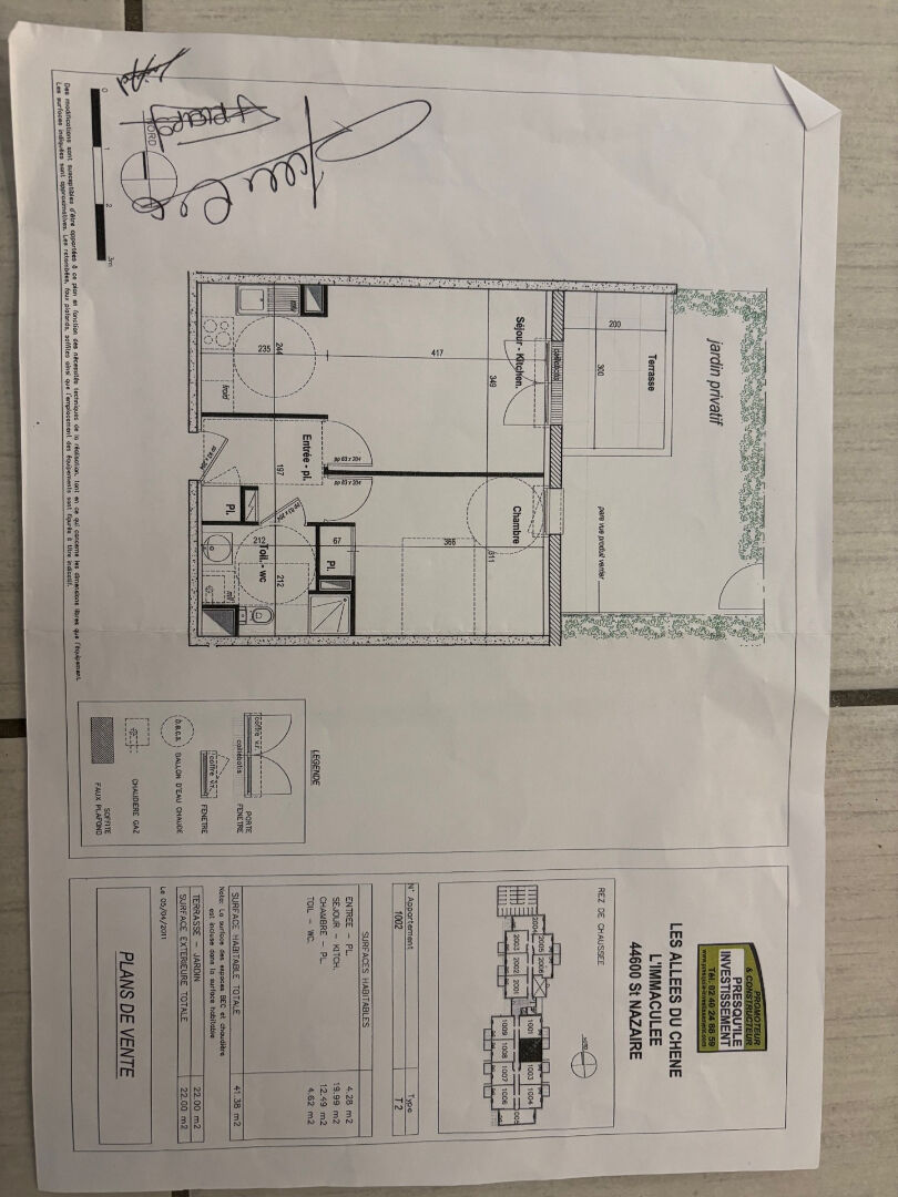 Votre agence Sixième Avenue Saint Nazaire vous propose ce T2 en rez-de-jardin de 41 m² environ, situé dans le quartier de l'Immaculée à Saint Nazaire. Dans une résidence de 2013 avec portail sécurisée, à proximité du Leclerc Immaculée. Il se compose d'une entrée avec placard, un salon-séjour-cuisine américaine (plaque, réfrigérateur), une chambre avec placard et une salle d'eau avec WC. Aucun travaux à prévoir !!!! LES PLUS : 1 terrasse + Jardin de 22 m², 1 place de parking extérieure sécurisée, Volets électriques, VMC, Fibre, 1 local vélo commun. (6.00 % honoraires TTC à la charge de l'acquéreur.) Copropriété de 40 lots (Pas de procédure en cours). Charges annuelles : 800 euros.