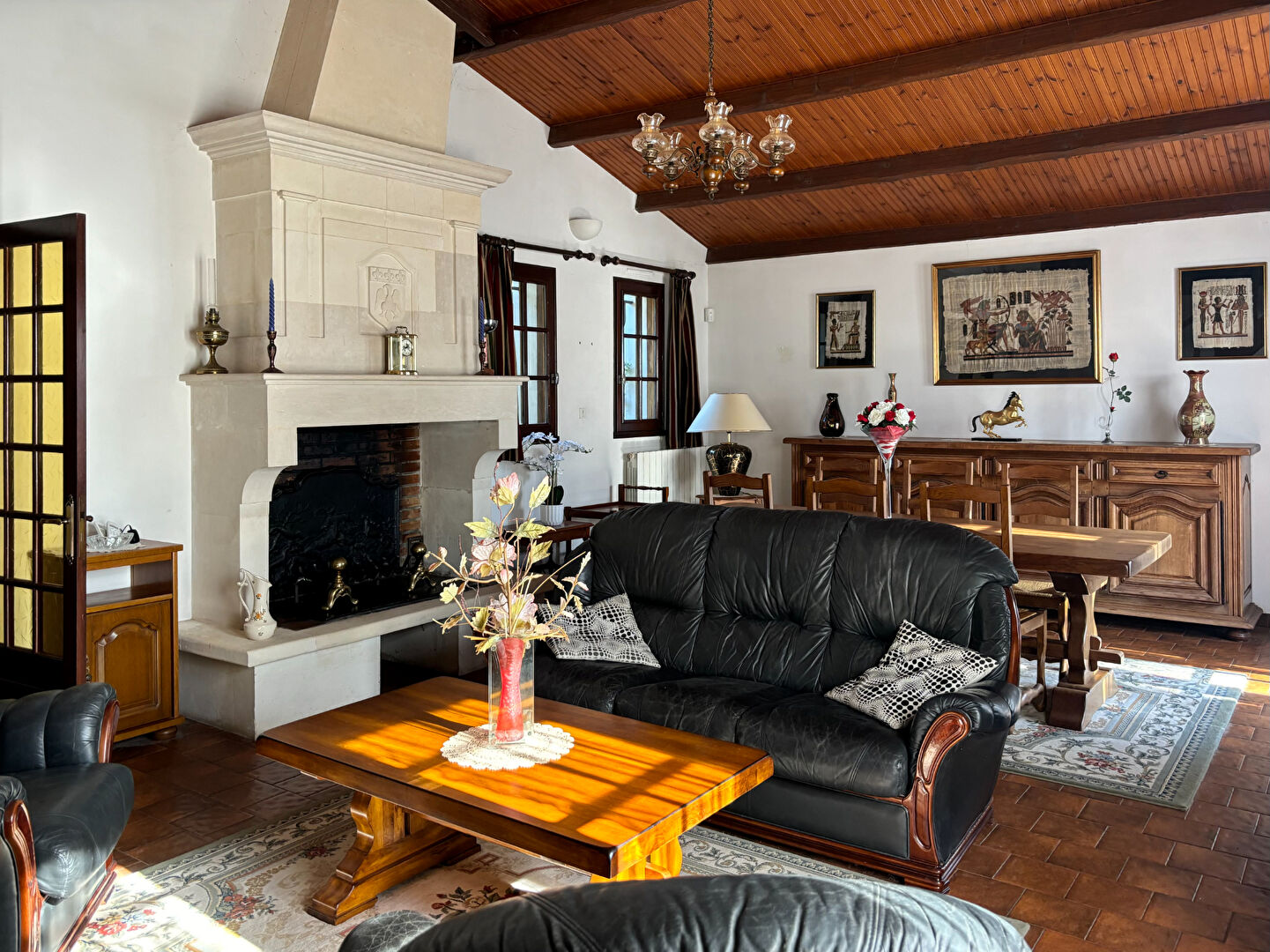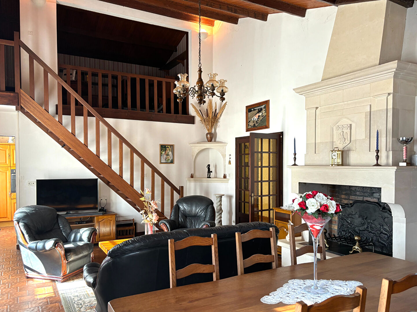 Nichée dans un cadre paisible et verdoyant, cette belle propriété édifiée sur un parc arboré de 3000 m² offre un joli cadre de vie. Elle dispose d'un vaste salon-séjour baigné de lumière avec mezzanine, d'une cuisine indépendante aménagée, de trois chambres confortables, d'une salle de bains ainsi que d'un WC séparé. Un grand garage / atelier complète ce bien. Alliant charme, volume et environnement naturel, cette maison est idéale pour ceux qui recherchent tranquillité et qualité de vie à proximité des commodités. Une visite s'impose pour en apprécier tout le potentiel ! (5.00 % honoraires TTC à la charge de l'acquéreur.)