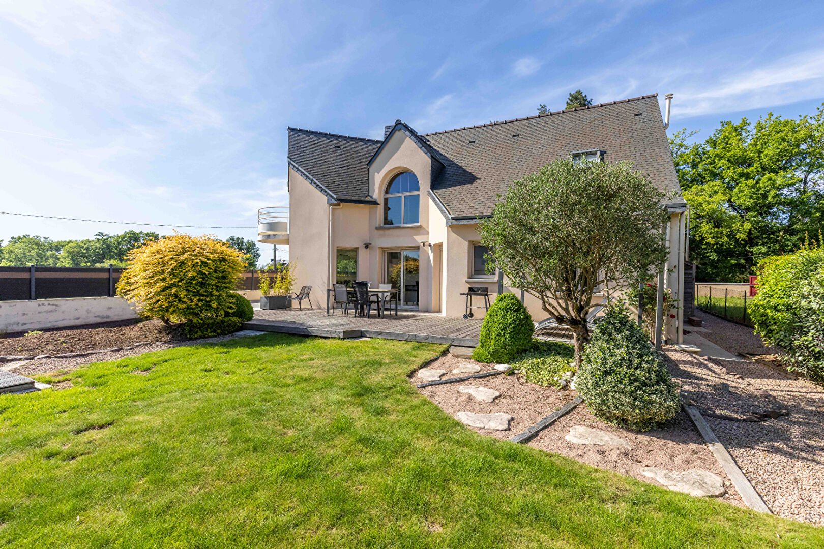 EN VENTE CHEZ CABINET BARTH IMMOBILIER - MAISON 5 CHAMBRES - JARDIN - DOUBLE GARAGE - SAINT-THURIAL Retrouvez-nous sur Instagram : barth_immobilier Et dans notre agence située à BRÉAL-SOUS-MONTFORT - 5 Rue du Calvaire. Le Cabinet BARTH Immobilier vous propose à la vente cette agréable maison d'approximativement 132m2 habitable avec double garage et jardin au SUD. Cette maison comprend au rez-de-chaussée une entrée avec placard donnant sur une lumineuse pièce de vie avec cuisine ouverte aménagée/équipée, une chambre ainsi qu'une salle d'eau. A l'étage se trouve une lumineuse mezzanine, 3 chambres, une salle de bains ainsi qu'une chambre parentale avec salle d'eau privative. La maison située sur un terrain de 632 m² comprend une vaste cour goudronnée, un double garage avec appentis et le jardin cloturé avec terrasse exposée plein sud. ARDOISES NATURELLES, POMPE A CHALEUR AIR/EAU,... FAITES-VITE ! Contactez votre agence Cabinet BARTH Immobilier pour plus de renseignements sur cette maison en vente à SAINT-THURIAL. Référence : 796DV. (4.52 % honoraires TTC à la charge de l'acquéreur.)