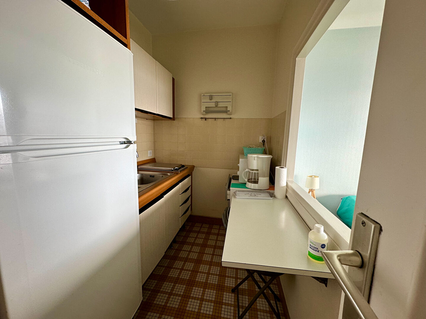 Situé au 2ème étage d'une résidence recherchée avec gardien, ce studio lumineux à rénover, offre un cadre de vie exceptionnel grâce à sa vue mer imprenable et son emplacement privilégié dans le quartier prisé du casino et des grands hôtels. Il se compose d'une entrée avec placard, d'une salle de bains avec WC, d'une cuisine aménagée et équipée semi-ouverte, ainsi que d'un séjour baigné de clarté, donnant accès à une terrasse face mer de 8 m², idéale pour profiter du soleil grâce à son exposition Sud. Une cave en sous-sol ainsi qu'un parking privatif extérieur complètent ce bien. A seulement 800 m du marché, ce studio au potentiel rare saura séduire aussi bien pour une résidence secondaire que pour un investissement. Les informations sur les risques auxquels tous nos biens sont exposés sont disponibles sur le site : www.georisques.gouv.fr (5.00 % honoraires TTC à la charge de l'acquéreur.) Copropriété de 367 lots - dont 120 lots habitation. (Pas de procédure en cours). Charges annuelles : 1044 euros.