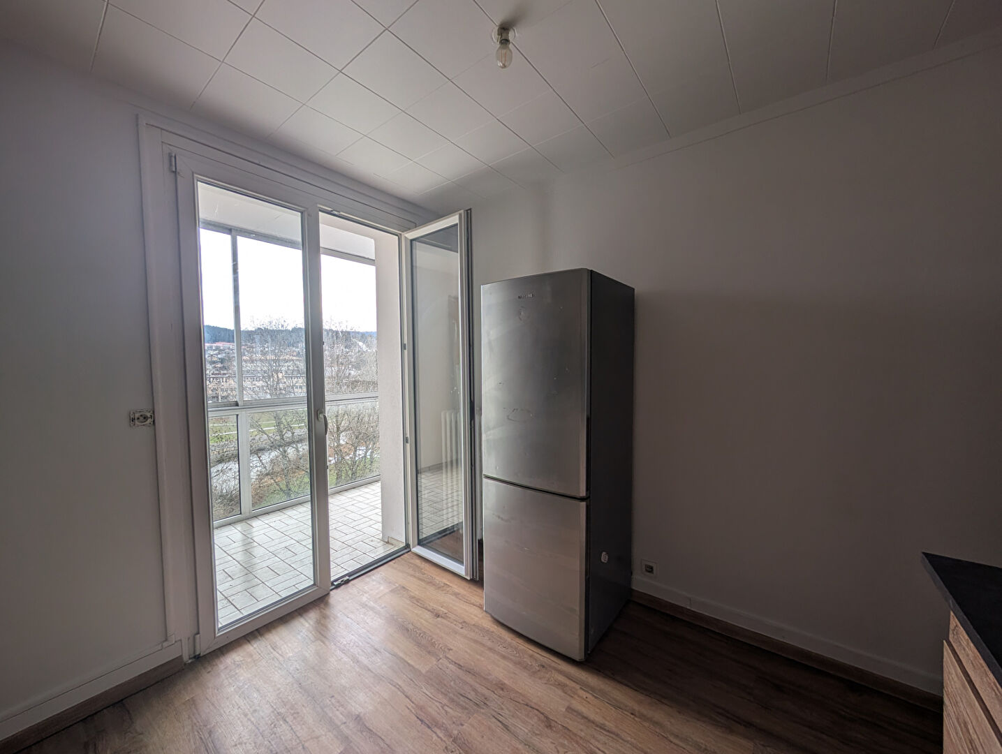 Rue de Besançon à Pontarlier, résidence Le Batiplex, appartement de type F3 au cinquième étage sans ascenseur, offrant une entrée, une cuisine équipée avec loggia, un séjour lumineux, deux chambres, une salle de bains et des toilettes séparées. Un garage et une cave viennent compléter ce bien fonctionnel et pratique. Eau chaude et chauffage compris dans les charges. Disponible de suite.