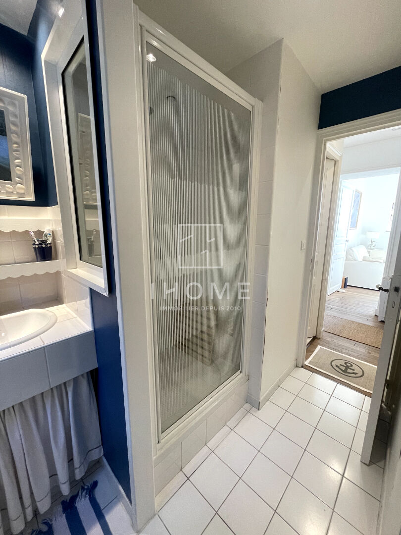 Appartement lumineux et traversant de 50m2 dans une Villa située à 300m de plage. Une très belle vue mer pour cet ensemble entouré de pins avec un accès vers la plage par le jardin. Belle hauteur sous plafond, entrée, wc indépendant, chambre spacieuse et plancher bois participent au charme de ce lieu dont la pièce de vie et cuisine ouverte sont exposées plein sud. Nombreux rangements. Une cave complète ce bien. (4.00 % honoraires TTC à la charge de l'acquéreur.) Copropriété de 13 lots - dont 13 lots habitation. (Pas de procédure en cours). Charges annuelles : 660 euros.