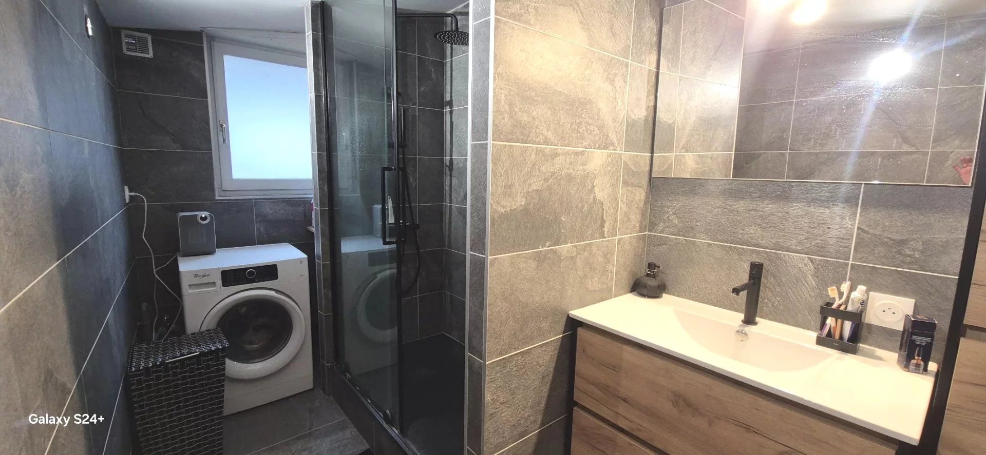 La décoration est actuelle, avec des matériaux et couleurs neutres permettant une personnalisation facile.