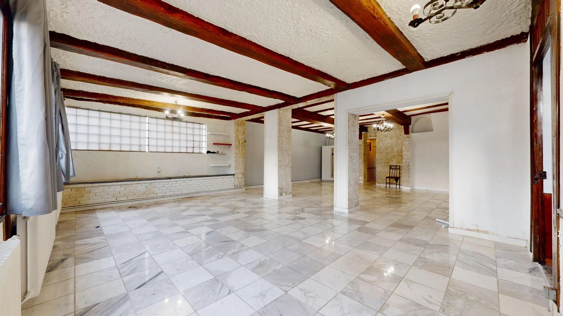Le rez-de-chaussée, d’une superficie de 112 m², offre une vaste salle de réception, parfaite pour accueillir votre clientèle, ainsi qu’une cuisine professionnelle (c'est un ancien restaurant) d’un cellier et d’une chambre froide. Un vestiaire et une salle d’eau avec WC complètent ce niveau.