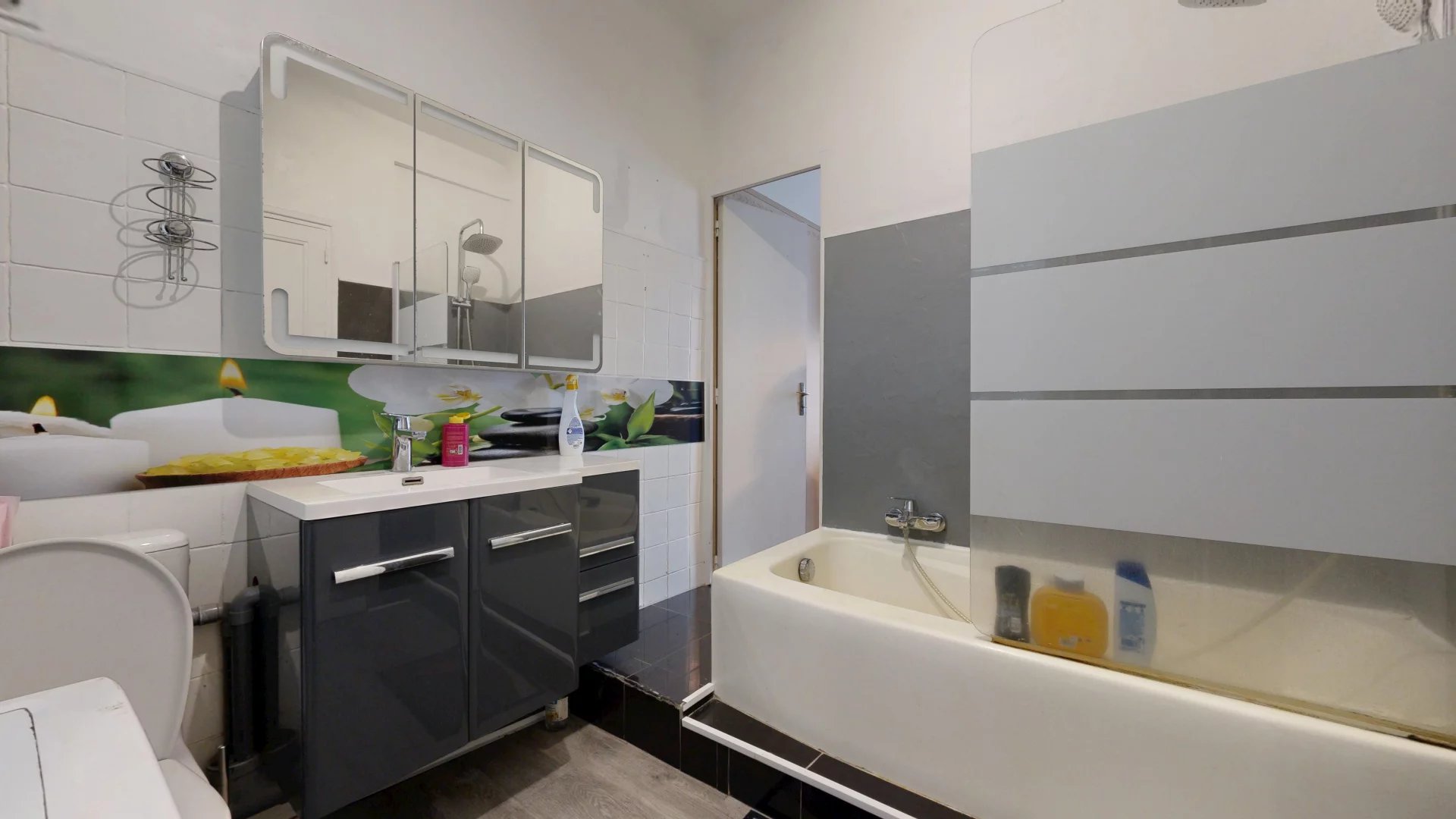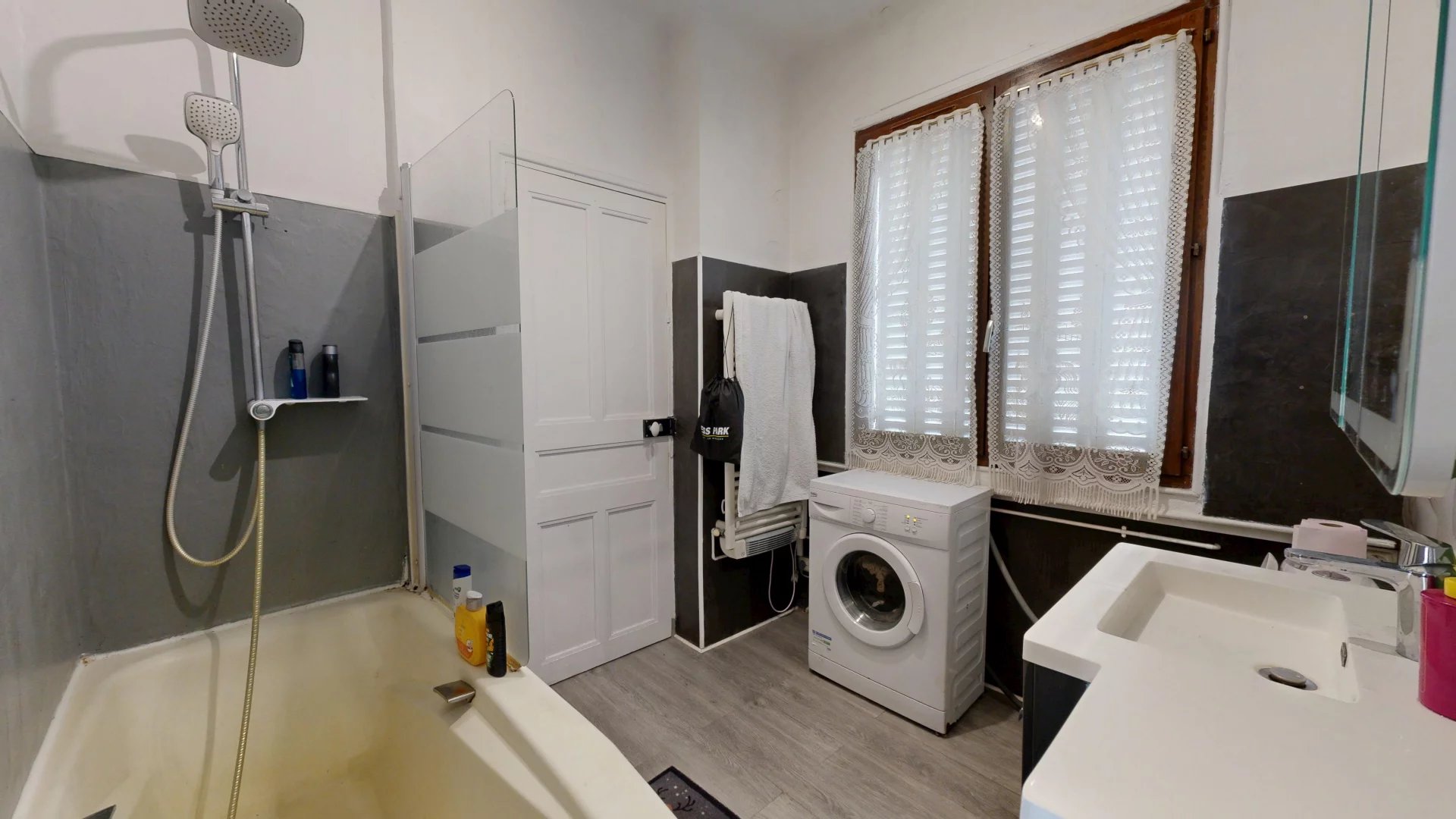 À l’extérieur, une cour privative permet le stationnement d’un véhicule, un atout appréciable.