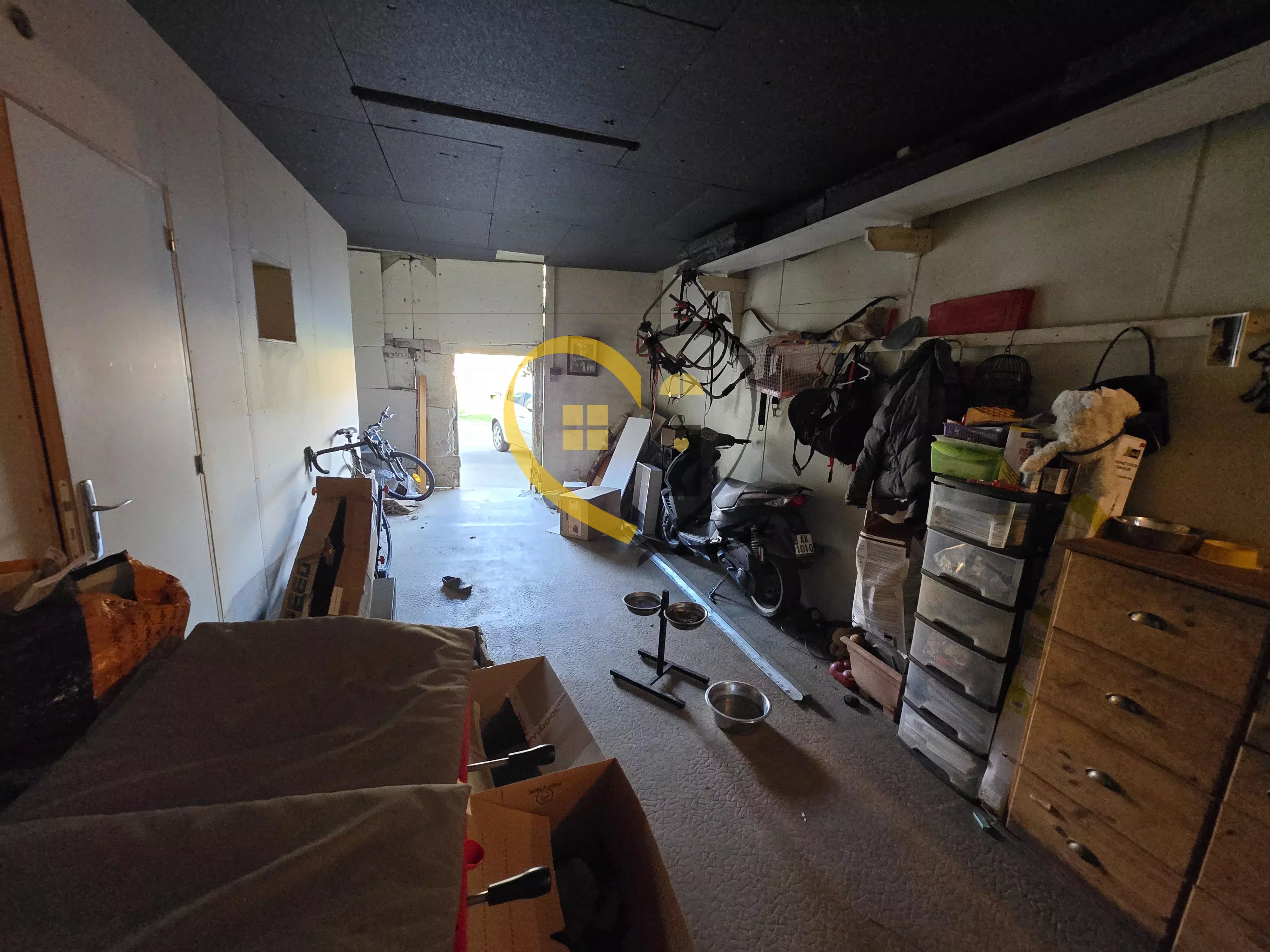 À l’extérieur, la maison dispose d’un garage et d’un atelier, apportant de réelles solutions de stationnement et de rangement. Le terrain est entièrement clôturé, garantissant intimité et sécurité. Le confort est assuré par un chauffage central au gaz, des menuiseries en double vitrage PVC et un assainissement individuel par micro-station.
