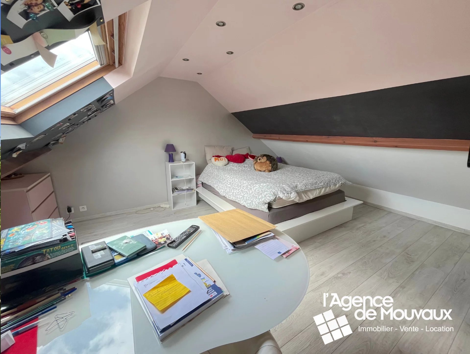 Au second étage : une grande chambre aménagée sous les combles avec possibilité d’y ajouter une salle de douches ou un dressing.