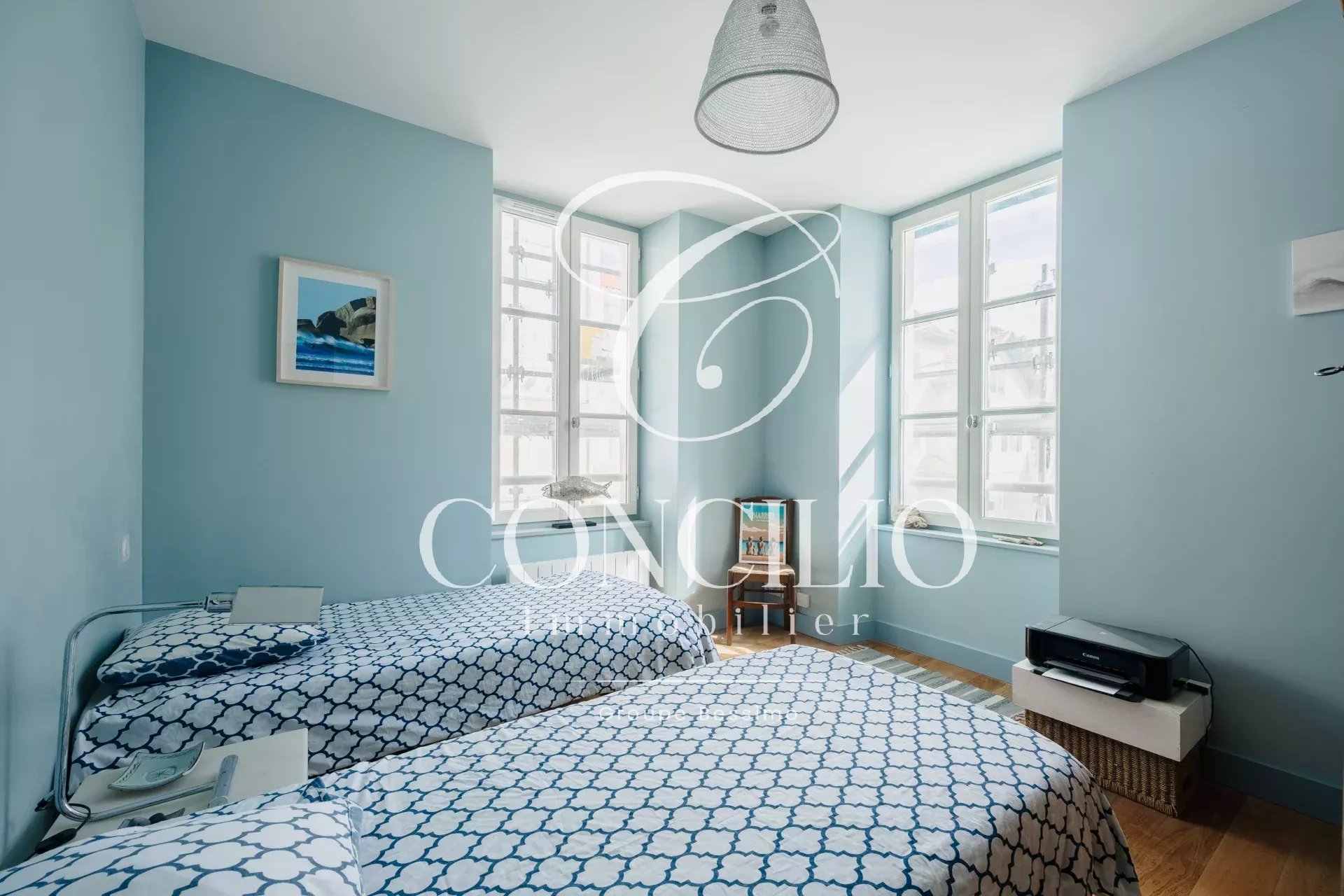 Situé dans un secteur résidentiel calme et recherché de Biarritz, à proximité immédiate du centre-ville et des plages, découvrez cet élégant appartement de caractère de 116,42 m² loi Carrez, au premier étage d’un immeuble des années 1950. Luminosité, volumes et authenticité définissent ce bien rare. L’appartement s’ouvre sur un vaste salon parqueté de plus de 32 m², exposé sud-est, prolongé par une agréable salle à manger avec accès direct à une terrasse d’environ 12 m² exposée sud-ouest, idéale pour vos moments de détente. La cuisine indépendante, baignée de lumière grâce à un puits de lumière, dispose d’une buanderie attenante avec accès à la terrasse. Un atelier complète cet espace fonctionnel et chaleureux. La partie nuit comprend une suite parentale avec salle de bains et WC, deux autres chambres confortables, une salle d’eau, un WC indépendant et de nombreux rangements intégrés. Un local de 10 m² et une cave à vin viennent parfaire cet ensemble. Loi ALUR : Montant des charges de copropriété : 189 euros/mois. Nombre de lots dans la copropriété : 3 lots principaux. Les informations sur les risques auxquels ce bien est exposé sont disponibles sur le site Géorisques.