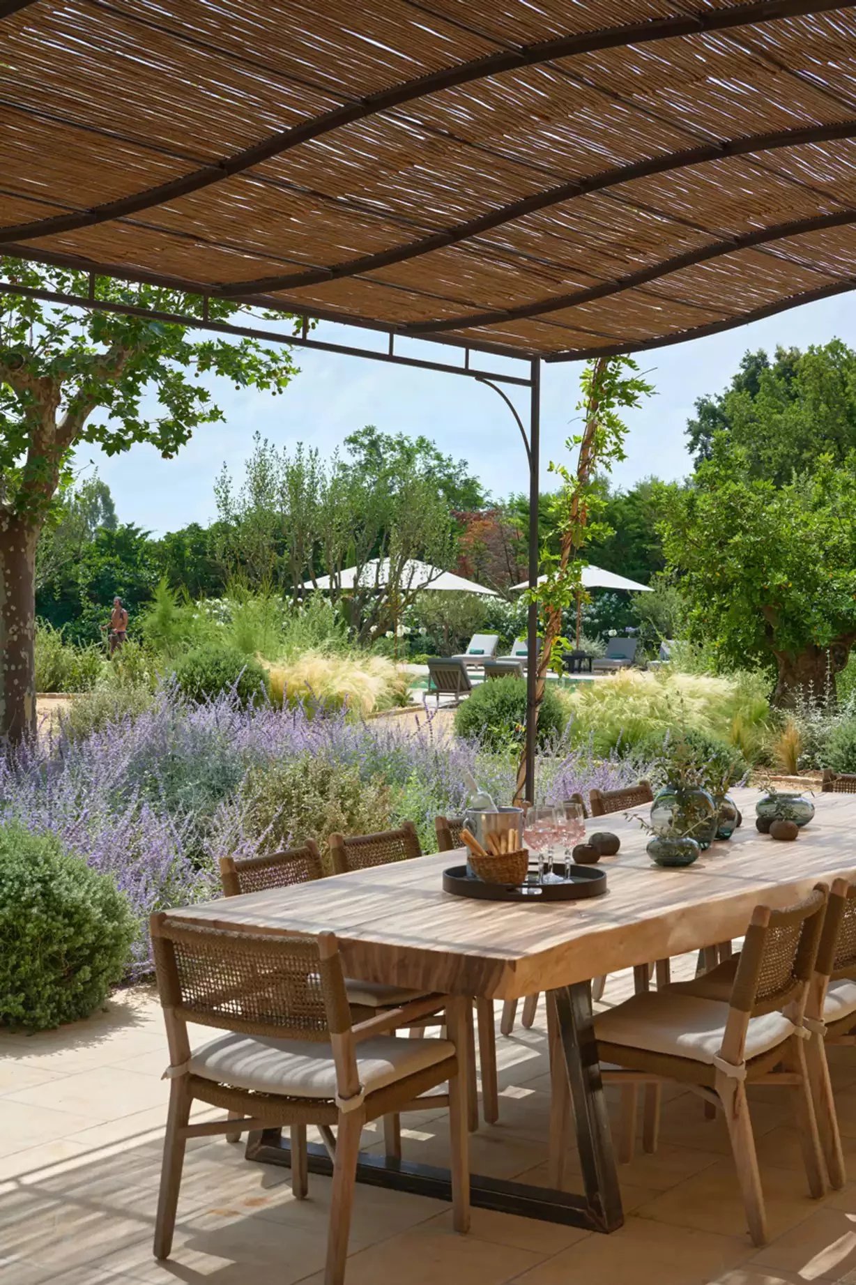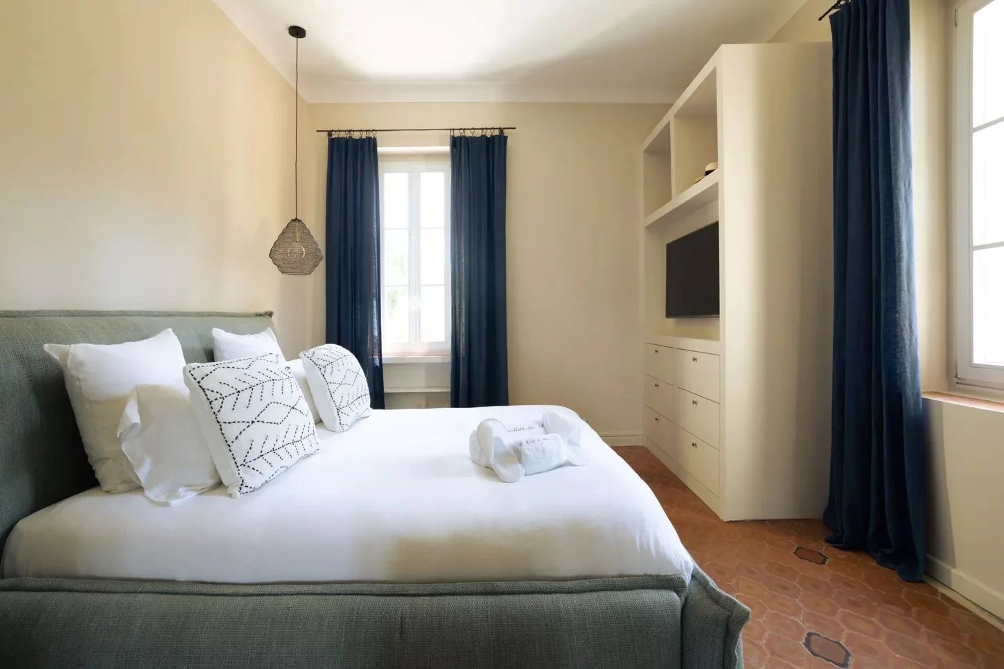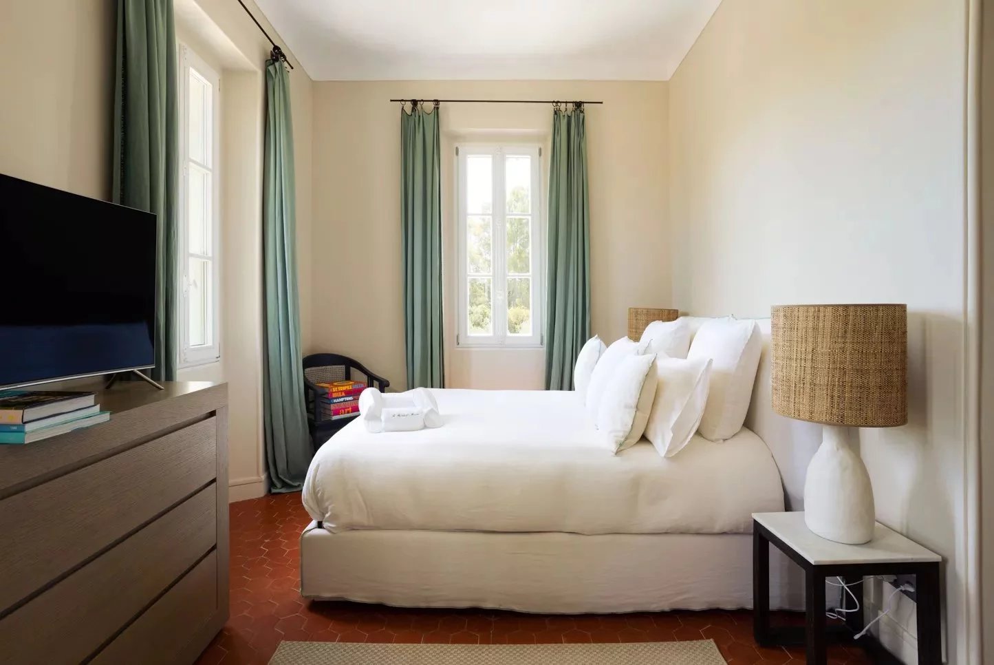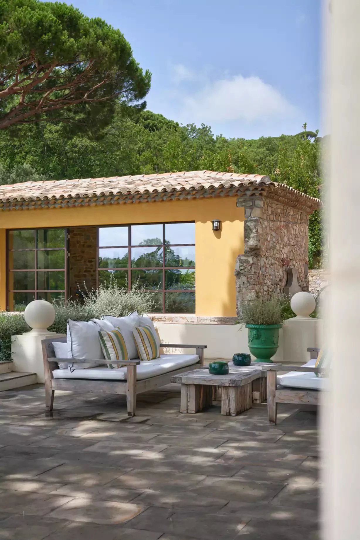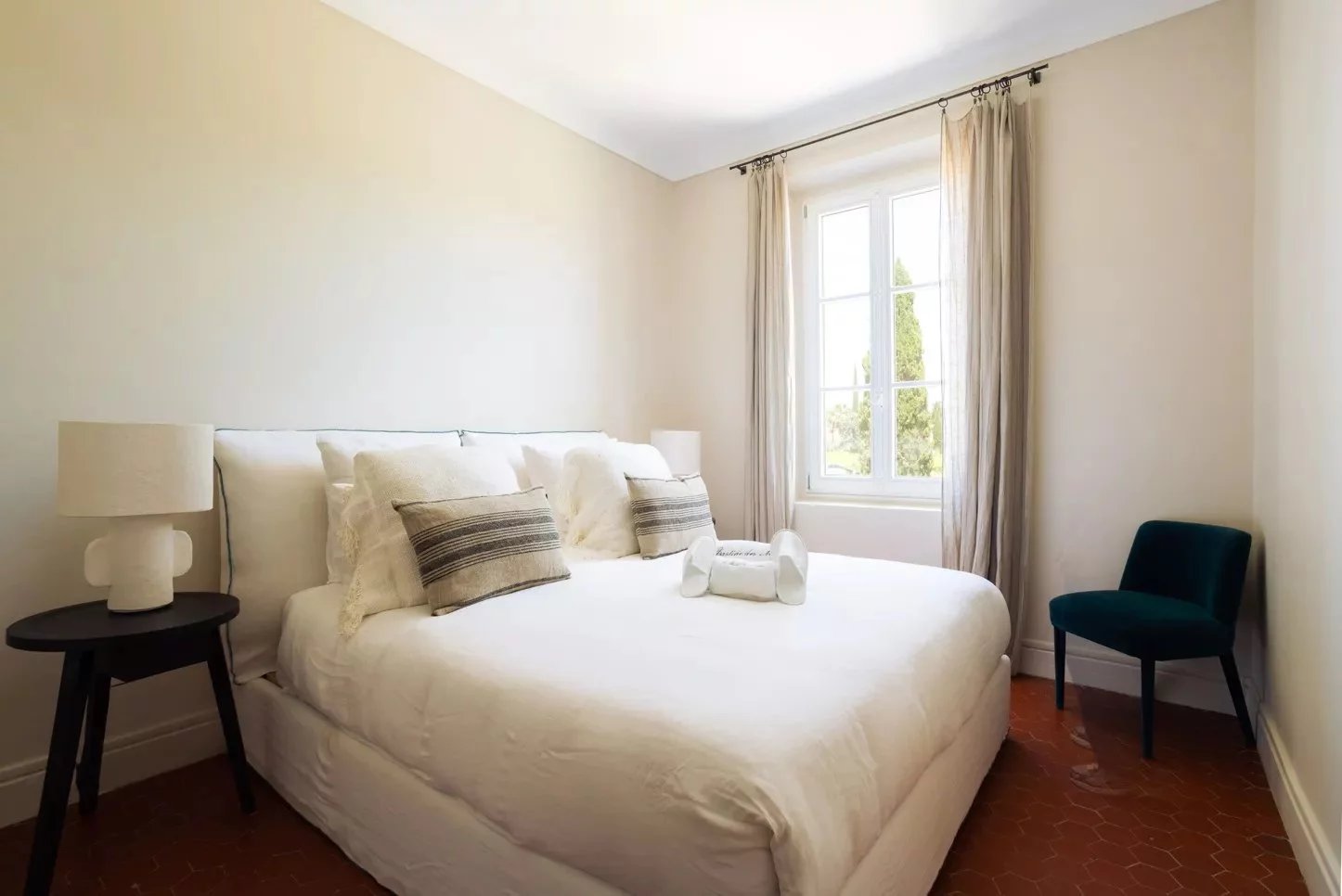 Nestled just outside the picturesque town of Ramatuelle, Bastide Giallo is a true jewel of the French Riviera. Its architecture harmoniously combines Southern authenticity and modern design. Inside, the decor honours comfort and elegance, using solid wood furniture, neutral tones, and refined fabrics to create a warm and welcoming atmosphere.