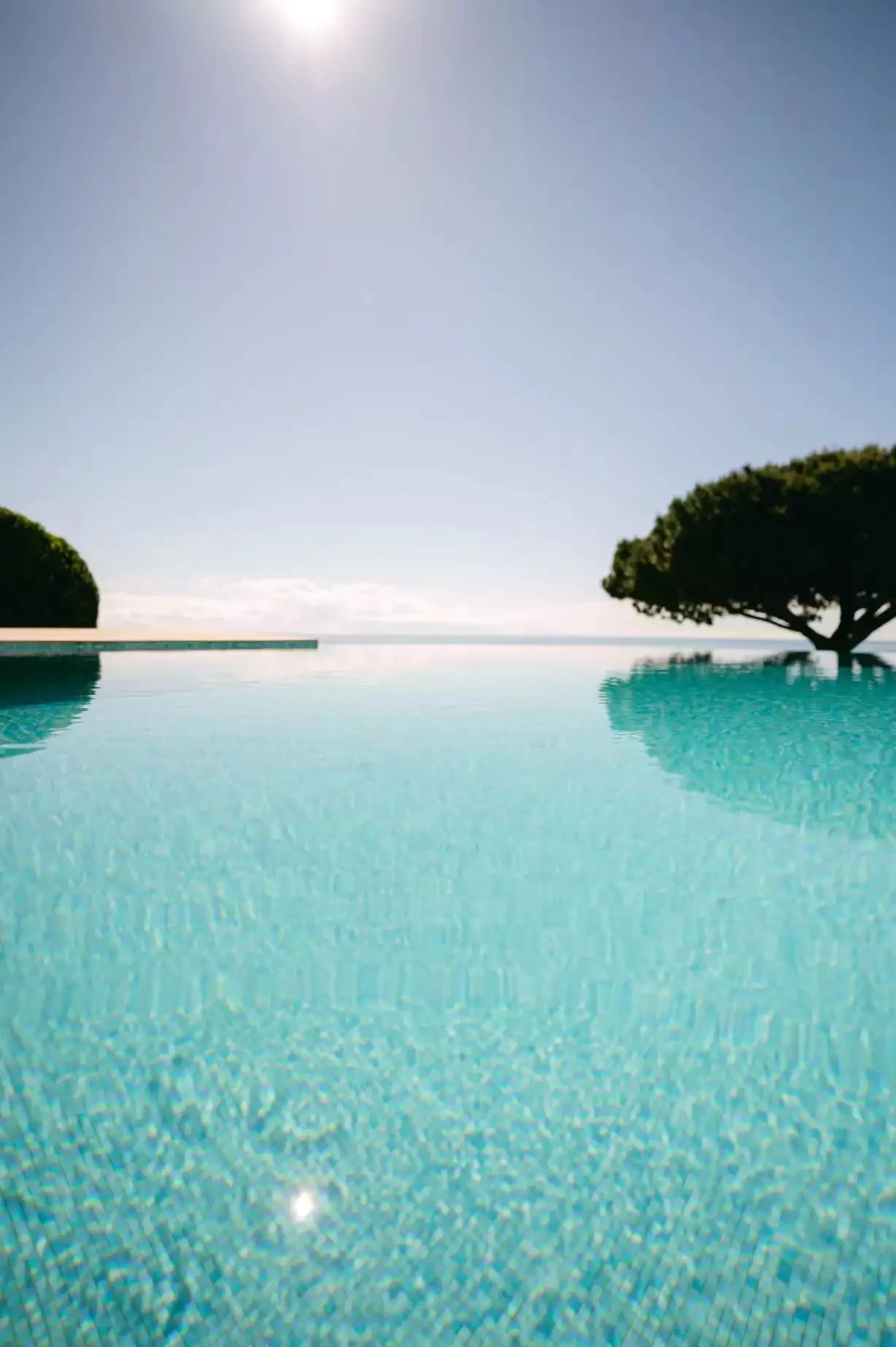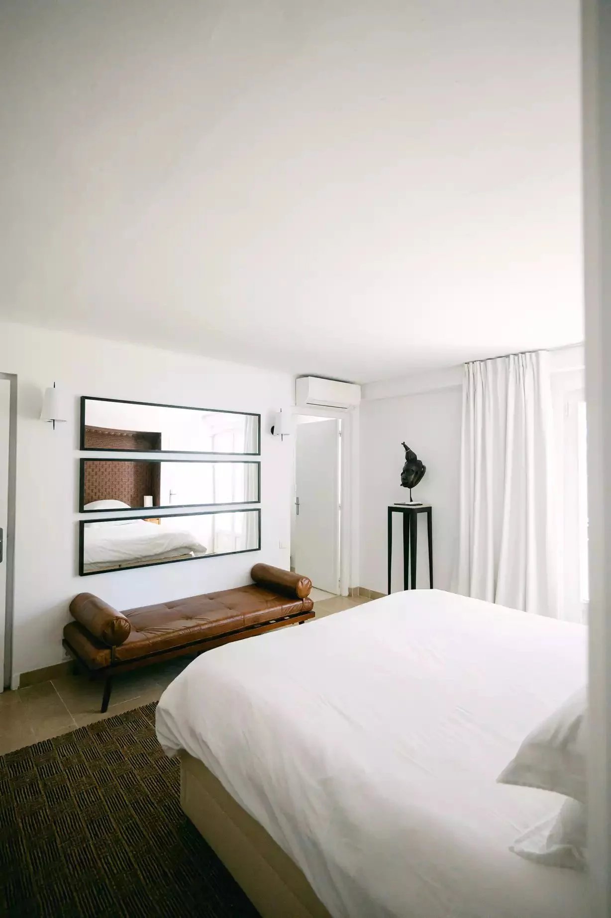 The villa’s 4 uniquely styled bedrooms sleep up to 10 people total, each featuring a private bathroom, a breathtaking view of the sea, and contemporary designer furnishings. Highlights include the Aluminum suite (using material from the 1958 Brussels World’s Fair) and the Hamptons-style mezzanine suite.