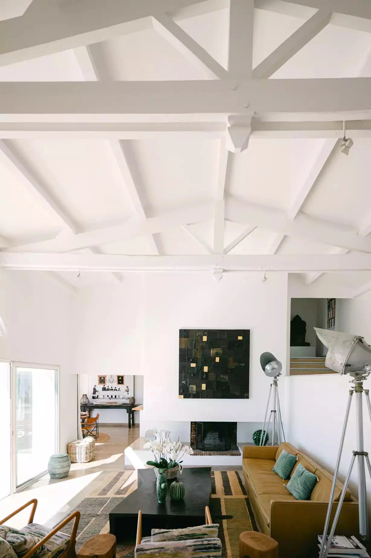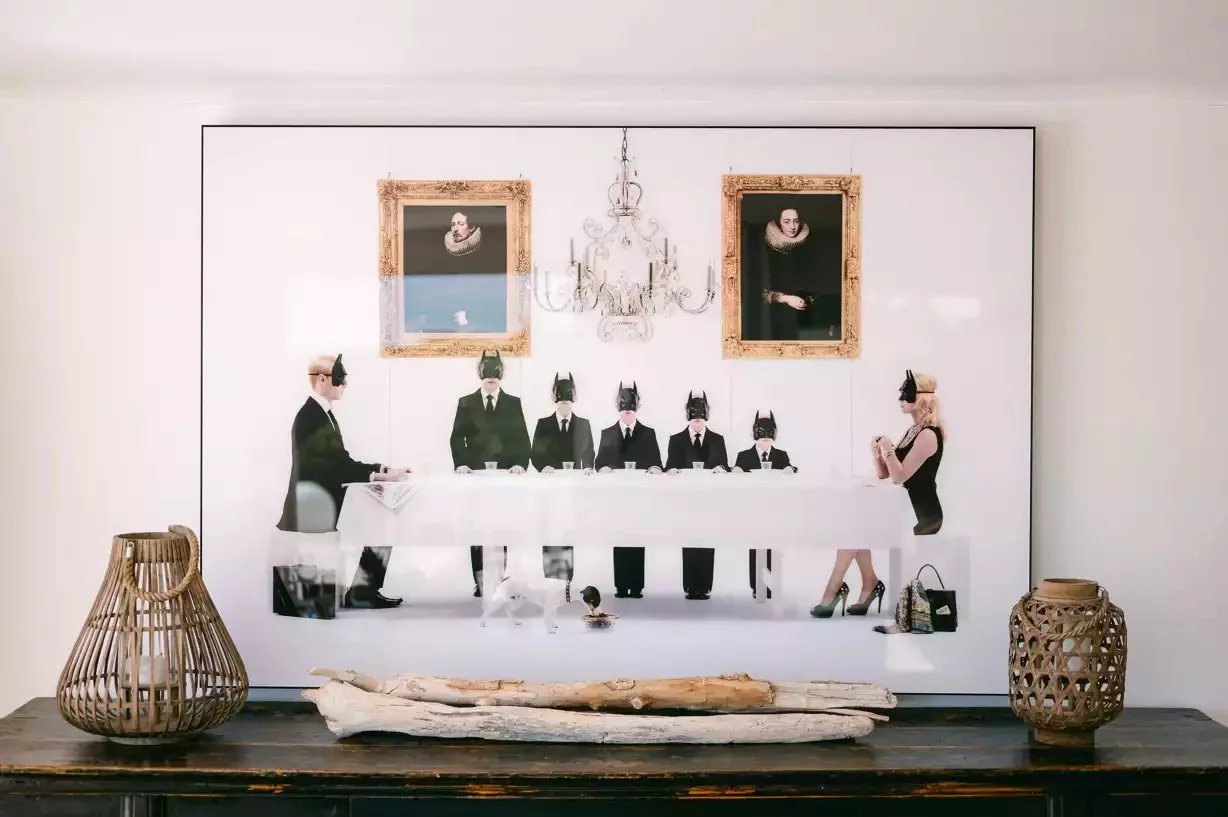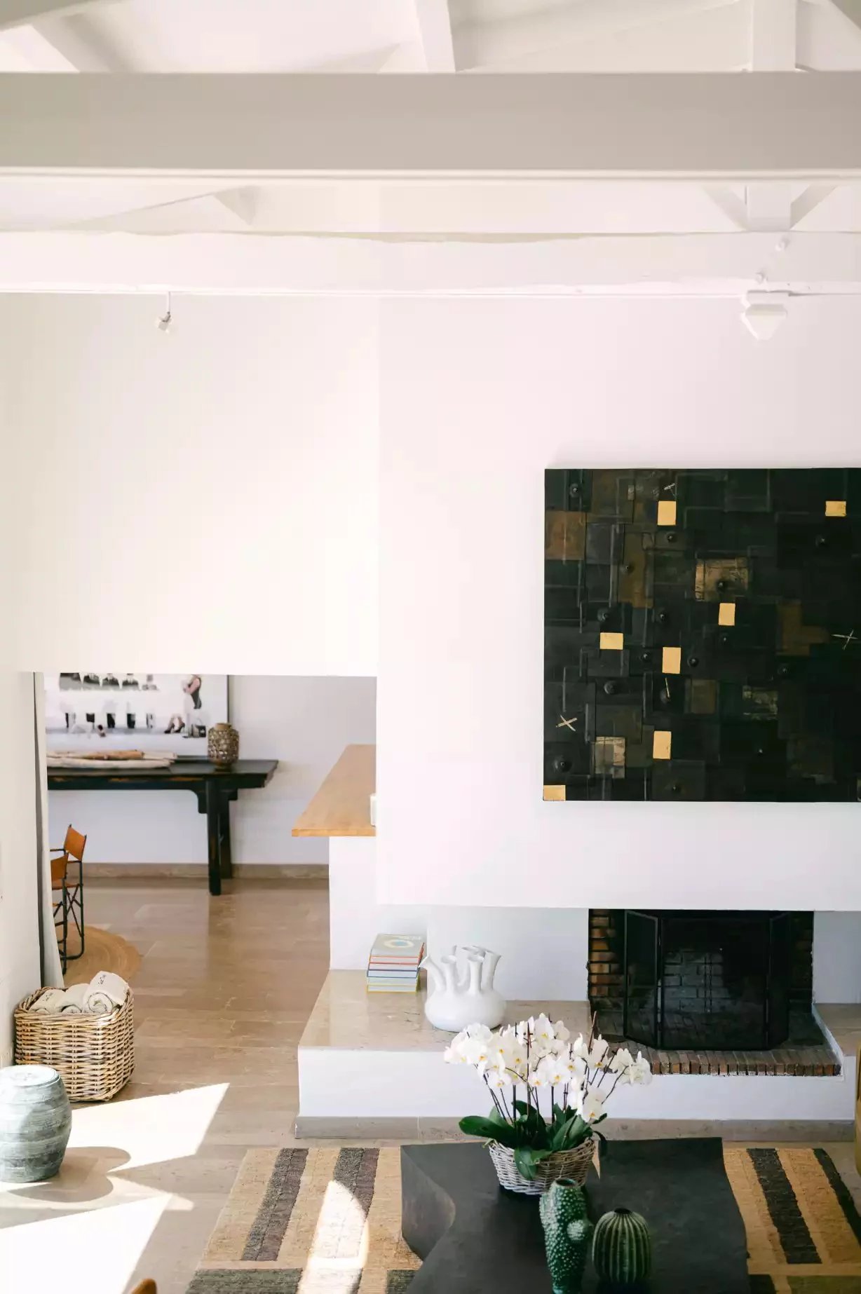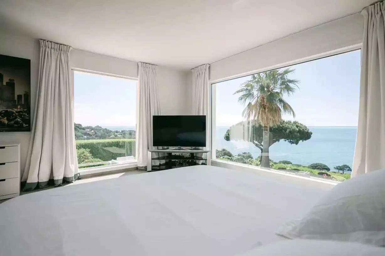 The villa is centred around common loft-style, open concept spaces featuring enormous windows overlooking the enchanting bay. The interior showcases contemporary designer furniture, modern art pieces, and retro elements like a 1950s-style projector and tarmac lamps.