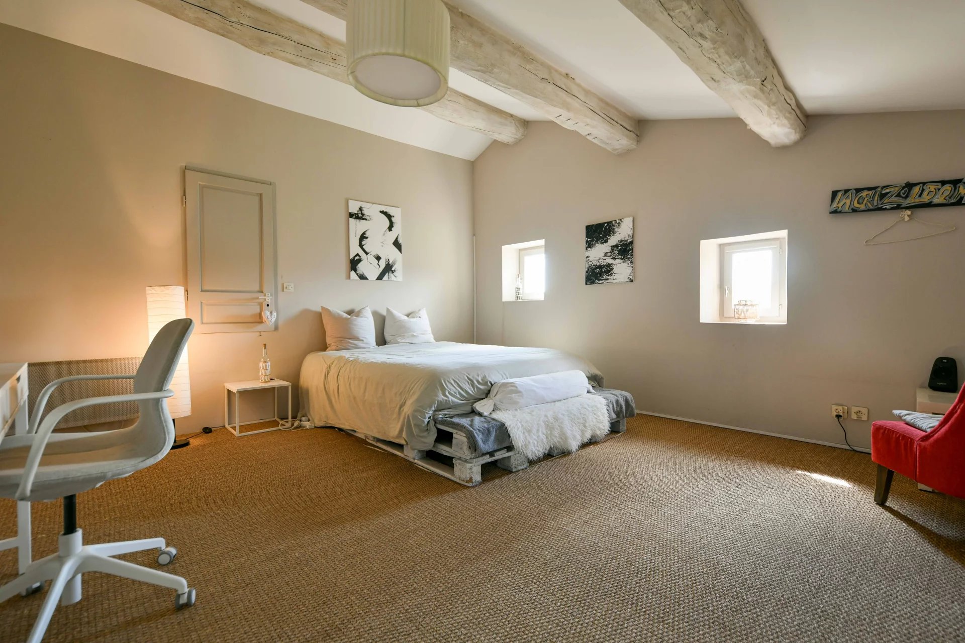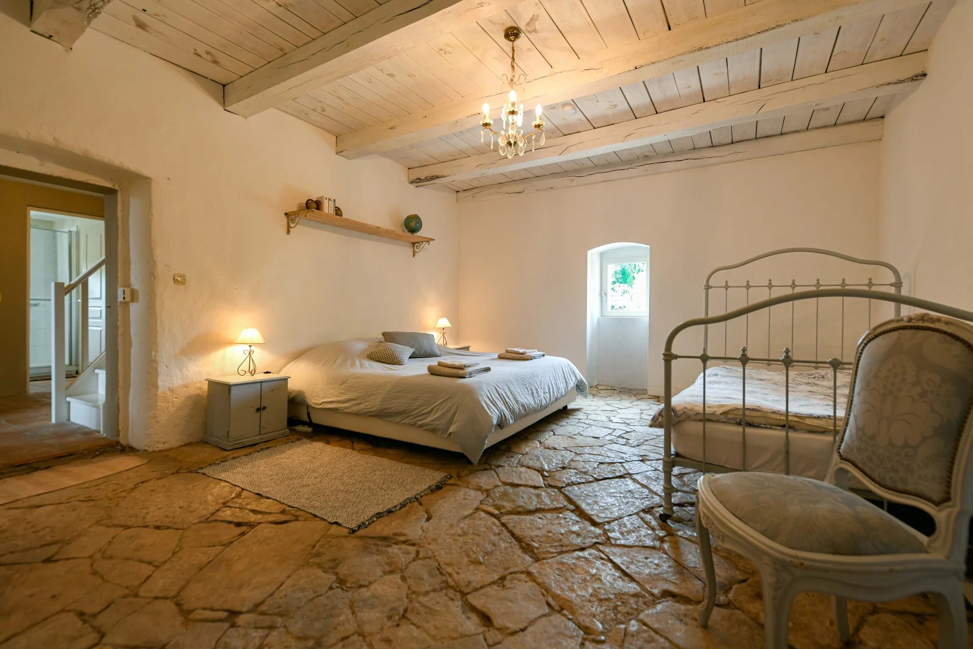 Elégante restauration, charme et authenticité 5 chambres, 2 salles de bains Bel ensemble de réception de 87 m² ouvert sur le jardin Jardin sans vis-à-vis avec piscine. Village authentique à 12km d’Uzès