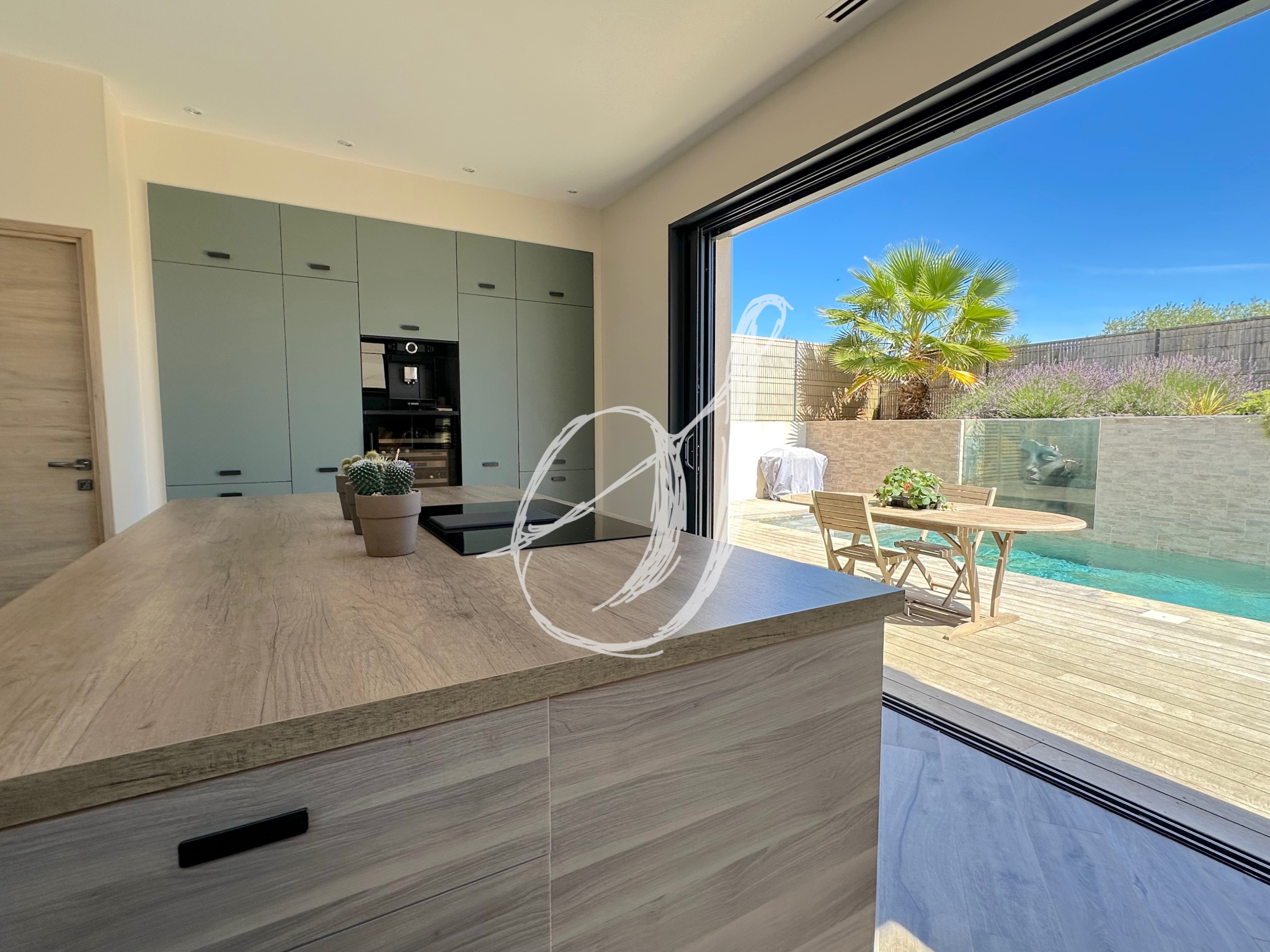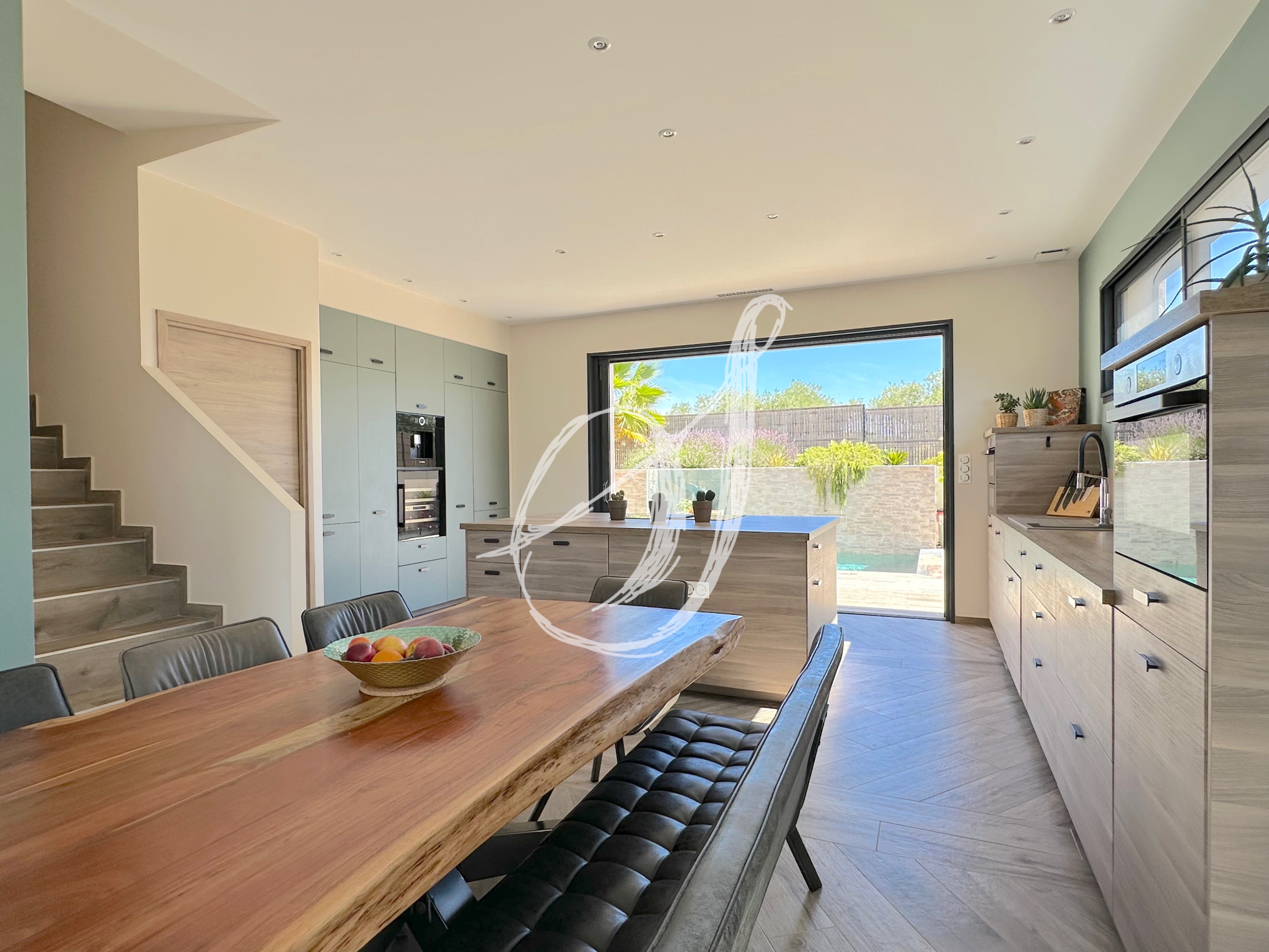 Dans un quartier résidentiel calme, en impasse, cette villa de standing de 2022 offre des prestations de qualité. Baigné de lumière & traversant, l'espace de vie de plus de 51 m2 donne accès par une large baie vitrée à galandage à une terrasse en bois exotique avec piscine. Au rez-de-chaussée, on retrouve également une chambre indépendante avec salle d'eau privative, une buanderie & des WC &. L'étage comprend quatre chambres, chacune avec un point d'eau privatif (salle de bains ou salle d'eau), un bureau & des WC. Climatisation réversible gainée sur l'ensemble du bien, cumulus thermodynamique (label RT 2012). Un garage de près de 18 m2 & 2 places de stationnement privatifs complètent le bien.