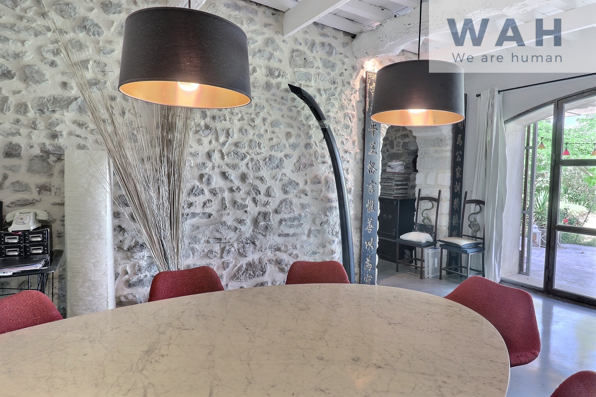 À seulement quelques minutes du centre-ville et du tram, dans un secteur recherché du nord de Montpellier, ce mas en pierre du XIXe siècle a été entièrement rénové avec goût sur un terrain clos et arboré d'environ 3000 m2.