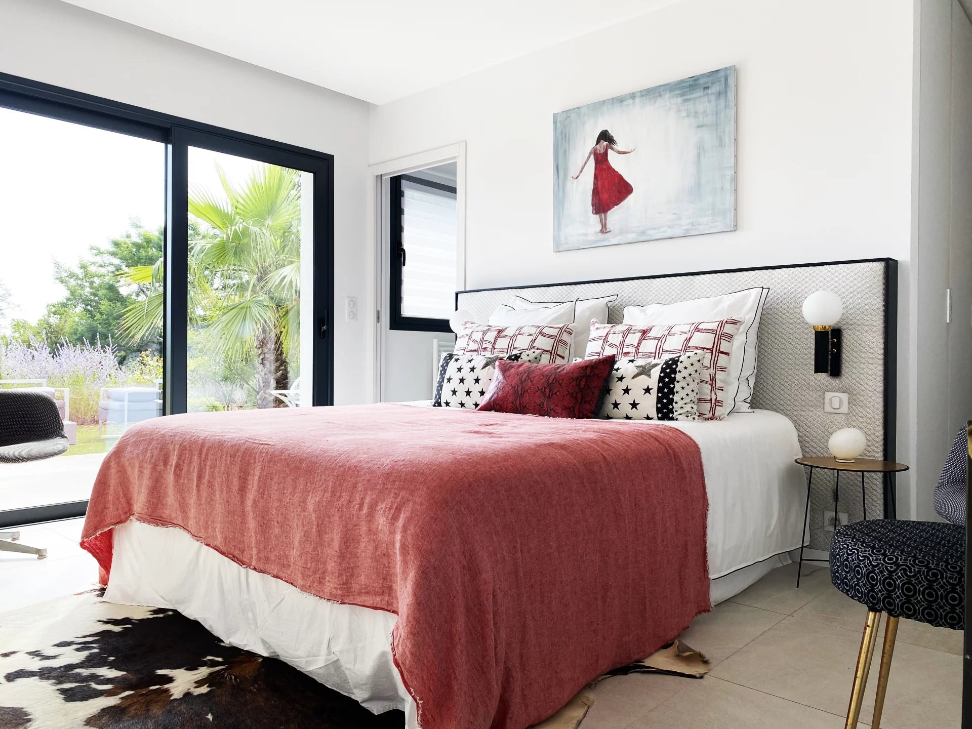 Nichée au cœur du maquis corse, à seulement quelques pas de la majestueuse baie de Pinarello, cette propriété d’exception s’impose comme un véritable refuge confidentiel où la mer, omniprésente, compose un décor rare et envoûtant. Un lieu où le luxe s’exprime dans la discrétion, l’authenticité et la beauté intacte du paysage. Imaginée par un architecte de renom, la villa déploie environ 200 m² de lignes contemporaines sur deux niveaux. Dès l’entrée, la pièce de vie séduit par son volume spectaculaire et ses larges ouvertures qui effacent les frontières entre intérieur et extérieur. Inondés de lumière, salon, salle à manger et cuisine design — aux finitions haut de gamme — offrent un cadre de réception élégant, tourné vers la mer et la nature. La demeure dispose de cinq suites luxueuses, chacune dotée de sa propre salle d’eau, garantissant une intimité totale et un confort absolu pour les hôtes comme pour les résidents. Édifiée sur un parc paysager d’environ 3 500 m², la propriété dévoile un espace piscine d’une rare beauté, véritable havre de détente prolongé par une cuisine d’été entièrement équipée. Un environnement privilégié, propice aux instants de convivialité comme aux moments de quiétude absolue. Située au sein d’une zone strictement non constructible, la villa jouit d’une tranquillité incomparable et d’une absence totale de vis-à-vis. Une adresse exclusive, parfaitement intégrée dans son écrin naturel, où l’harmonie entre architecture et paysage atteint son point d’équilibre idéal.