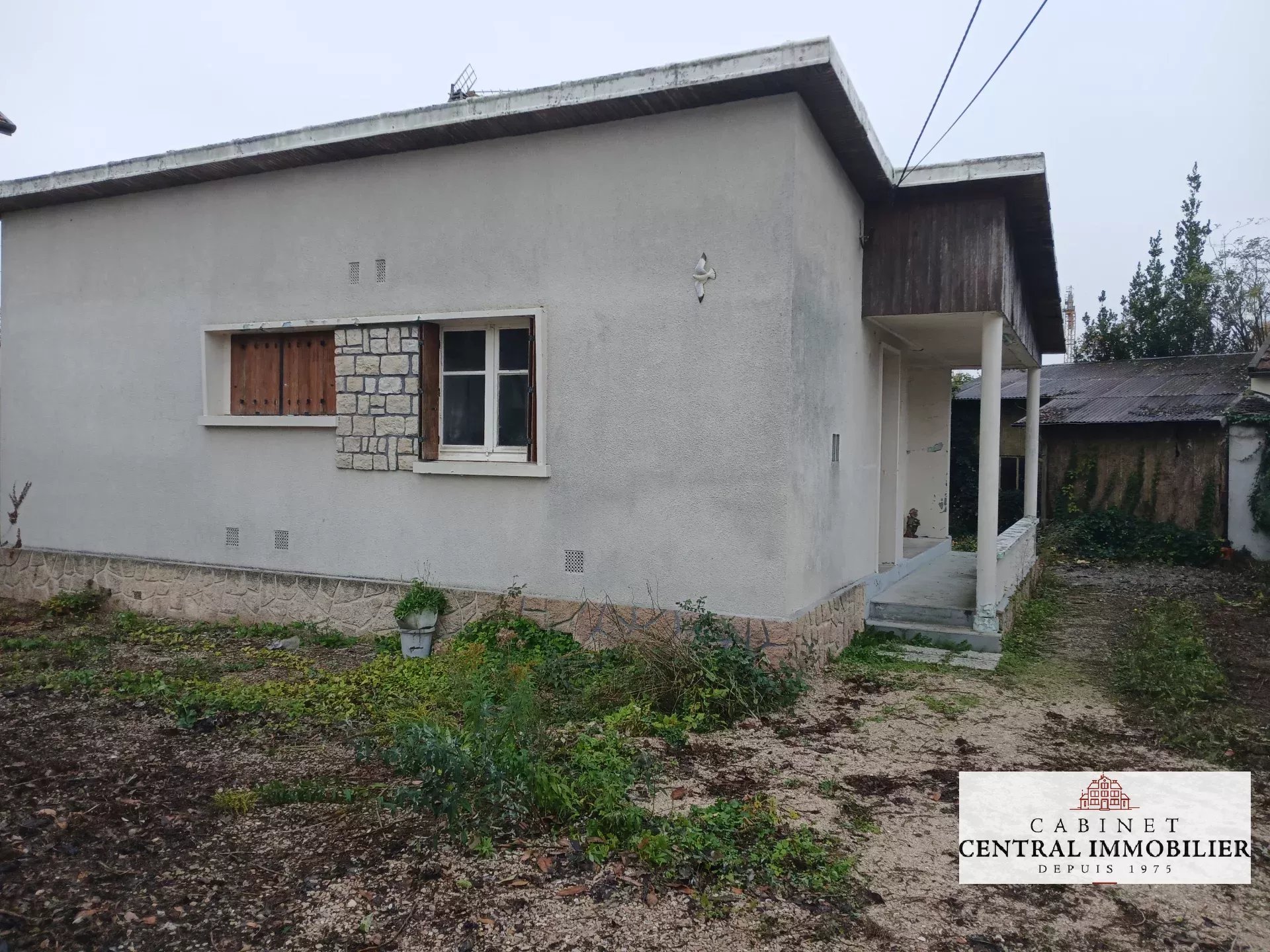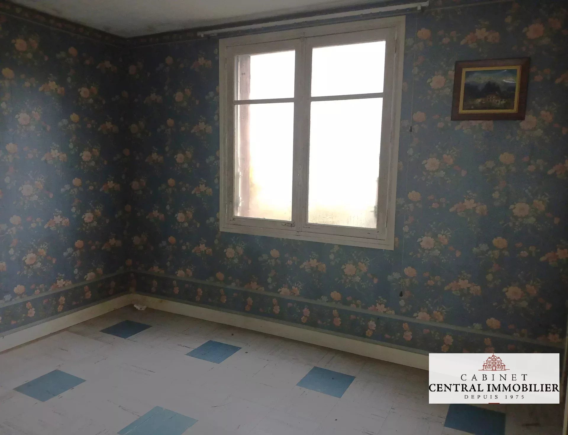 Pavillon de plain pied comprenant : entrée carrelée avec poêle à fuel, cuisine de 8m² carrelée aménagée et cellier, séjour salon de 17.65m² carrelé avec porte fenêtre, salle d'eau carrelée, wc carrelé, 2 chambres de 11.75m² et 13.45m² dont une avec 2 grands placards. Simple vitrage. Volets persiennes. Remise. Dépendance à usage d'atelier. Terrain clos de 544m².