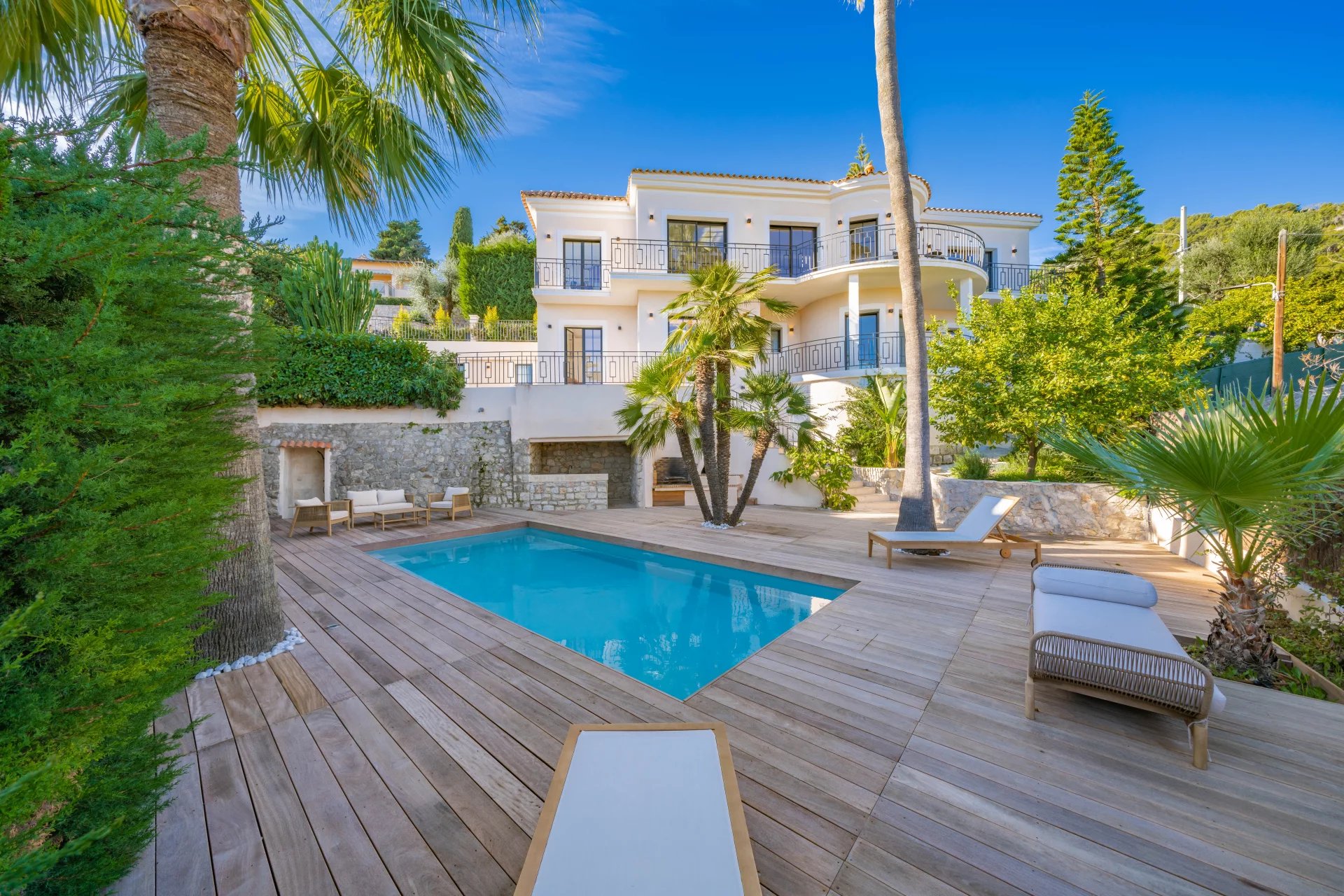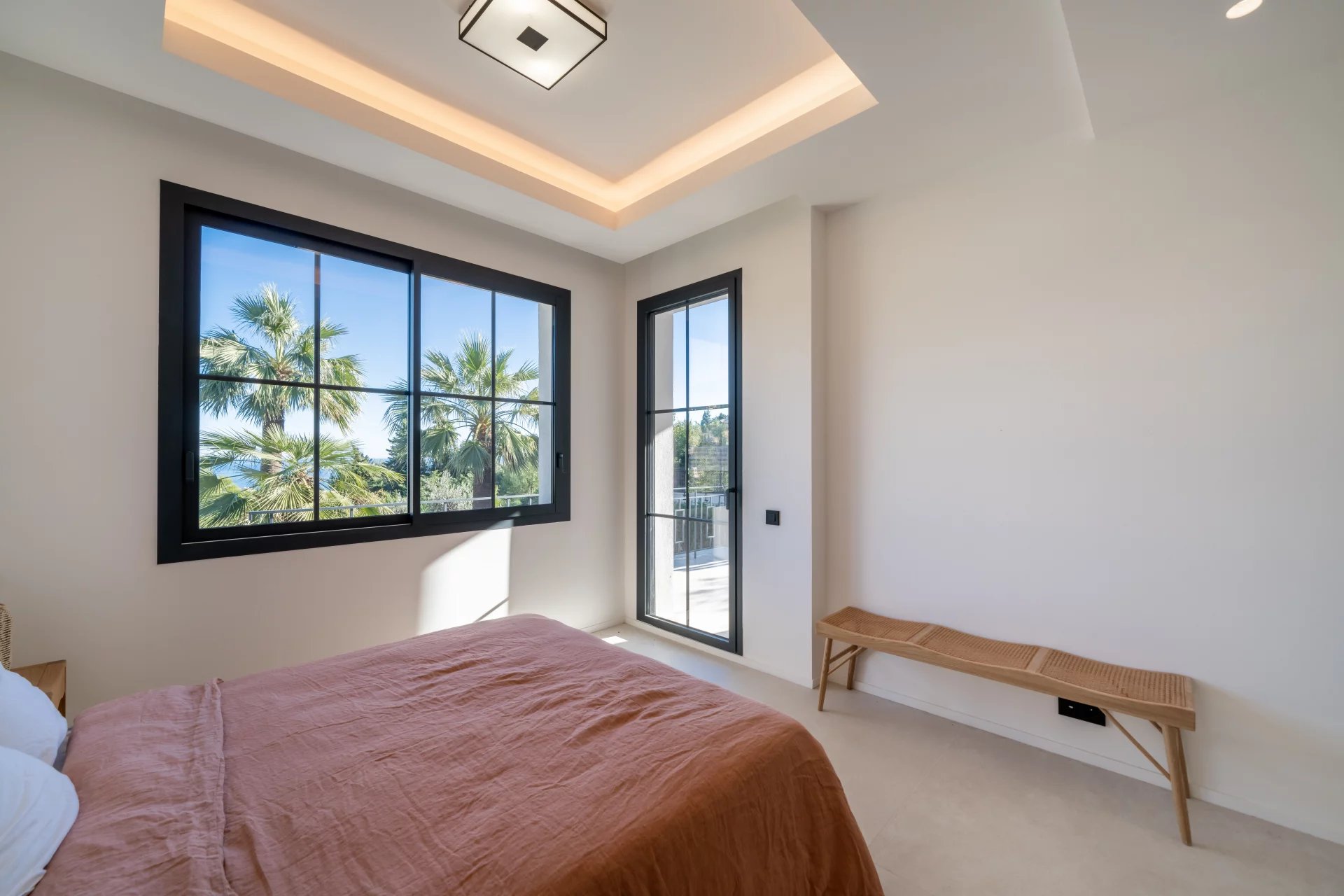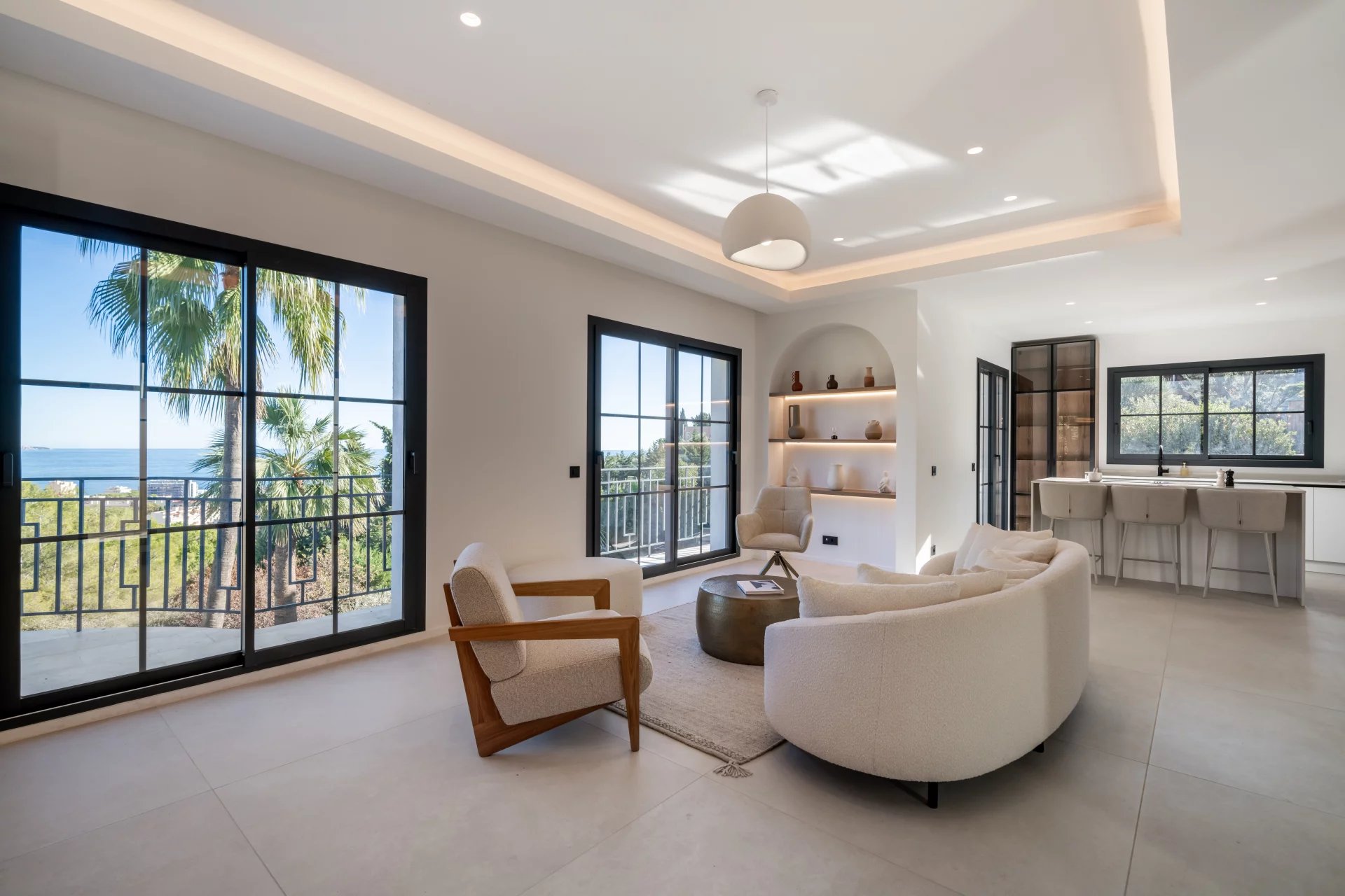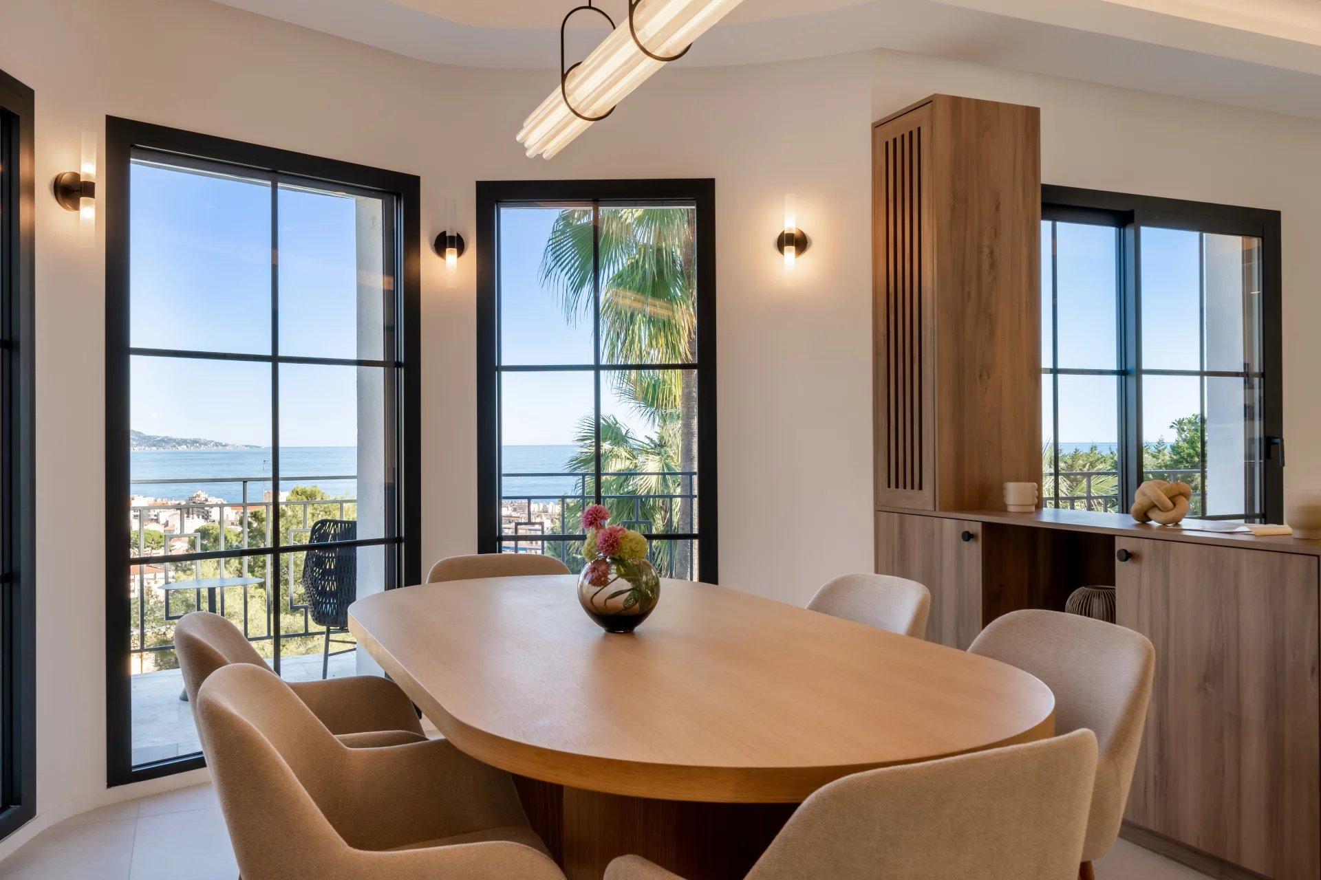 Dans un secteur résidentiel recherché, cette villa de 240 m² entièrement rénovée allie design contemporain, prestations haut de gamme et vue mer à couper le souffle. La villa s’ouvre sur une grande pièce de vie baignée de lumière, comprenant un séjour et une cuisine américaine, prolongés par de baies vitrées donnant sur la terrasse et le panorama sur la mer. Elle dispose de quatre chambres en suite, dont une au rez-de-chaussée pour un confort optimal. La suite principale, située à l’étage inférieur, offre un grand dressing et une salle de bains privative avec baignoire et double douche. Chaque chambre bénéficie également d’un dressing et d’une salle de bains privative. Un appartement indépendant offre flexibilité et intimité, idéal pour les invités, ou pour aménager une salle de sport privée, ou encore une cinquième suite. La villa est équipée de domotique avancée, climatisation réversible et système de surveillance, assurant un confort et une sécurité optimaux. Le jardin paysager abrite une piscine avec pool house, une cuisine d’été et un espace barbecue. Un garage fermé et la possibilité de créer des places de parking supplémentaires complètent ce bien rare. Cette propriété unique conjugue calme absolu, proximité immédiate de Monaco et accès direct aux plages, offrant un style de vie raffiné sur la Côte d’Azur.