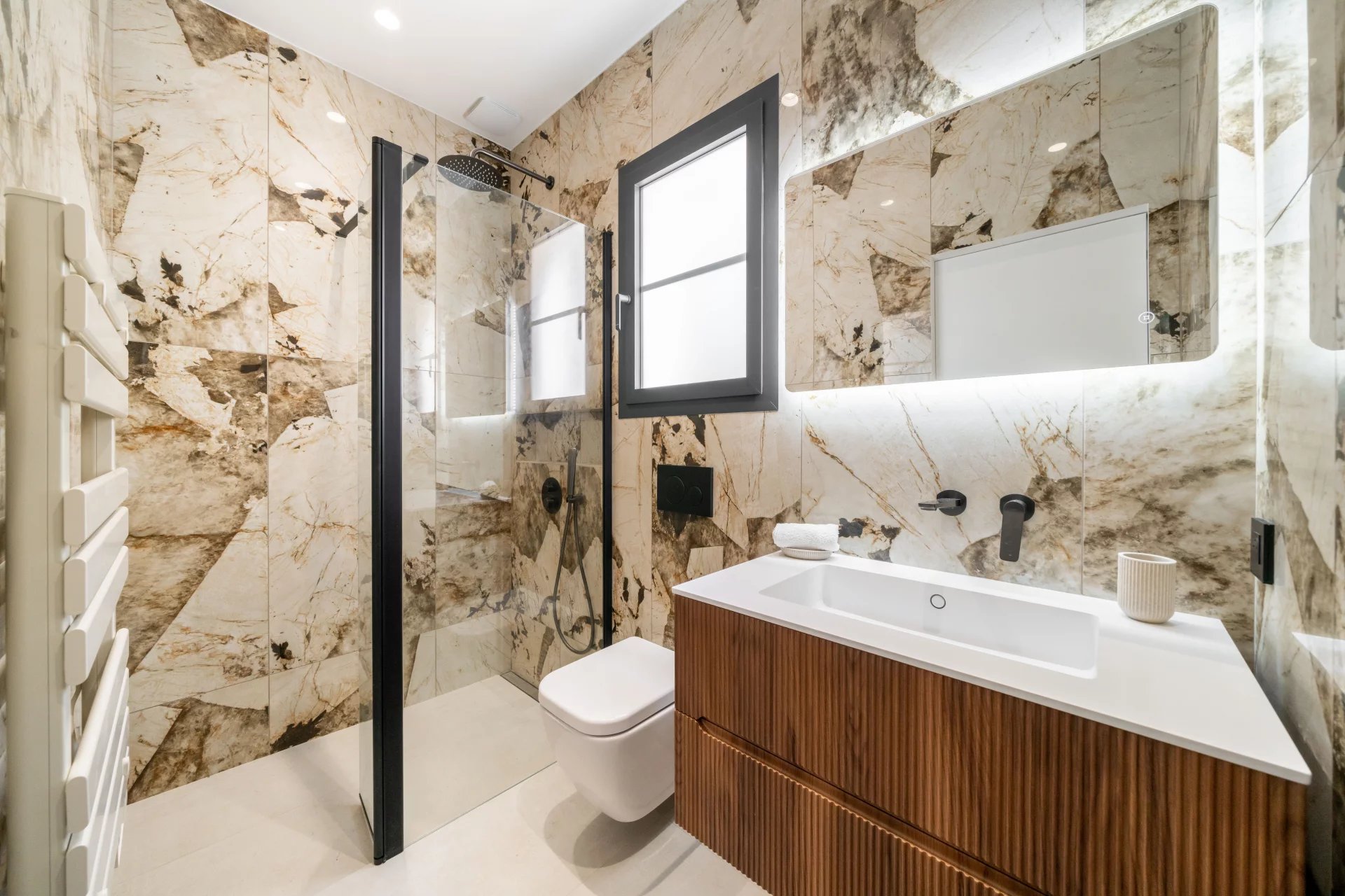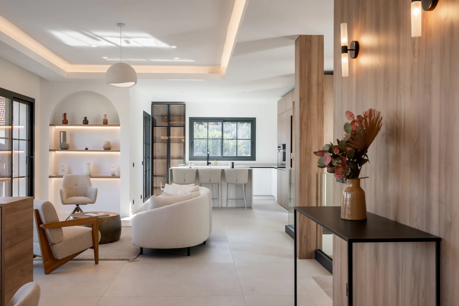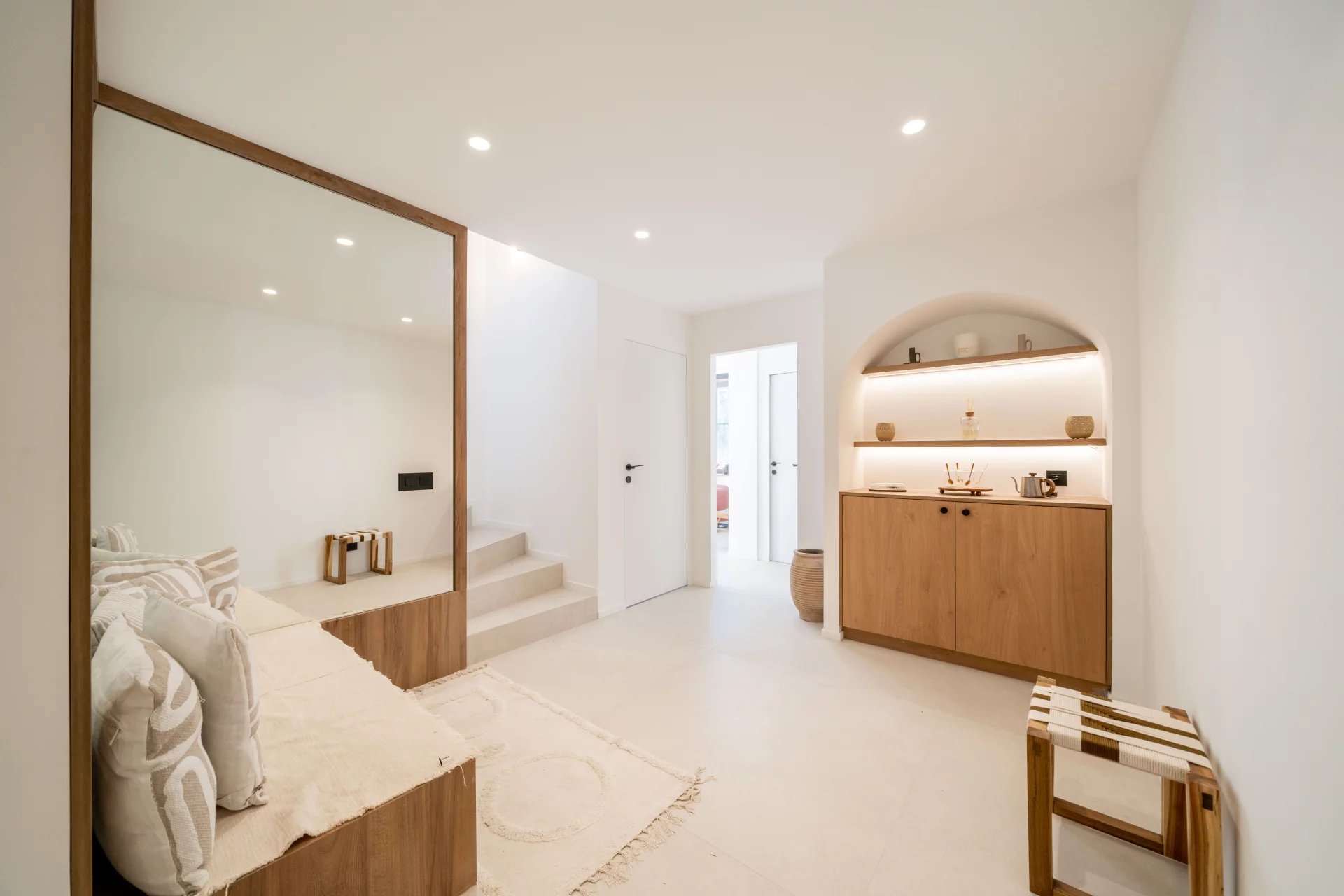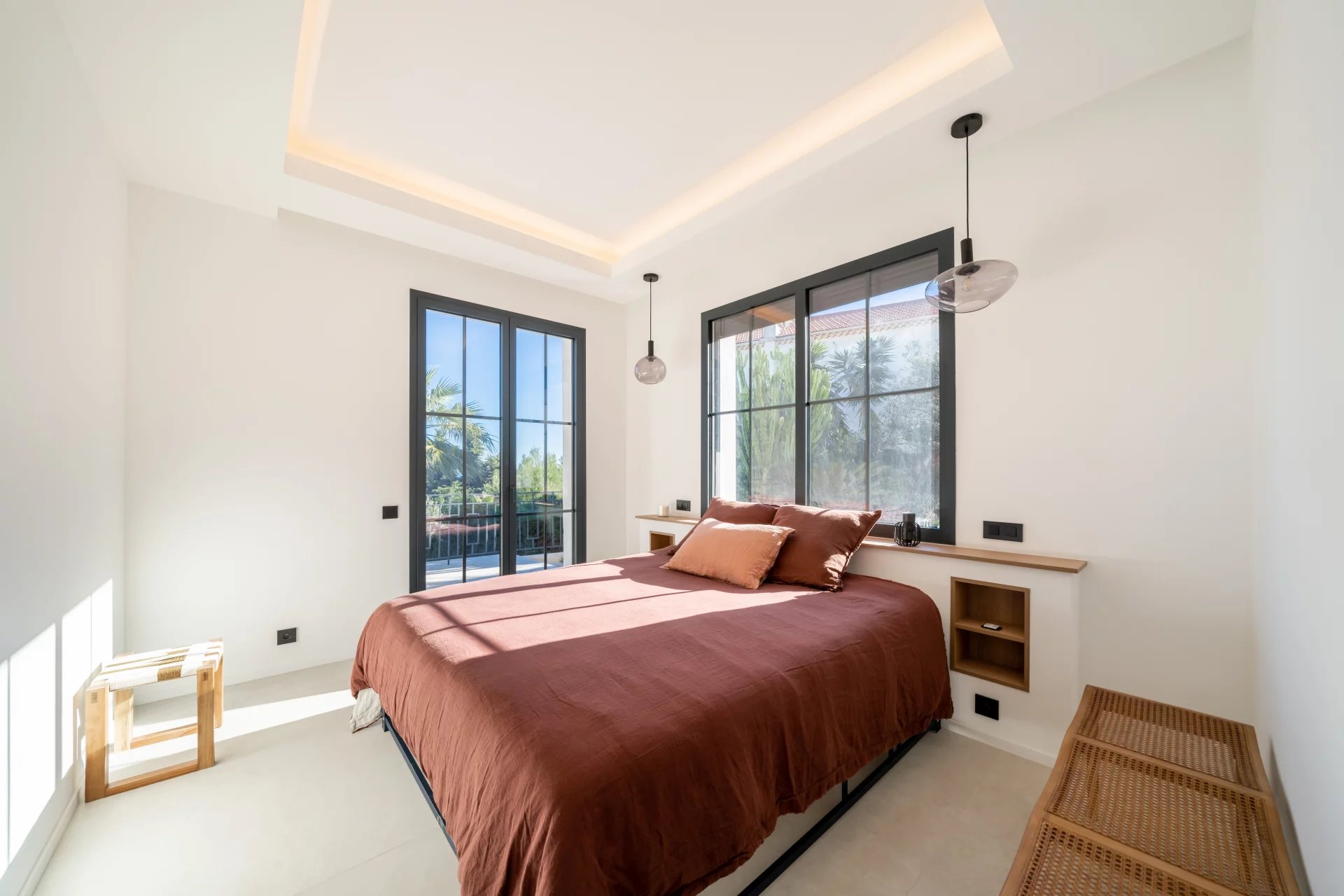 Dans un secteur résidentiel recherché, cette villa de 240 m² entièrement rénovée allie design contemporain, prestations haut de gamme et vue mer à couper le souffle. La villa s’ouvre sur une grande pièce de vie baignée de lumière, comprenant un séjour et une cuisine américaine, prolongés par de baies vitrées donnant sur la terrasse et le panorama sur la mer. Elle dispose de quatre chambres en suite, dont une au rez-de-chaussée pour un confort optimal. La suite principale, située à l’étage inférieur, offre un grand dressing et une salle de bains privative avec baignoire et double douche. Chaque chambre bénéficie également d’un dressing et d’une salle de bains privative. Un appartement indépendant offre flexibilité et intimité, idéal pour les invités, ou pour aménager une salle de sport privée, ou encore une cinquième suite. La villa est équipée de domotique avancée, climatisation réversible et système de surveillance, assurant un confort et une sécurité optimaux. Le jardin paysager abrite une piscine avec pool house, une cuisine d’été et un espace barbecue. Un garage fermé et la possibilité de créer des places de parking supplémentaires complètent ce bien rare. Cette propriété unique conjugue calme absolu, proximité immédiate de Monaco et accès direct aux plages, offrant un style de vie raffiné sur la Côte d’Azur.