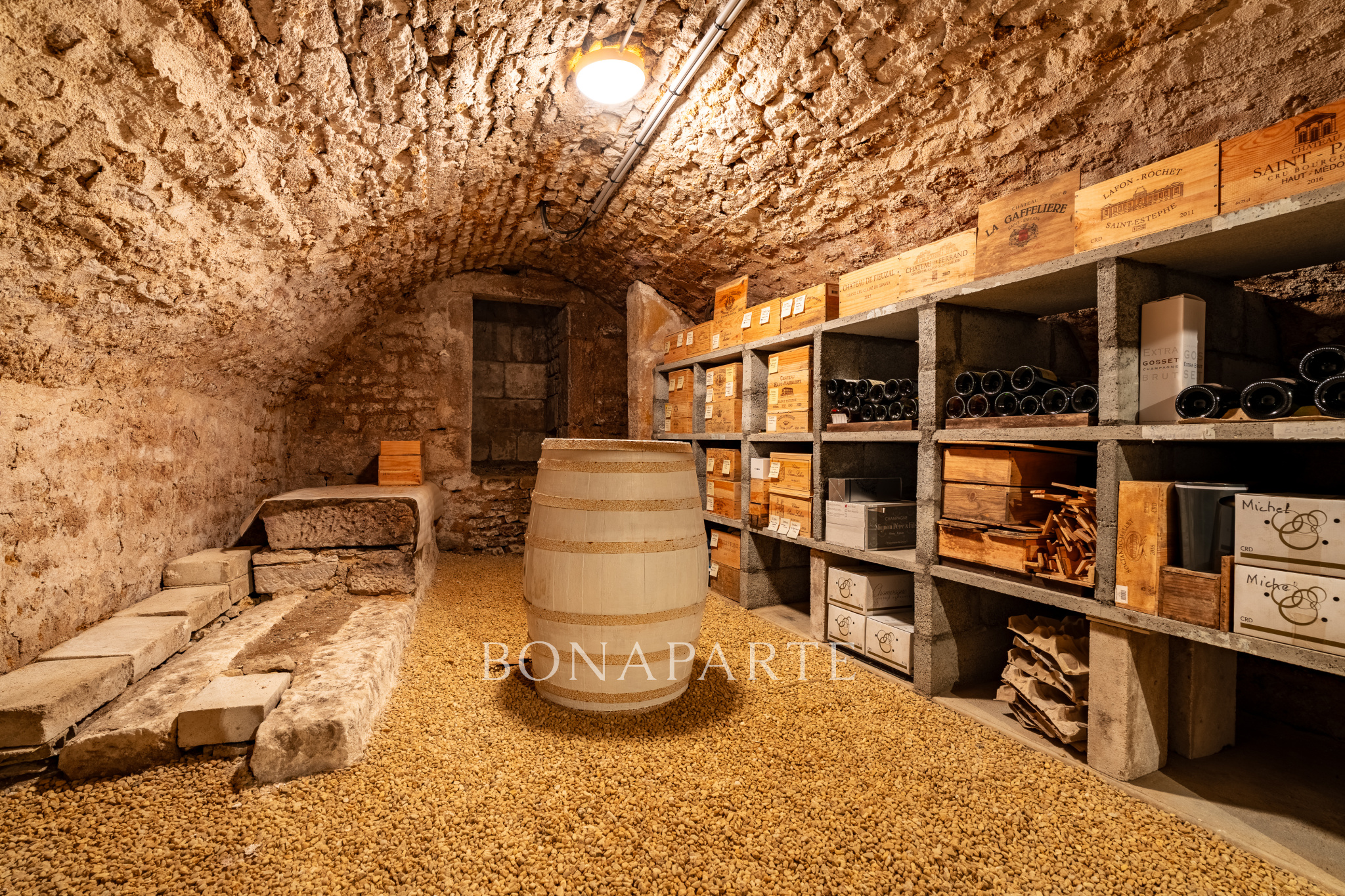La demeure offre de beaux volumes répartis sur trois niveaux :Au rez-de-chaussée, hall d'entrée, cuisine équipée d'un piano Lacanche, salon, cellier, toilettes, chambre en suite avec accès indépendant.