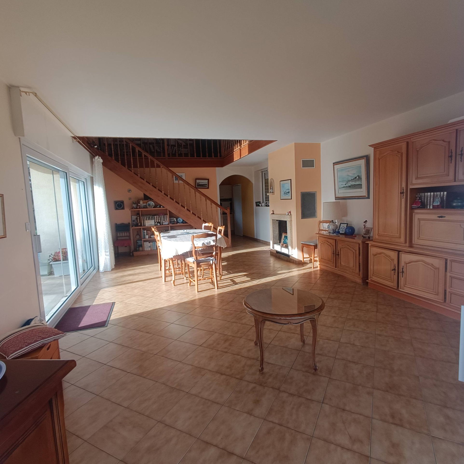 -Sa vaste pièce de vie baignée de lumière grâce à ses grandes baies vitrées, donnant sur une terrasse agréable.
