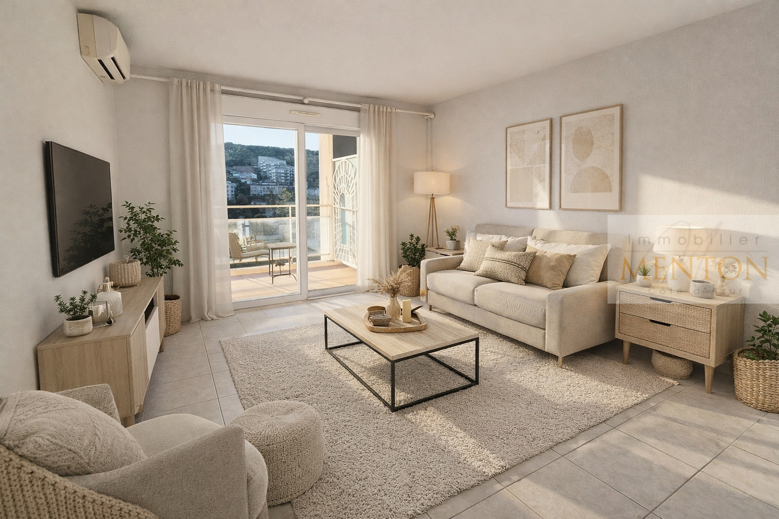 Menton, début route de Gorbio,proche de carnoles, Roquebrune cap Martin, dans un bel immeuble récent, 2002, ce beau 2 pièces bénéficie d 'une terrasse de 13m2.