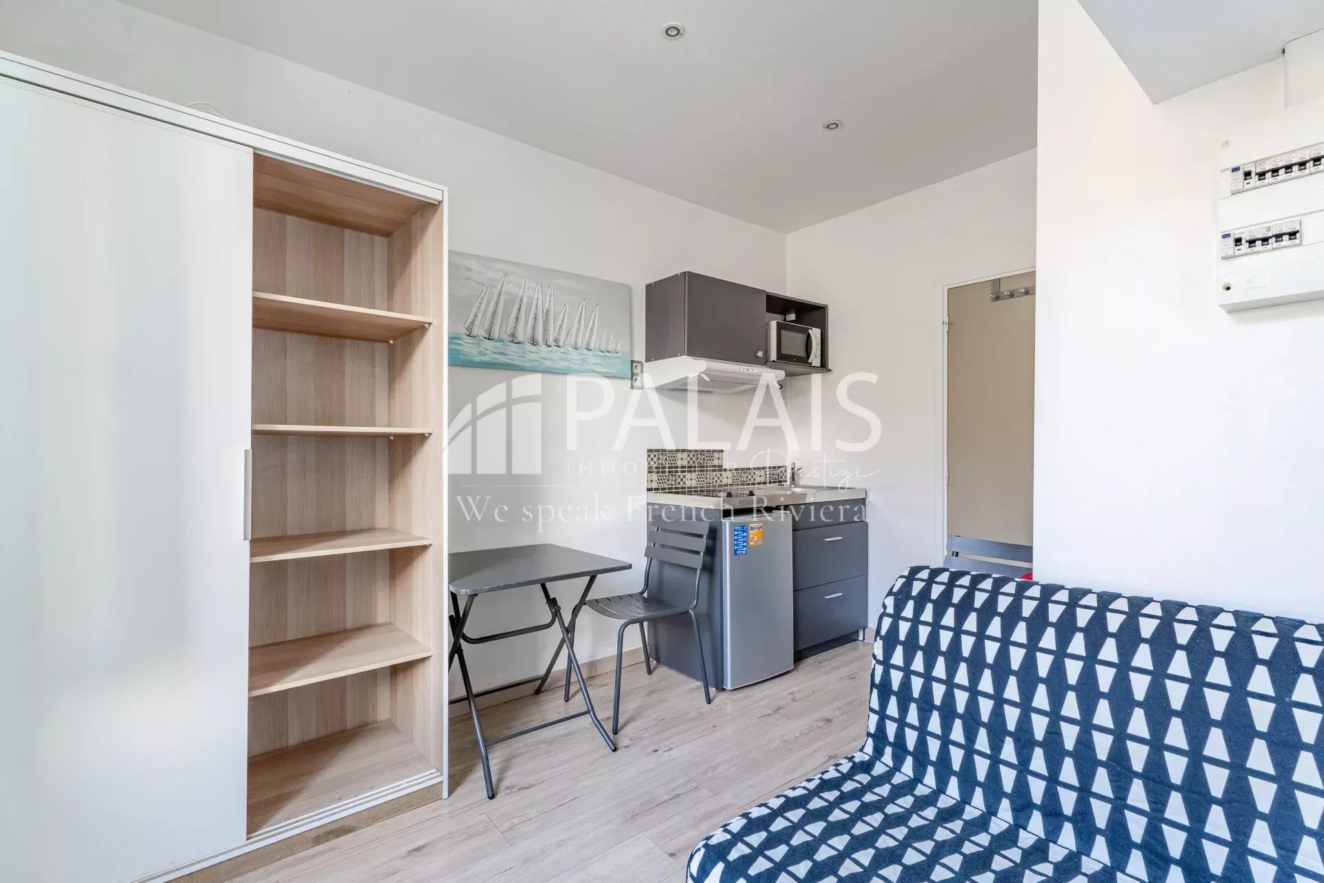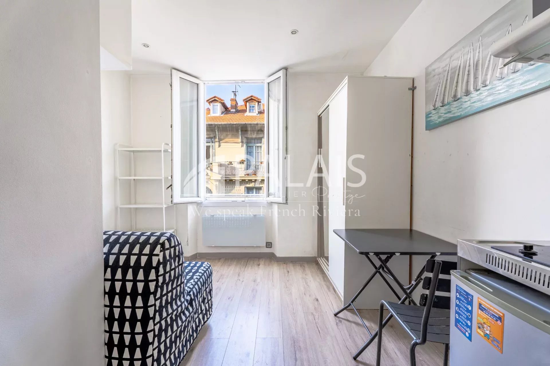 Rue Gioffredo, emplacement de premier ordre, à deux pas de la Place Masséna. Dans immeuble niçois, au 4ème étage sans ascenseur, studio fonctionnel en bon état, double vitrage, proche commodités, commerces et mer. Idéal investissement locatif. Bien soumis à la copropriété : XX lots. Charges courantes annuelles 276 Euros. Pas de procédure en cours. Honoraires charge vendeur.