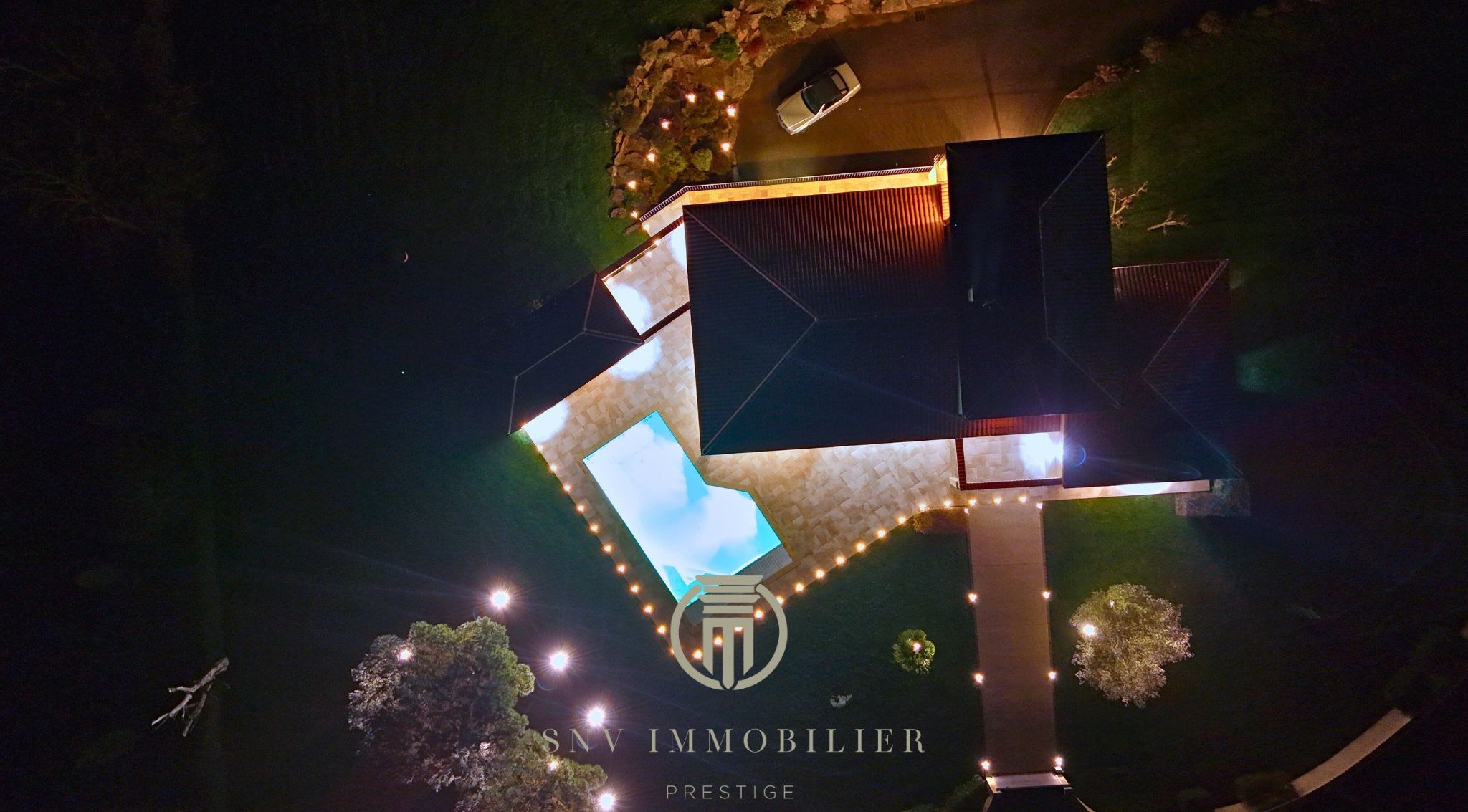 Cette propriété d'inspiration provençale moderne déploie trois niveaux desservis, par un ascenseur, tous conformes aux normes PMR, offrant des volumes généreux et une architecture soignée au sein d'un écrin de verdure de plus de 4 hectares avec étang et prestations haut de gamme. Les pièces de vie du niveau principal sont déplafonnées, révélant une élégante charpente apparente en sapin massif, apportant cachet et luminosité.