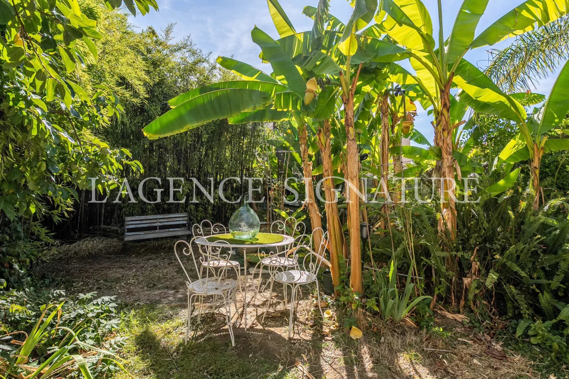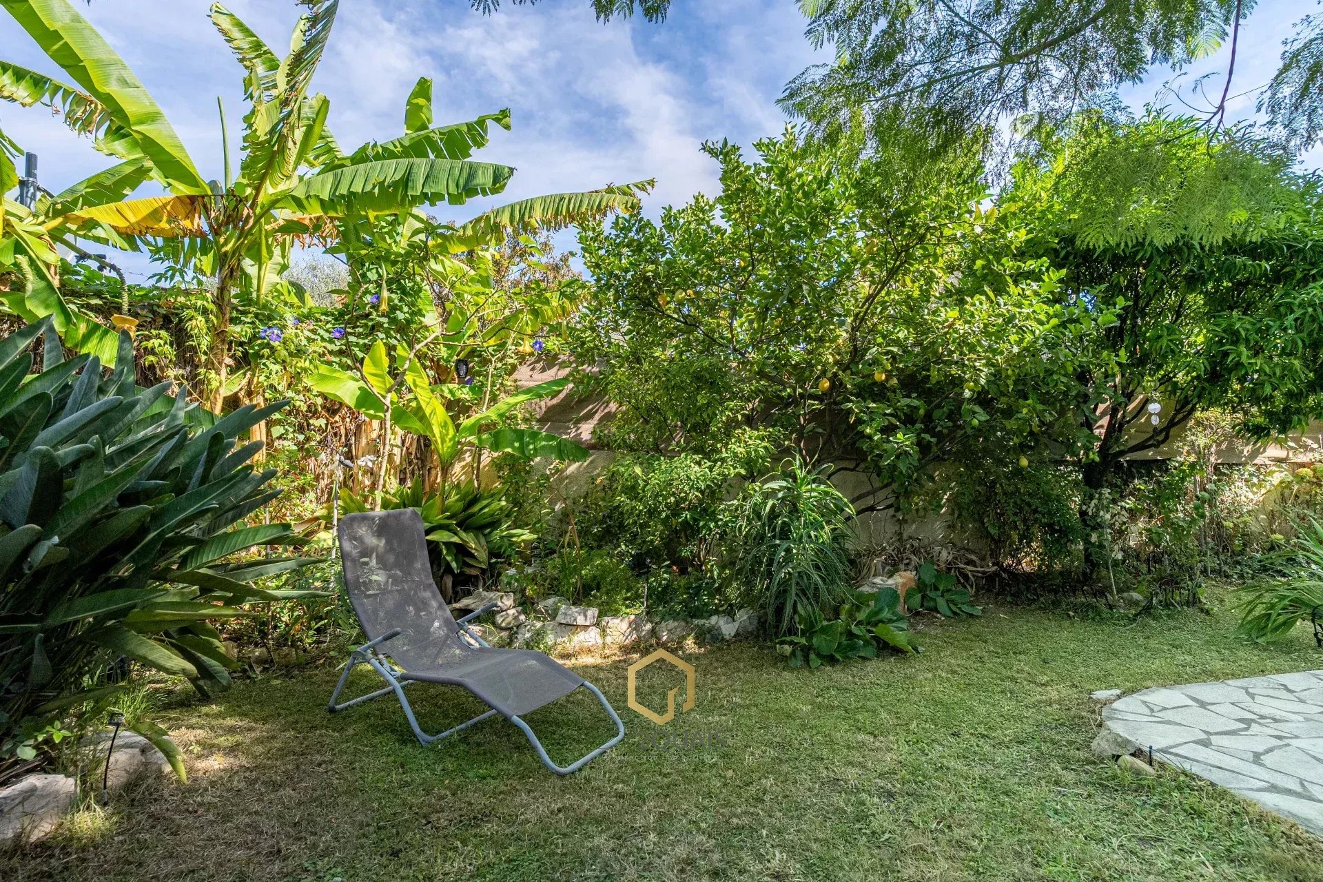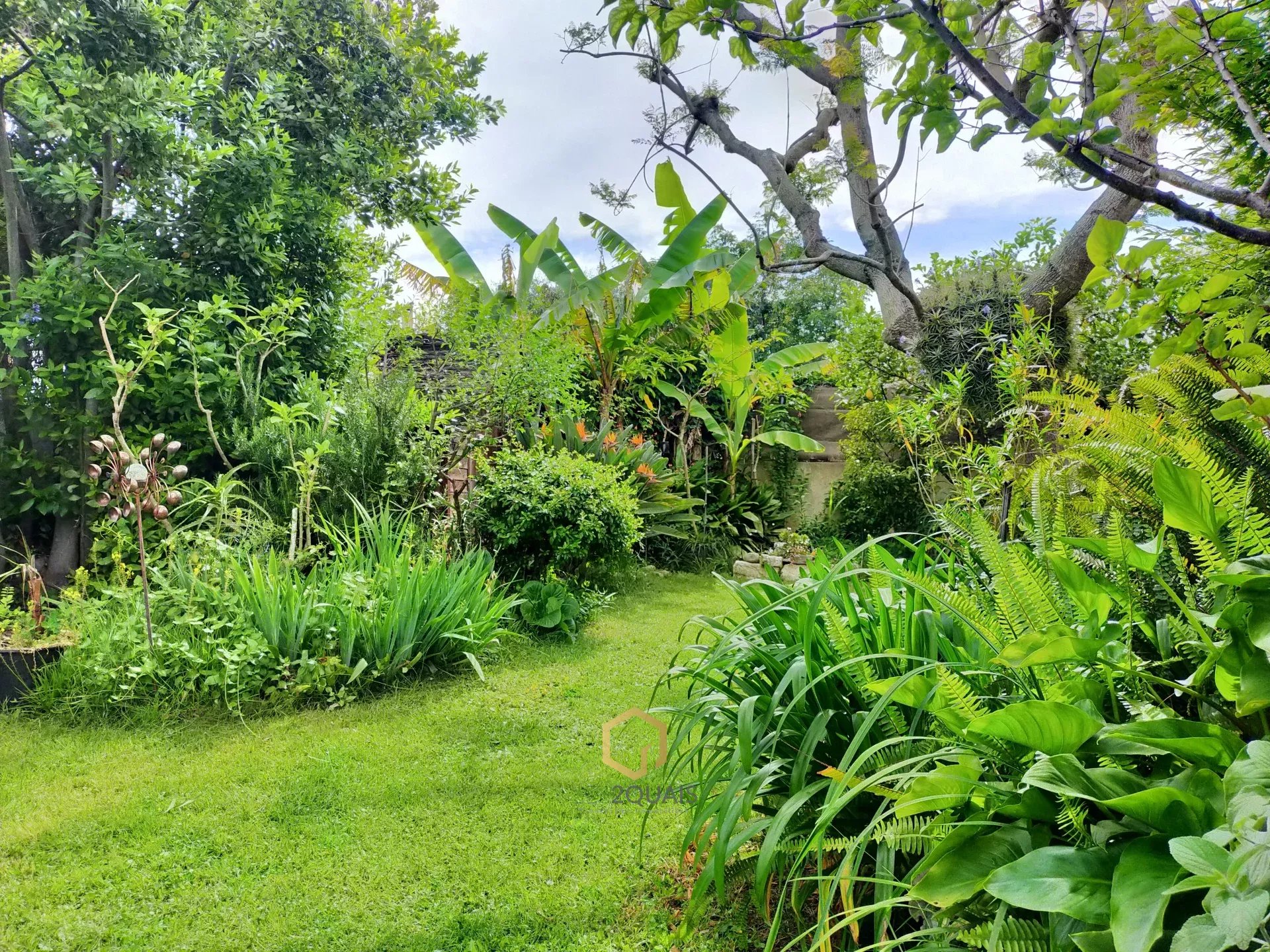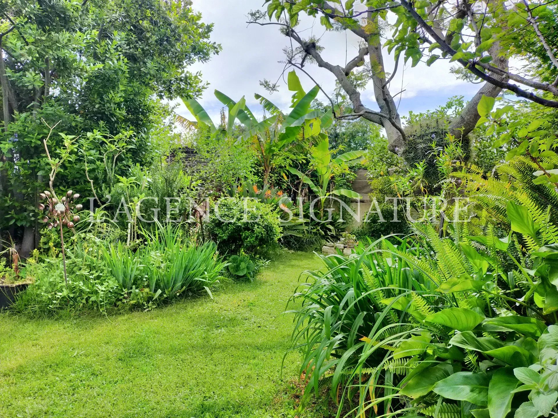 Elle se compose au rez-de-chaussée d’une entrée avec placards, d’une salle d’eau avec WC, d’un séjour et d’une grande cuisine aménagée et équipée, le tout ouvrant sur une spacieuse terrasse et un jardin à l’ambiance tropicale, parfaits pour recevoir famille et amis.