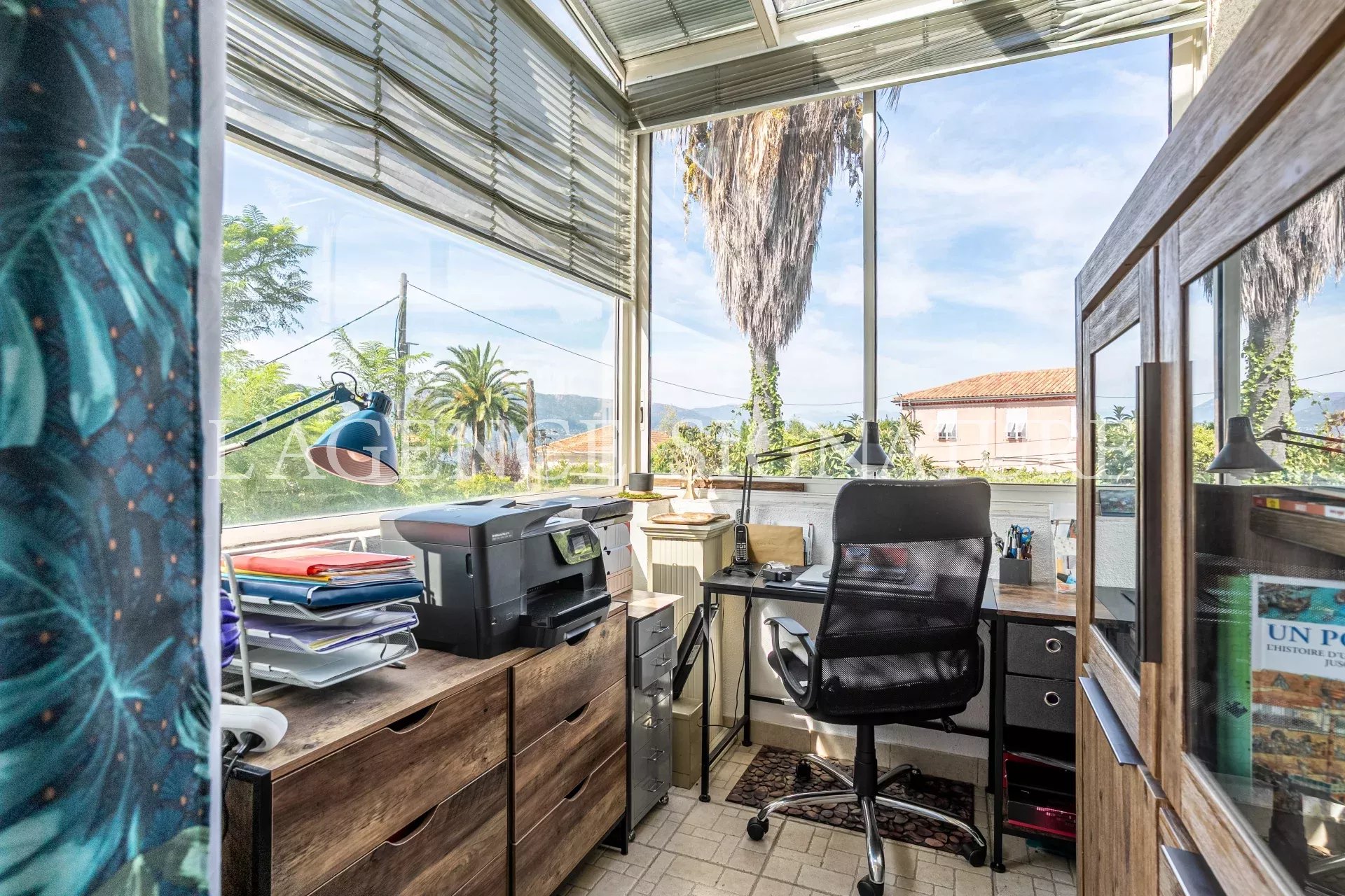 À l’étage, accessible par des escaliers intérieurs et extérieurs, vous trouverez deux chambres spacieuses et lumineuses avec des placards hauts et profonds, ainsi qu’une troisième chambre agrémentée d’une véranda offrant une jolie vue sur les montagnes, idéale pour un coin bureau bucolique.