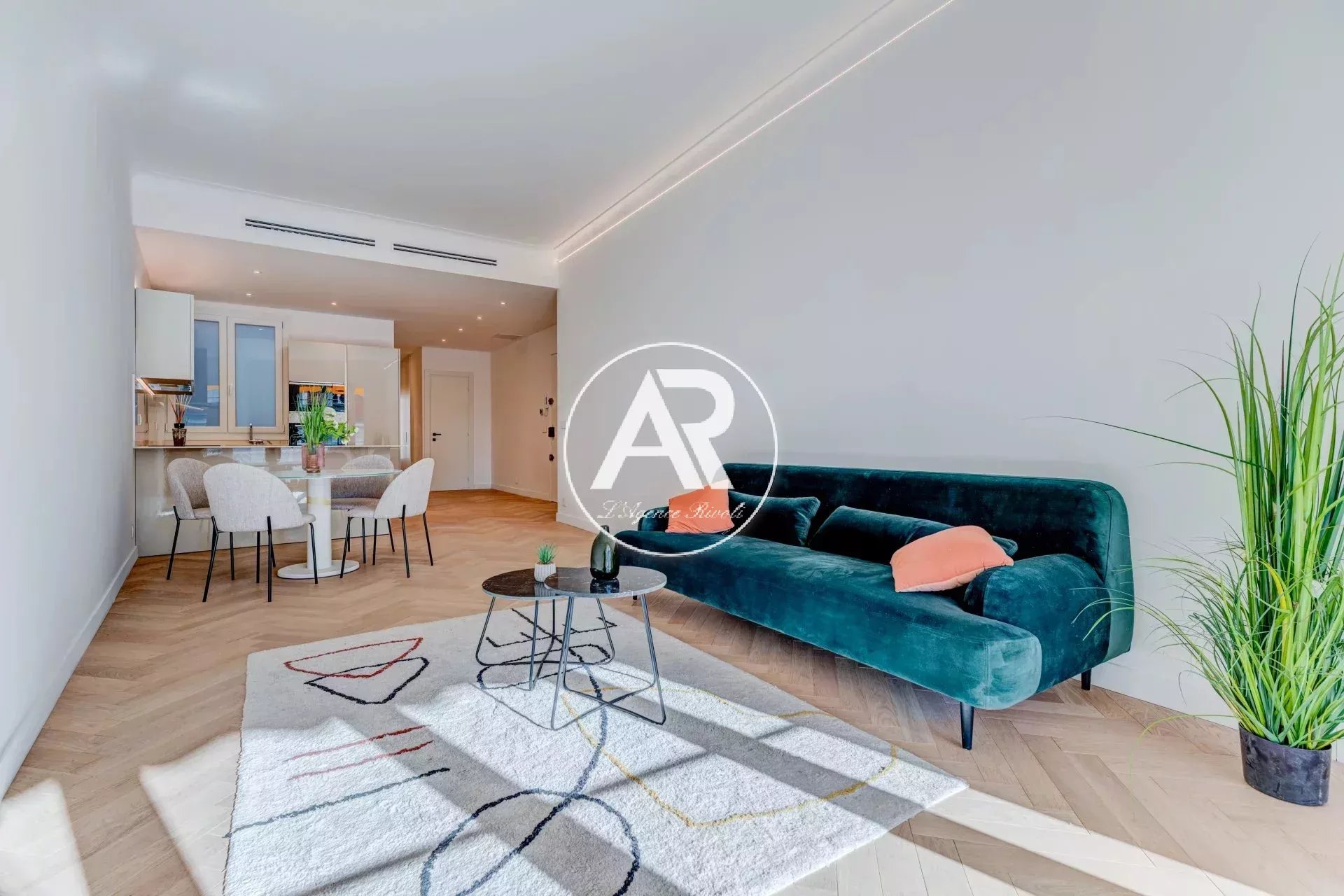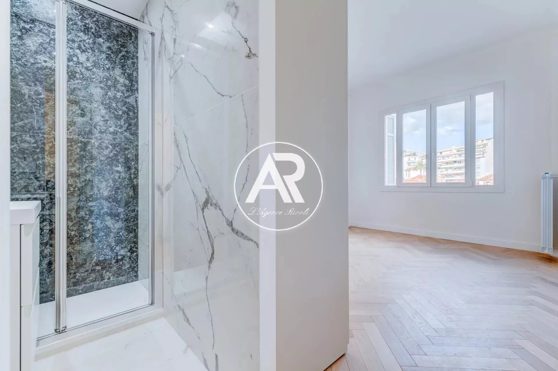 Al penultimo piano di una residenza di prestigio con portineria, questo appartamento attraversante di 83 m² offre comfort di alto livello: aria condizionata canalizzata reversibile, doppi vetri, tapparelle elettriche, porta blindata, impianti elettrici e idraulici nuovi.