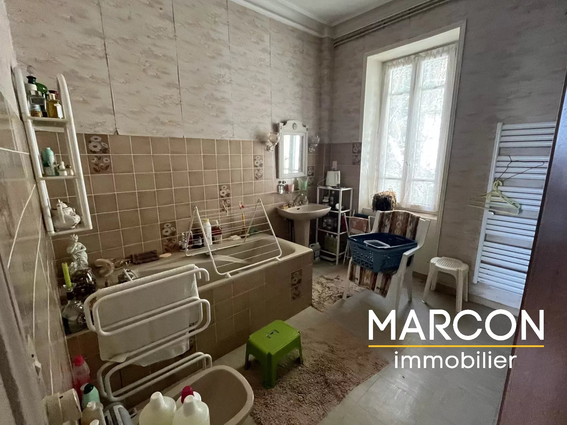 MARCON IMMOBILIER - CREUSE EN LIMOUSIN - SECTEUR AUBUSSON. Réf:89215. Grande maison comprenant en rez-de-chaussée: entrée, cuisine, salon (insert), salle à manger (cheminée marbre), une chambre, dégagement, wc.1er étage: palier, 3 chambres, bureau, salle de bains, salle d'eau-wc. 2ème étage: palier, 4 chambres, salle de bains, wc. Rez-de-rue: un appartement de 4 pièces à rénover. Chauffage électrique par accumulateurs et par convecteurs au rez-de-chaussée et 1er étage. Garage. Remises. Caves. Jardin en terrasses avec partie boisée. Le tout sur 1342 m² de terrain. Prix: 130 800 euros (honoraires agence inclus de 9 % à la charge de l'acquéreur). Réseau de 3 agences en CREUSE : AUBUSSON-GUERET-LA SOUTERRAINE.