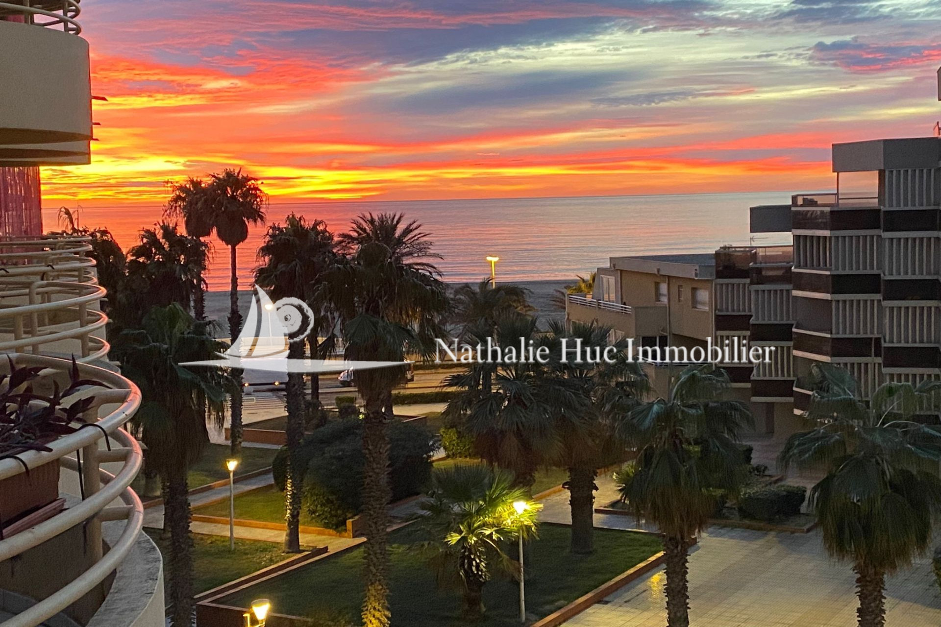 66140 - CANET PLAGE, dans le quartier Sud au 4ème étage avec ascenseur, un appartement traversant de type T3, composé d'une entrée, une salle d'eau, wc, un salon/séjour, une cuisine équipée ouverte, deux chambres avec placard. Parking aérien privé, terrasse plein sud vue mer de 13 m² salle à manger, cave en sous-sol. Vendu équipé. Excellent état.