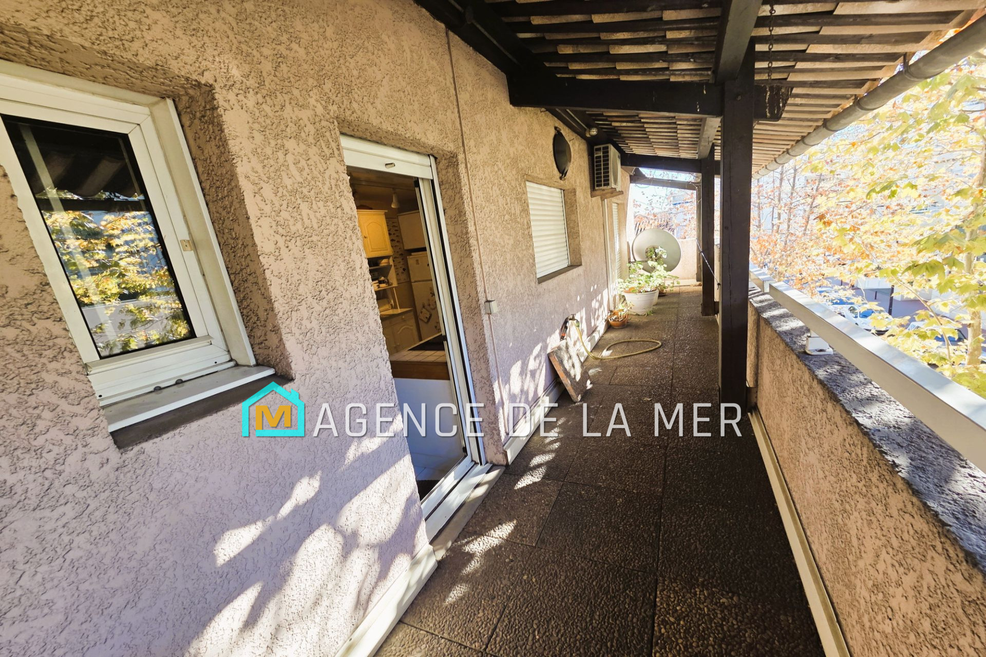 Entrée avec de nombreux rangements, grand séjour salle à manger lumineux (27.80m²) plafonds très hauts (+ de 4m), accès sur terrasse 10m² vue port Vauban, wc séparé, sur l'arrière de l'appartement, grande cuisine indépendante équipée avec buanderie / cellier et accès balcon 14m²
