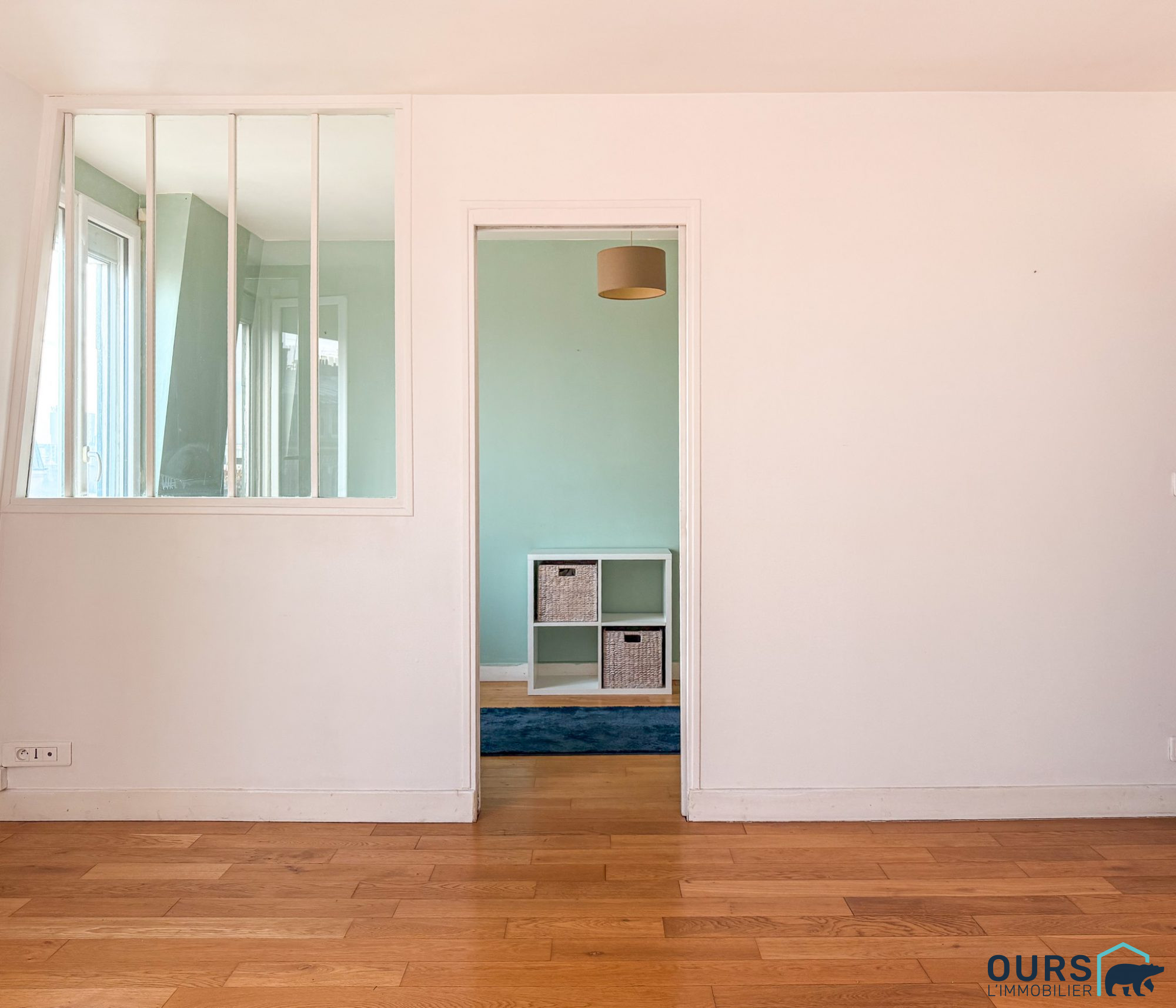 Situé à SAINT-OUEN, à 2 pas du Marché aux Puces, au dernier étage d'un bel immeuble construit en 1905. En très bon état intérieur, ce confortable cocon se compose d'une entrée en étoile desservant un grand et lumineux séjour avec une vue incroyable, s'ouvrant sur une pièce séparée par une jolie verrière qui apporte une agréable transparence à l'espace. Cette petite pièce très cosy est parfaite pour aménager un bureau pour les télétravailleurs et les créateurs. La cuisine, aménagée et équipée est vraiment bien pensée.