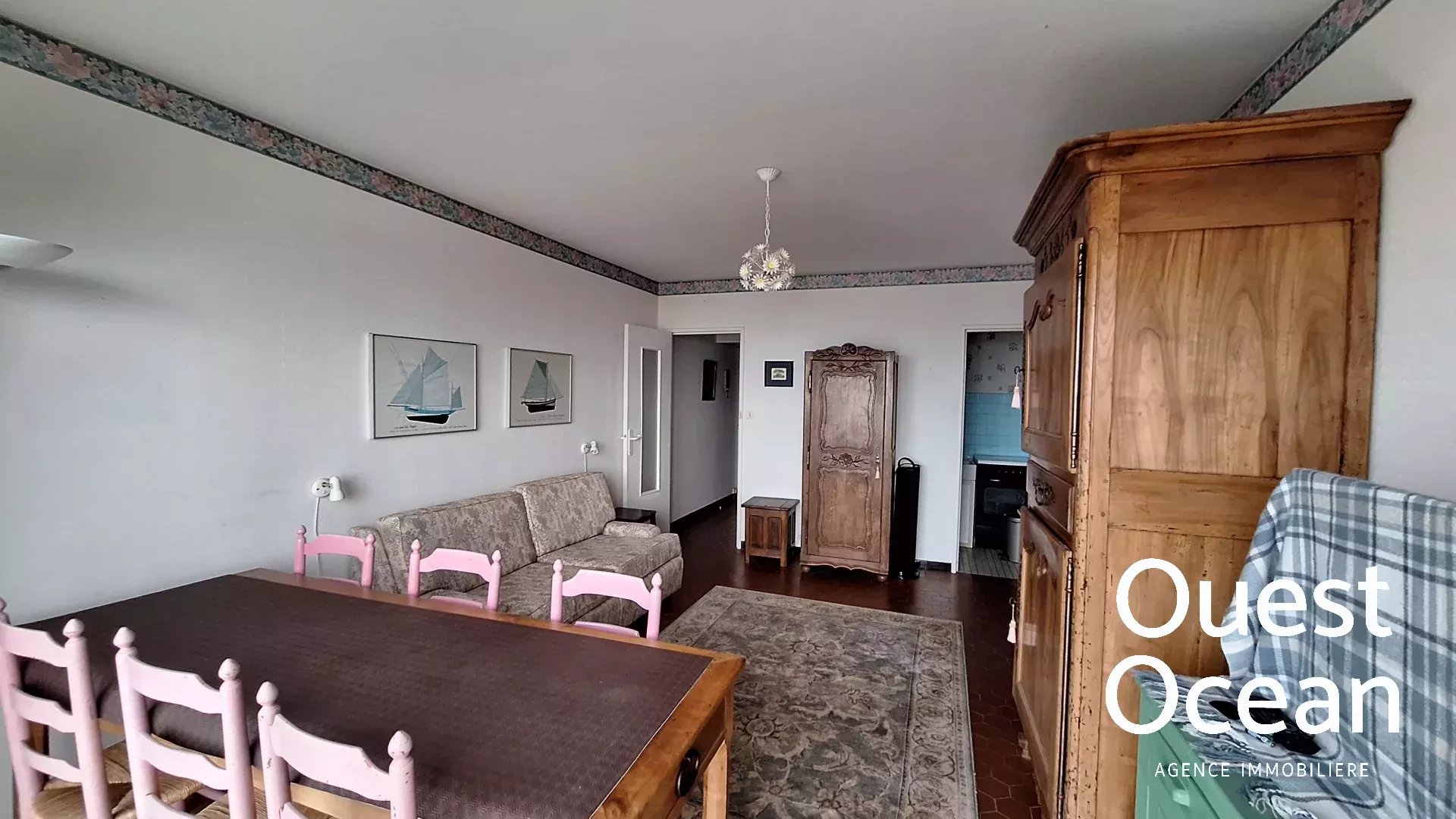 Votre agence Ouest Océan ,vous accueille téléphoniquement du lundi au vendredi ,de 8h30 à 18h.Nous vous proposons de visiter cet appartement situé dans une résidence sécurisée en face du port de JARD-SUR-MER, idéalement placé, il est composé, d'un dégagement avec placard, d'une pièce de vie avec kitchenette ET avec une vue incroyable sur l'océan, salle de douche avec WC. Une CAVE vient en complément du lot.Copropriété avec un Parc arboré,terrain de tennis, accès remblai directement. Pas de procédure en-cours.Copropriété gérée par notre service syndic.Possibilité d’acquérir un second appartement est de les réunir.