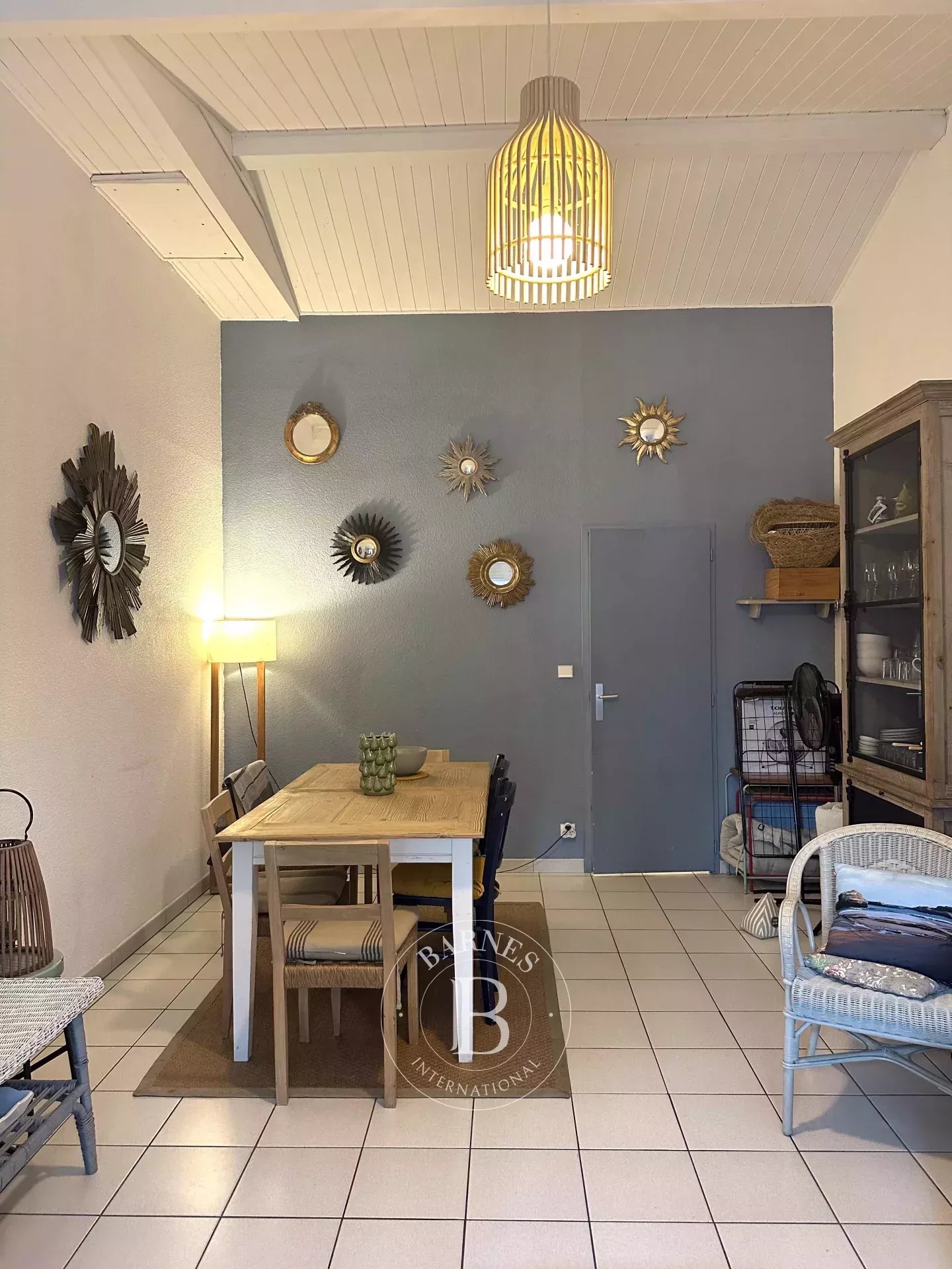 Dans une belle copropriété, proche de la plage, maison d'environ 58 m2 située dans le secteur des Brardes, composée d'une entrée, séjour, cuisine séparée, buanderie, deux chambres et une salle d'eau. Une cour d'accueil ainsi qu'une seconde cour côté séjour profitant d'un double accès. La maison dispose également d'une place de parking privée. La copropriété donne accès à une piscine, un court de tennis, local à vélo ainsi qu'un service de conciergerie à l'année.