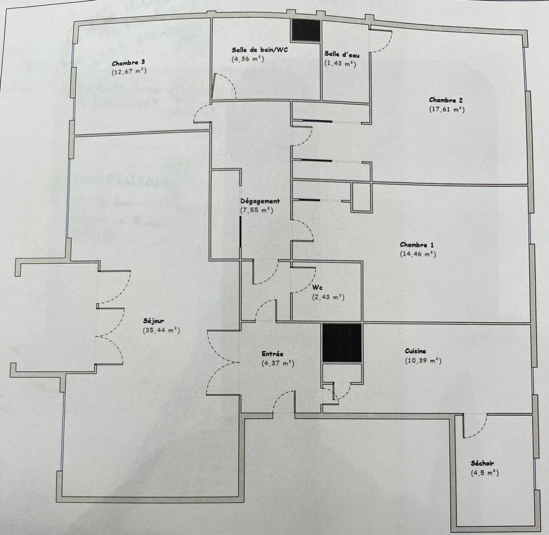 Il se compose d'une entrée, d'un vaste salon de plus de 35m² ouvrant sur le balcon, d'une cuisine dinatoire avec arrière cuisine équipée d'une fenêtre, d'une suite parentale avec salle d'eau, de 2 chambres de plus, d'une salle de bains avec toilettes et de toilettes séparées.