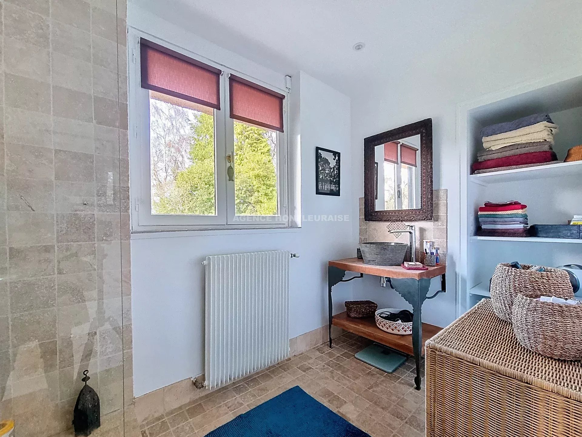 Maison très lumineuse exposée est-ouest, très bel environnement calme, beaux volumes, matériaux choisis, cheminée, parquet, poutres apparentes, bel escalier...