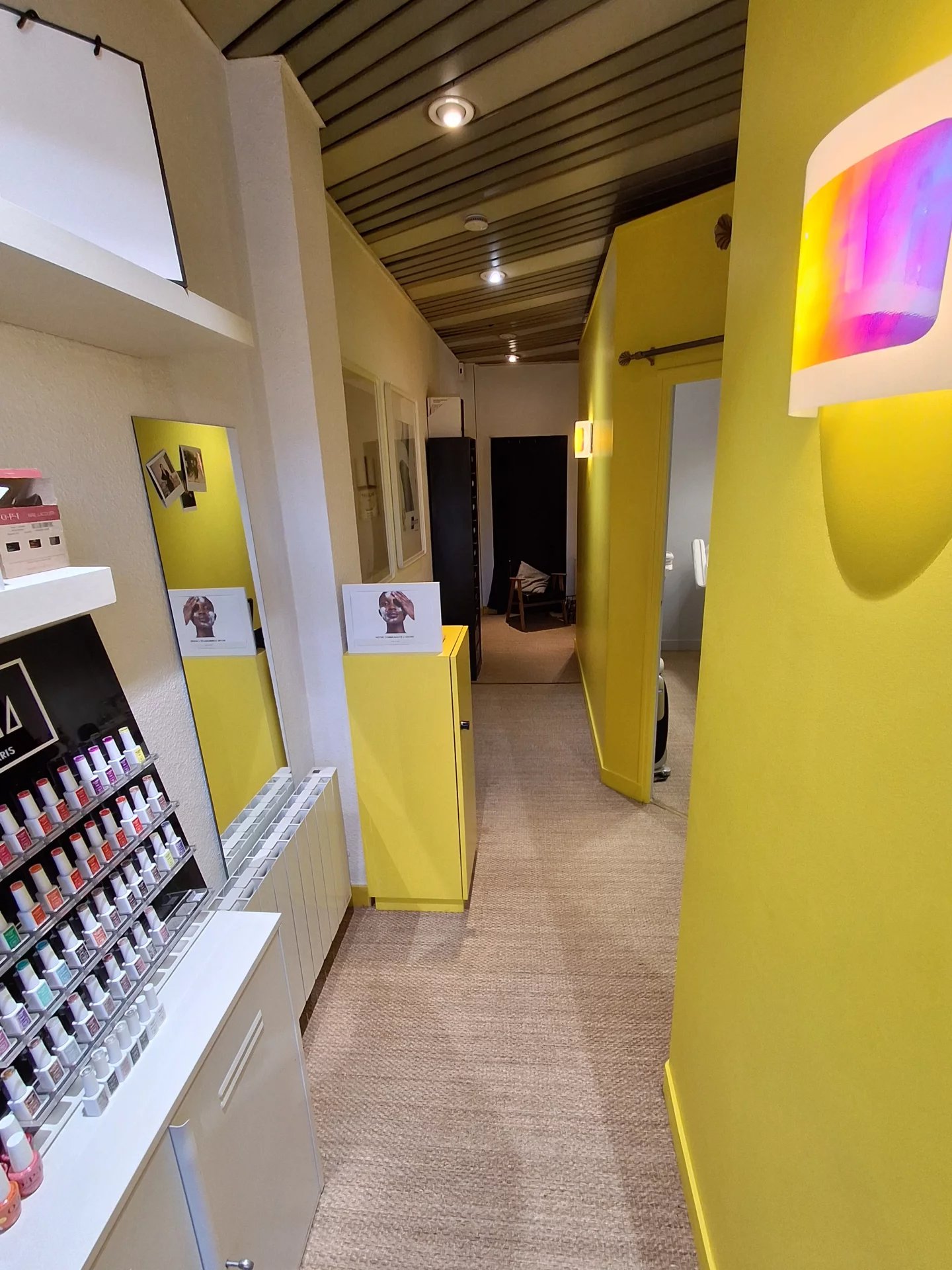 Locaux composés d’un accueil avec espace de vente, de 4 cabines, d’un pôle manucure, de réserves, ainsi que de 3 box de stockage.