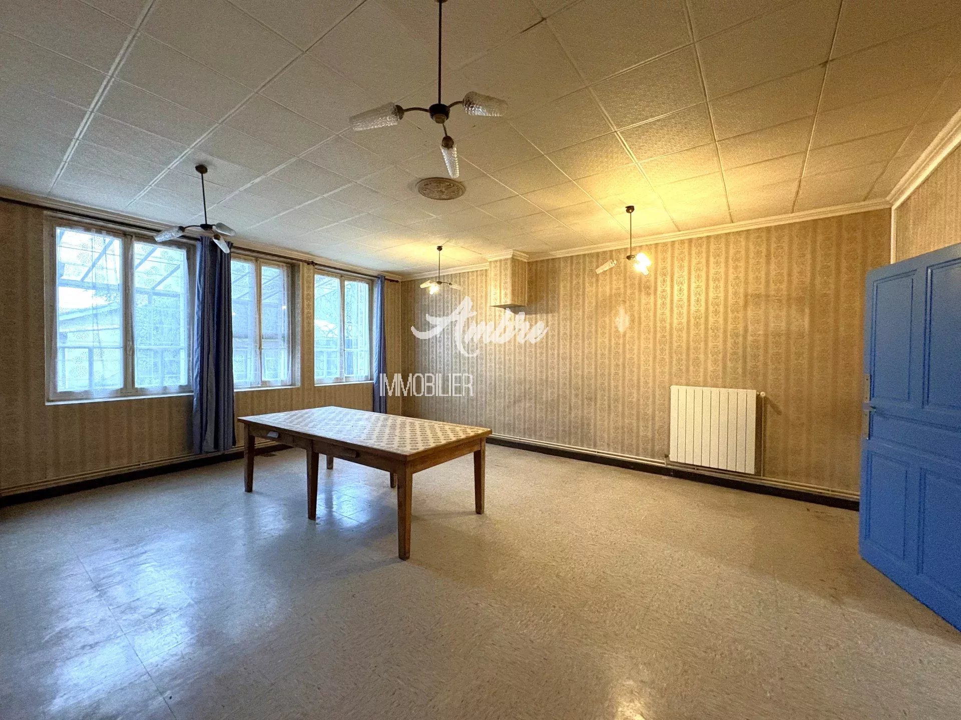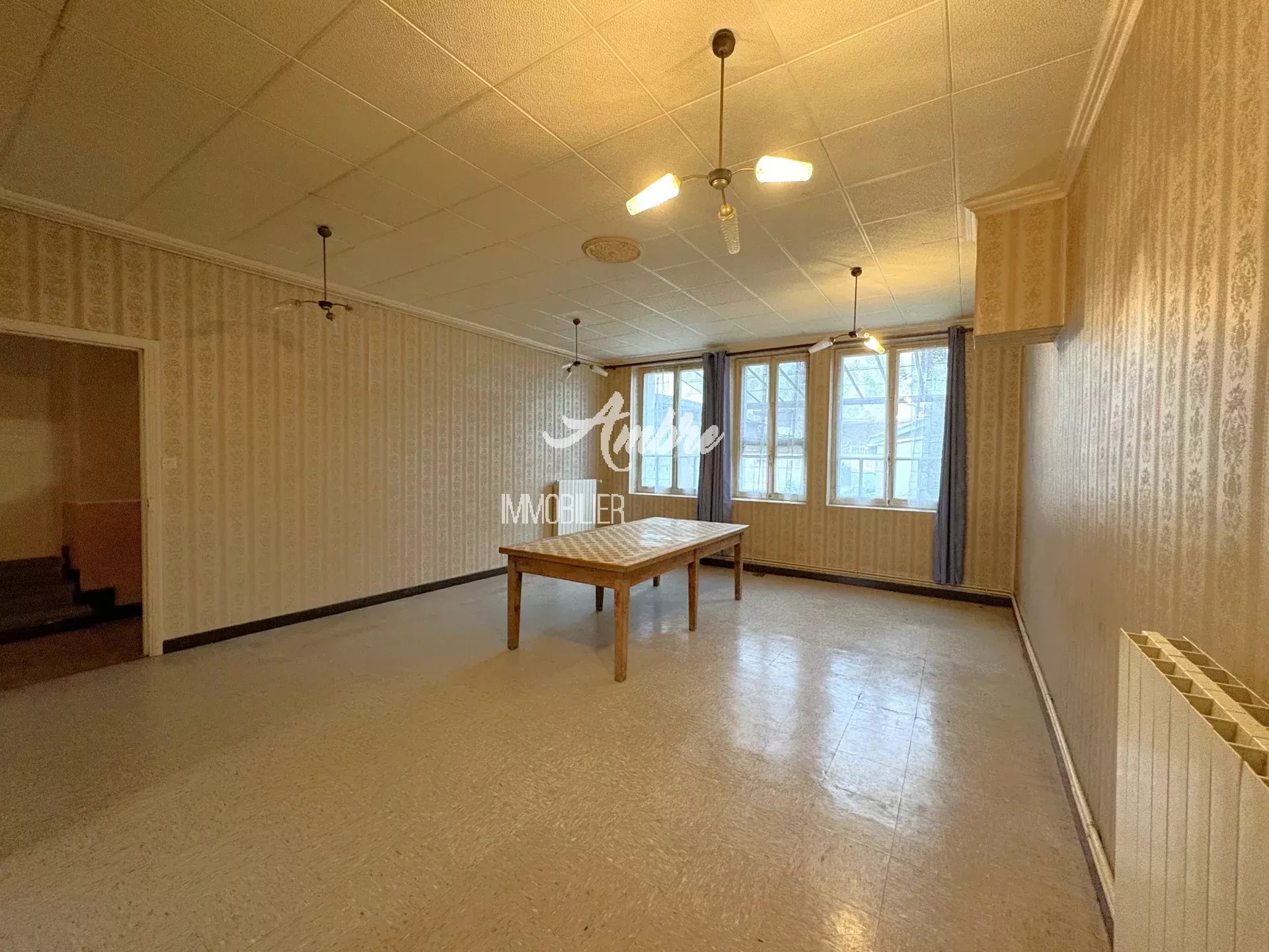 Idéalement située à deux pas du centre du village, maison de rue de 139 m², type 6, à rénover. Description : Au rez-de-chaussée : un hall d’entrée, un séjour, une cuisine, un dégagement, une salle d’eau, un WC indépendant et une cave. À l’étage : trois grandes chambres et un bureau avec accès aux combles aménageables d’environ 70 m². En plus : deux abris de jardin de 23 m² et 11 m², ainsi qu’une petite dépendance de 5 m². Chauffage central au gaz de ville. L’ensemble se situe sur une parcelle de 250 m², avec une partie de jardin exploitable d’environ 100 m². Maison alliant le charme de l'ancien et la proximité des commodités, à rénover selon vos envies et besoins. À découvrir !