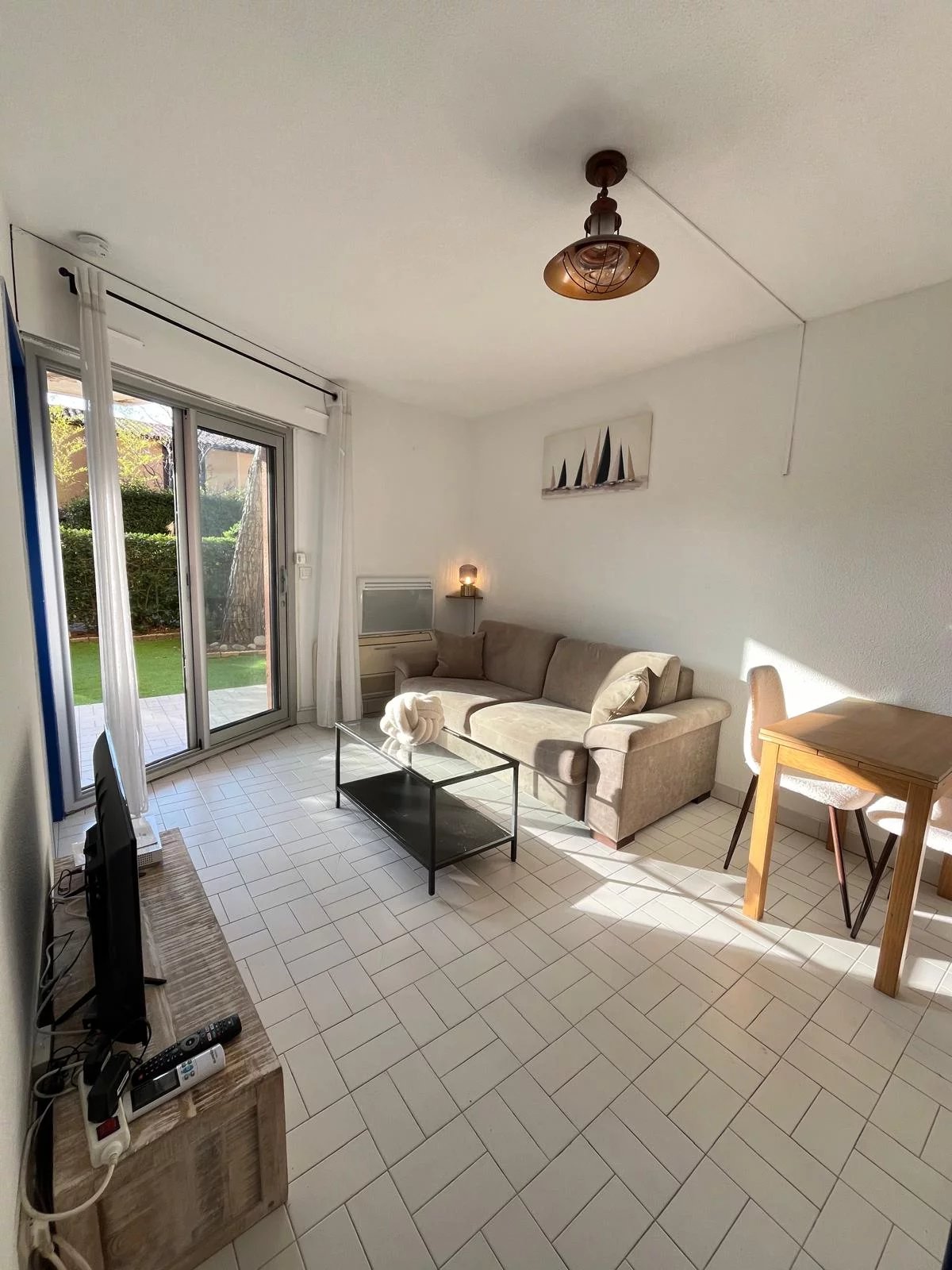 En Exclusivité ! Dans une résidence sécurisée à Boulouris proche de la Villa Mauresque, studio alcôve de 24m² avec sa terrasse/jardin de 35m² à 100m de la mer et de nombreuses plages. Calme, environnement verdoyant, idéal résidence secondaire ou locatif saisonnier. Le bien se compose de : - Entrée avec placards - Séjour avec cuisine équipée - Coin nuit - Salle de douche - WC indépendant Climatisation En annexe : une place de parking extérieur privée Pas de procédure en cours