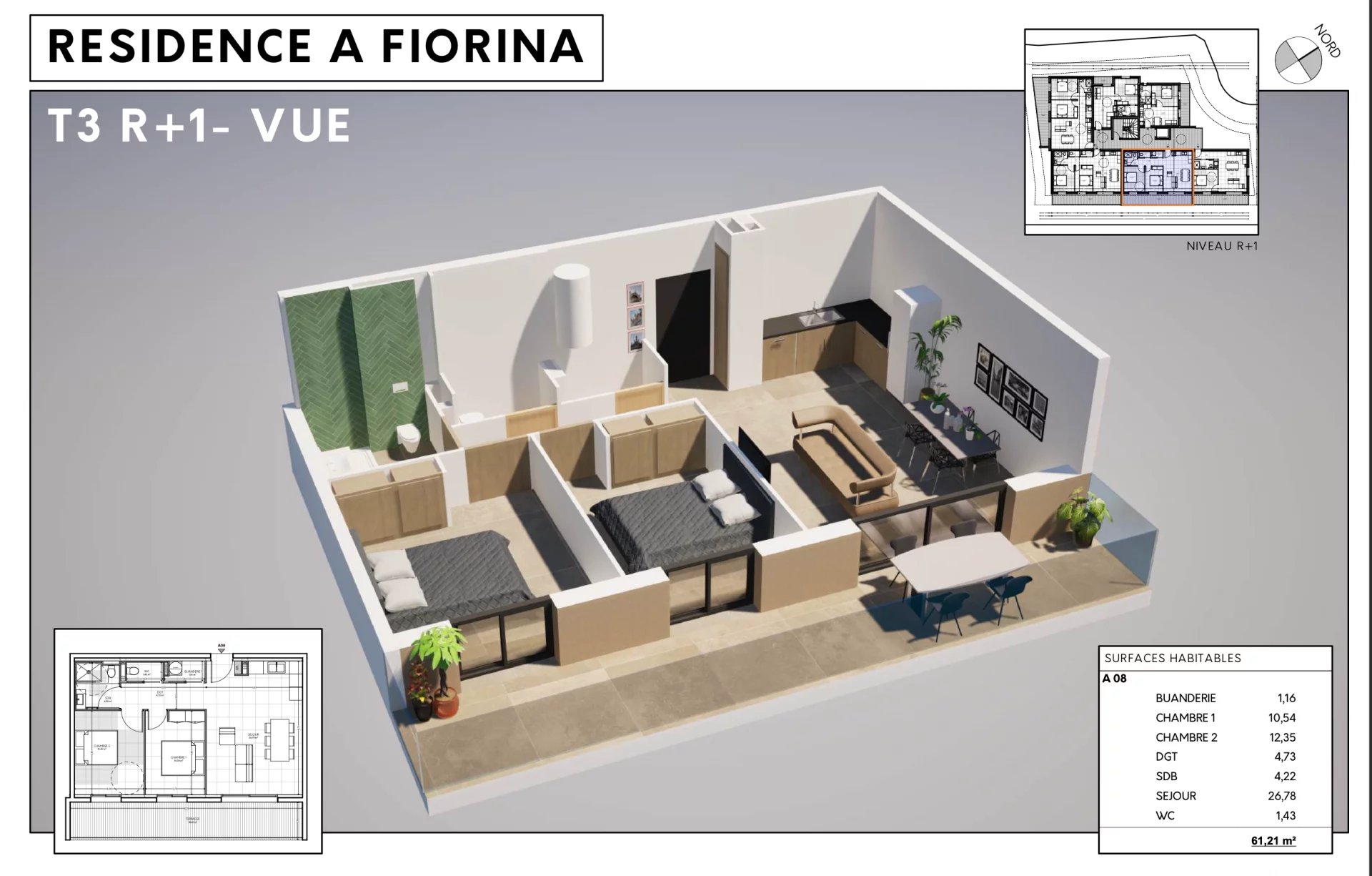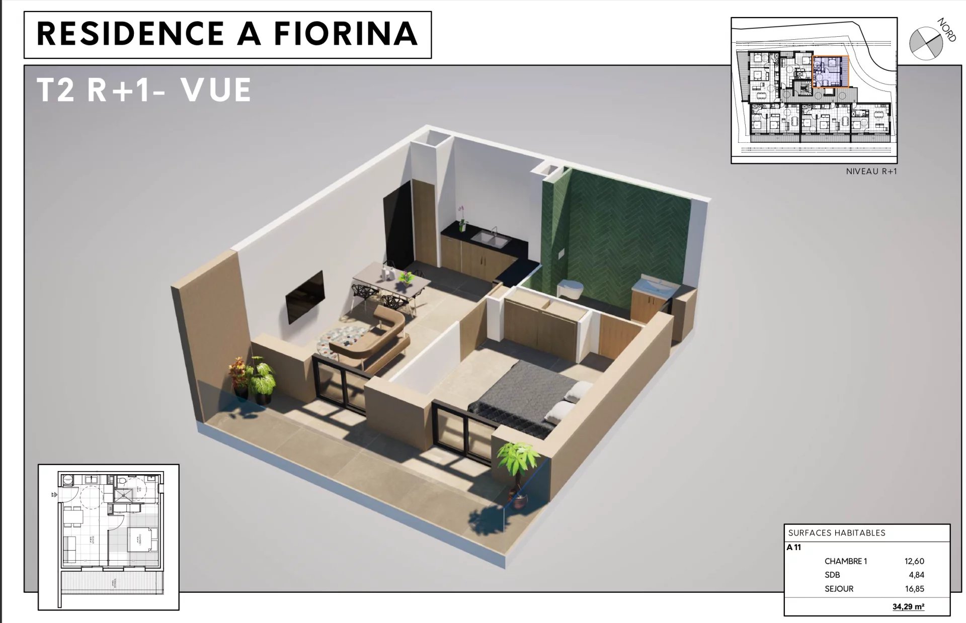 Pensée pour répondre aux attentes des acquéreurs exigeants, la résidence A Fiorina est idéale comme résidence principale, pied-à-terre proche d’Ajaccio, ou investissement locatif à forte rentabilité grâce au secteur dynamique de Baléone.