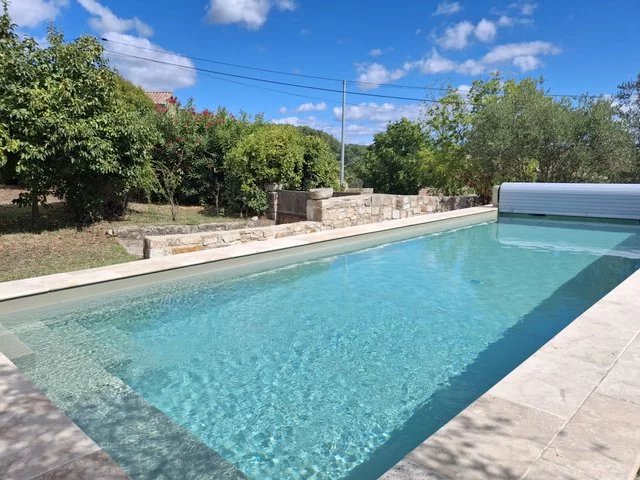 Mas a vendre Sud ARDECHE 07/ Au cœur d'un village tous commerces à 10 minutes des VANS, superbe bâtisse en pierre offrant un potentiel de 215m² habitable. Séjour, cuisine, joli salon, 4 chambres, 2 salle d'eau, terrasse avec vue dominante et plongeante sur les 880m² de terrain clos et arboré. Caves, pièces aménageables en logement indépendant. Piscine au sel 10 X 3.5, garage, forage, tout à l'égout, très belles prestations. REF/2425.